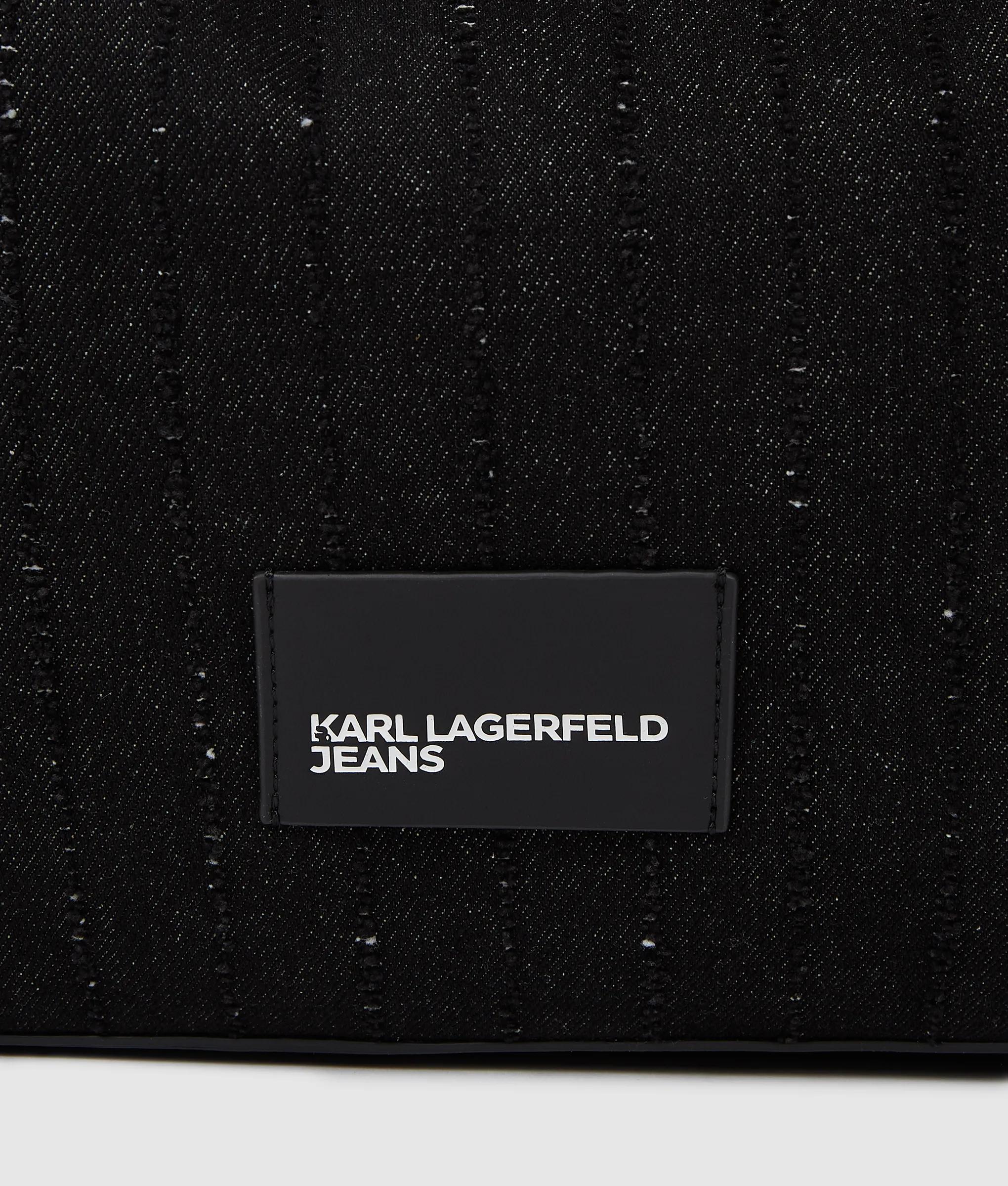 The architectural silhouette of this trapeze shopper contrasts with the worn-in finish of its pinstripe denim construstion, creating a duality of raw rebellion and refined casual accessorizing.