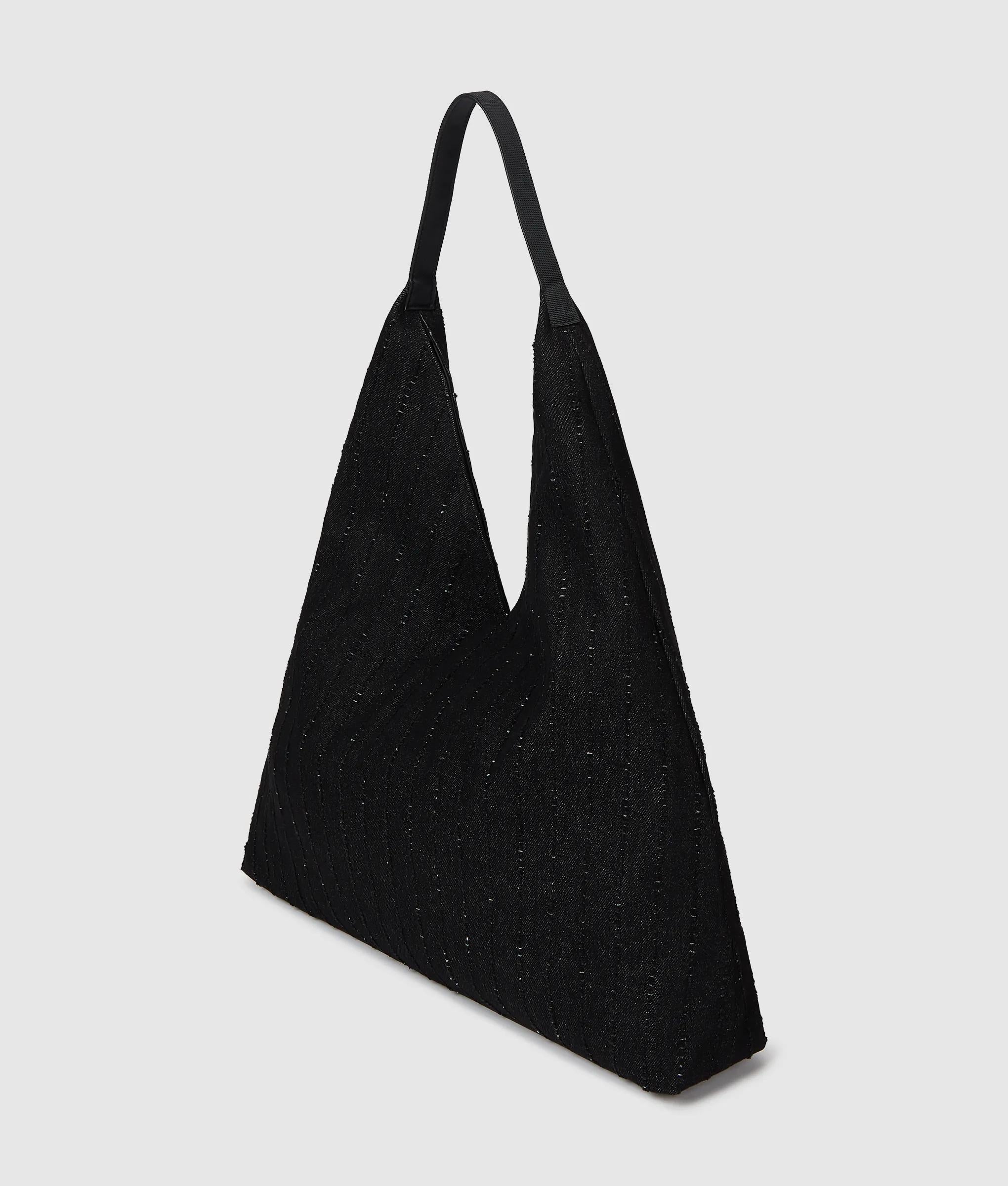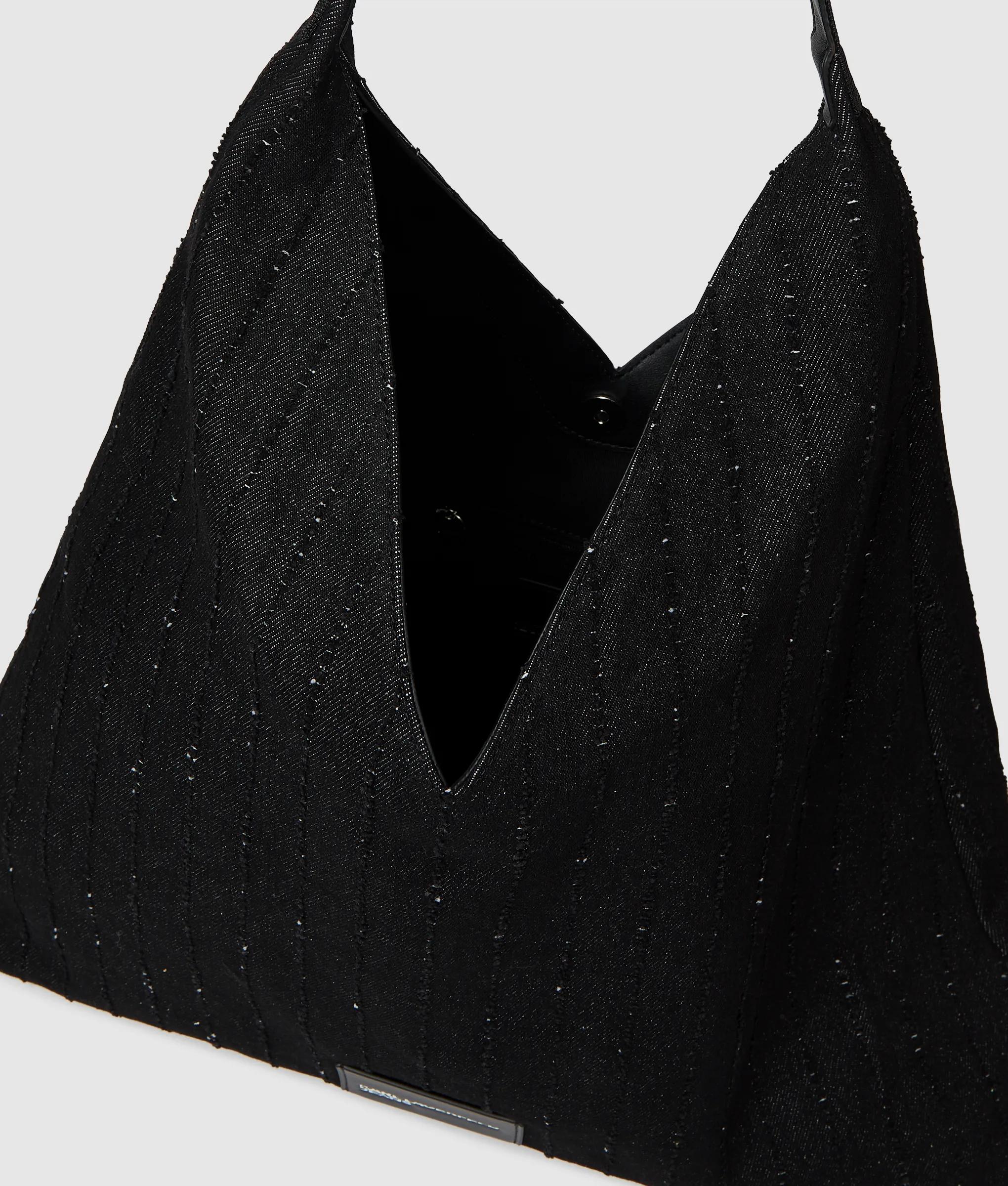 Pinstripe denim trapeze shopper