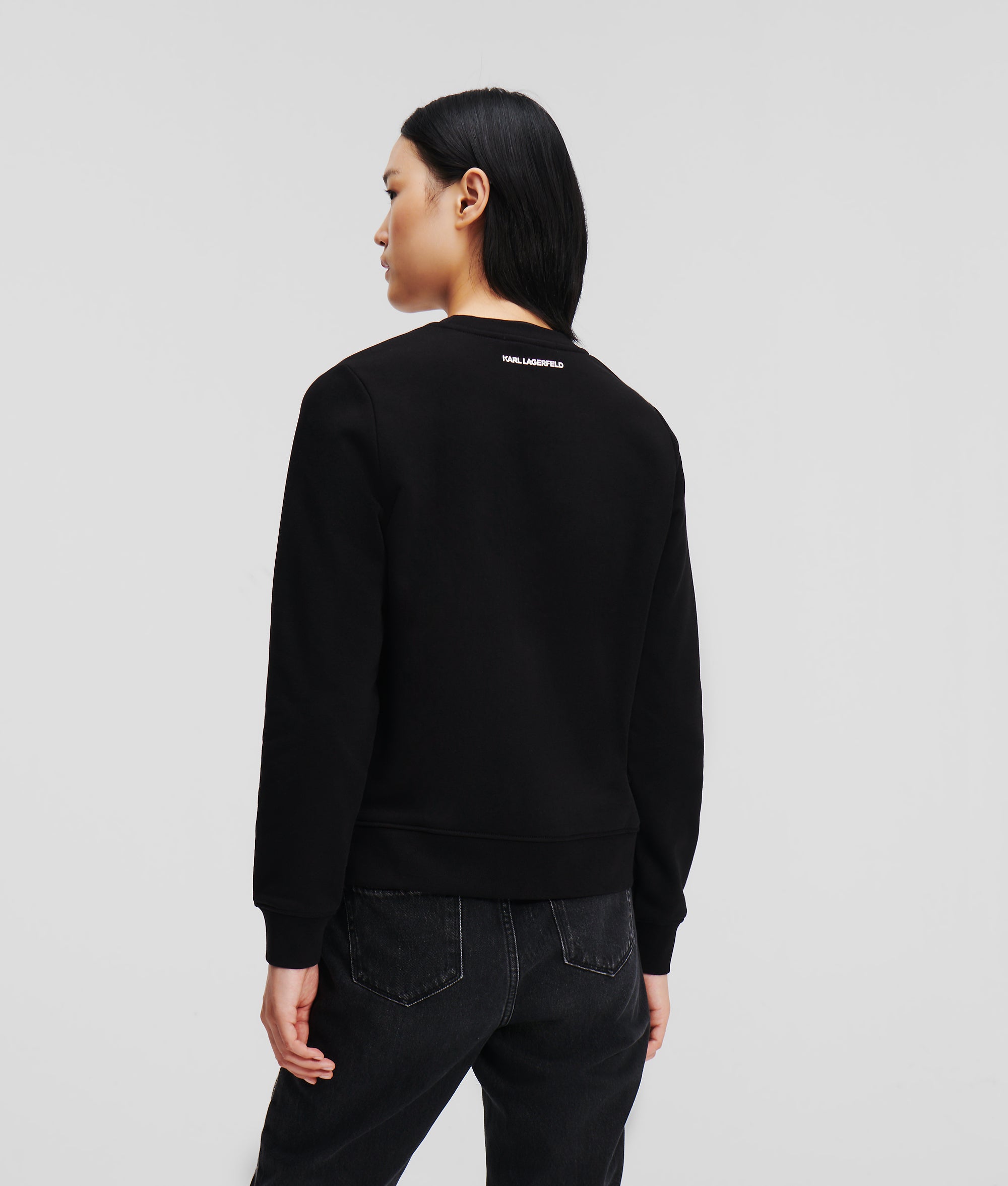 IKON Karl, dressed in a metallic monogram-embellished suit, adorns the front of this sweatshirt. The casual classic offers a playful addition to your off-duty wardrobe.