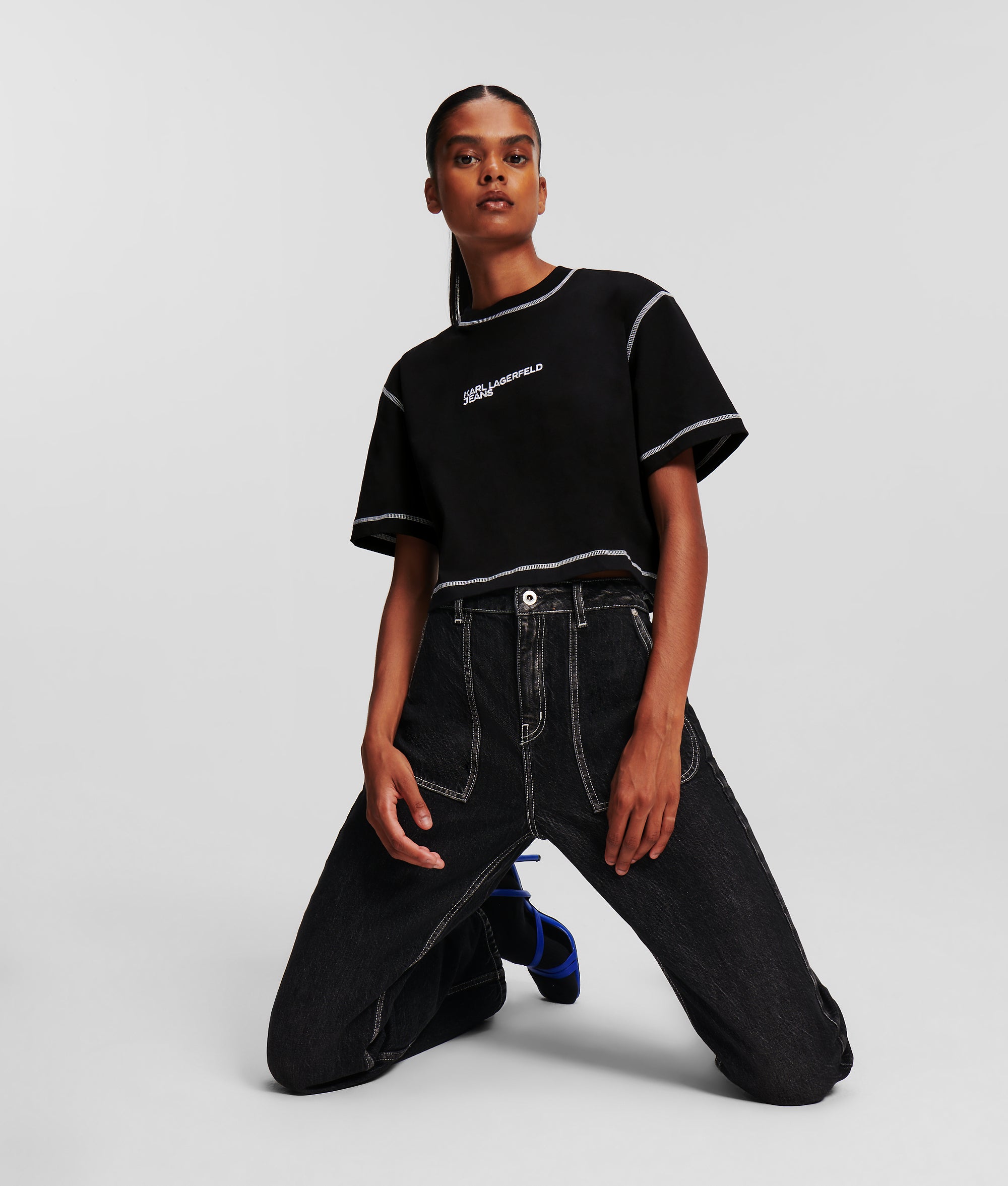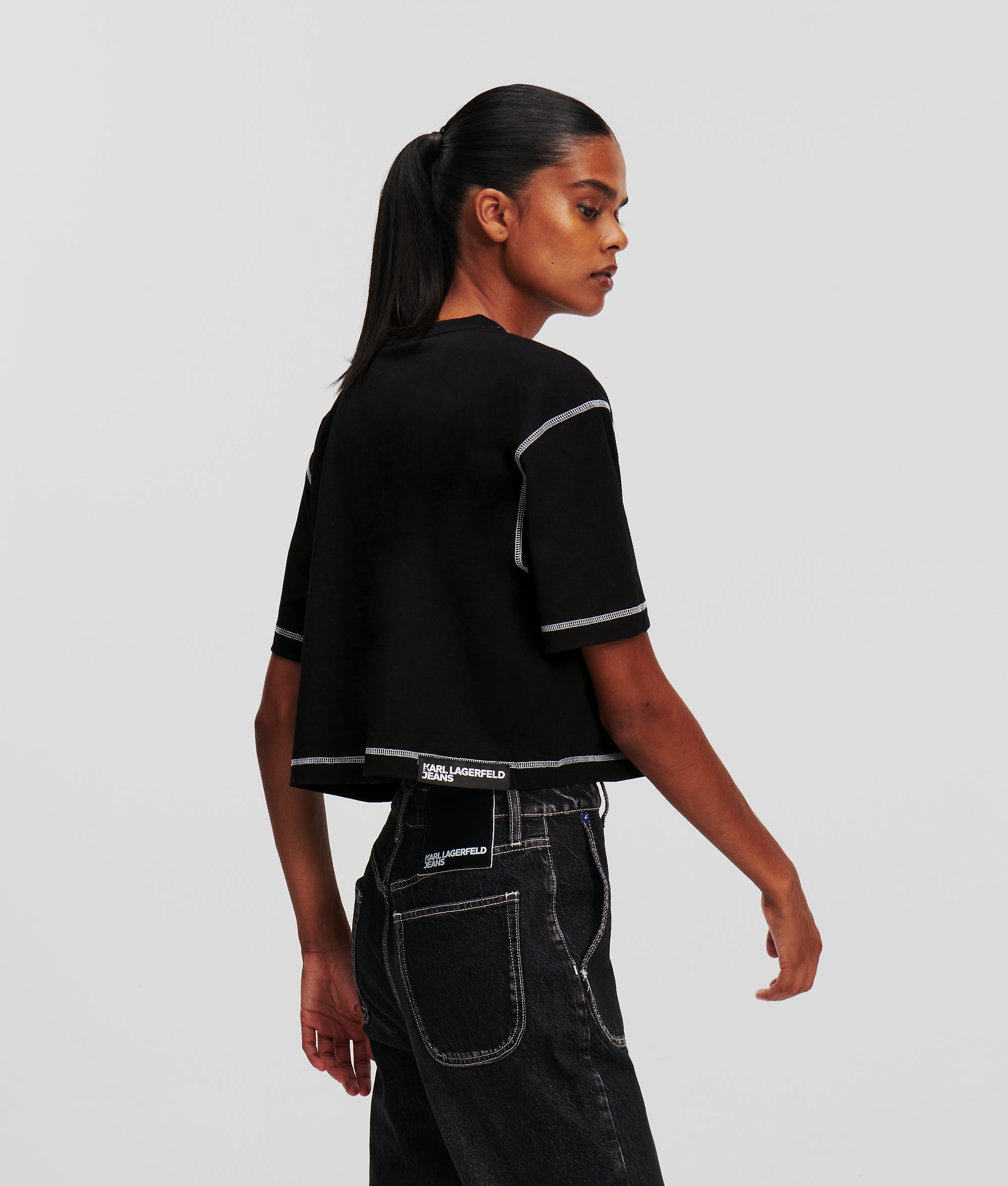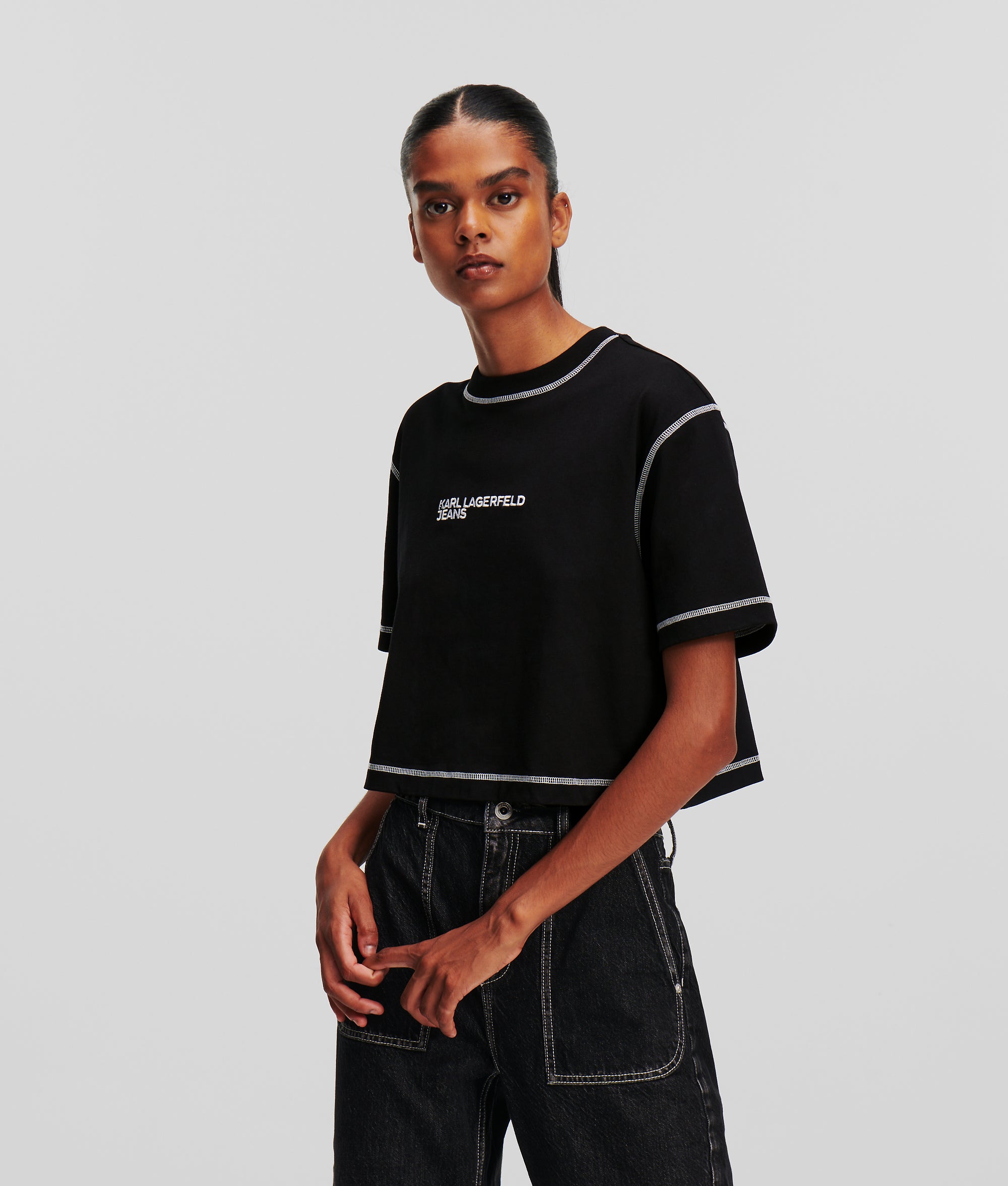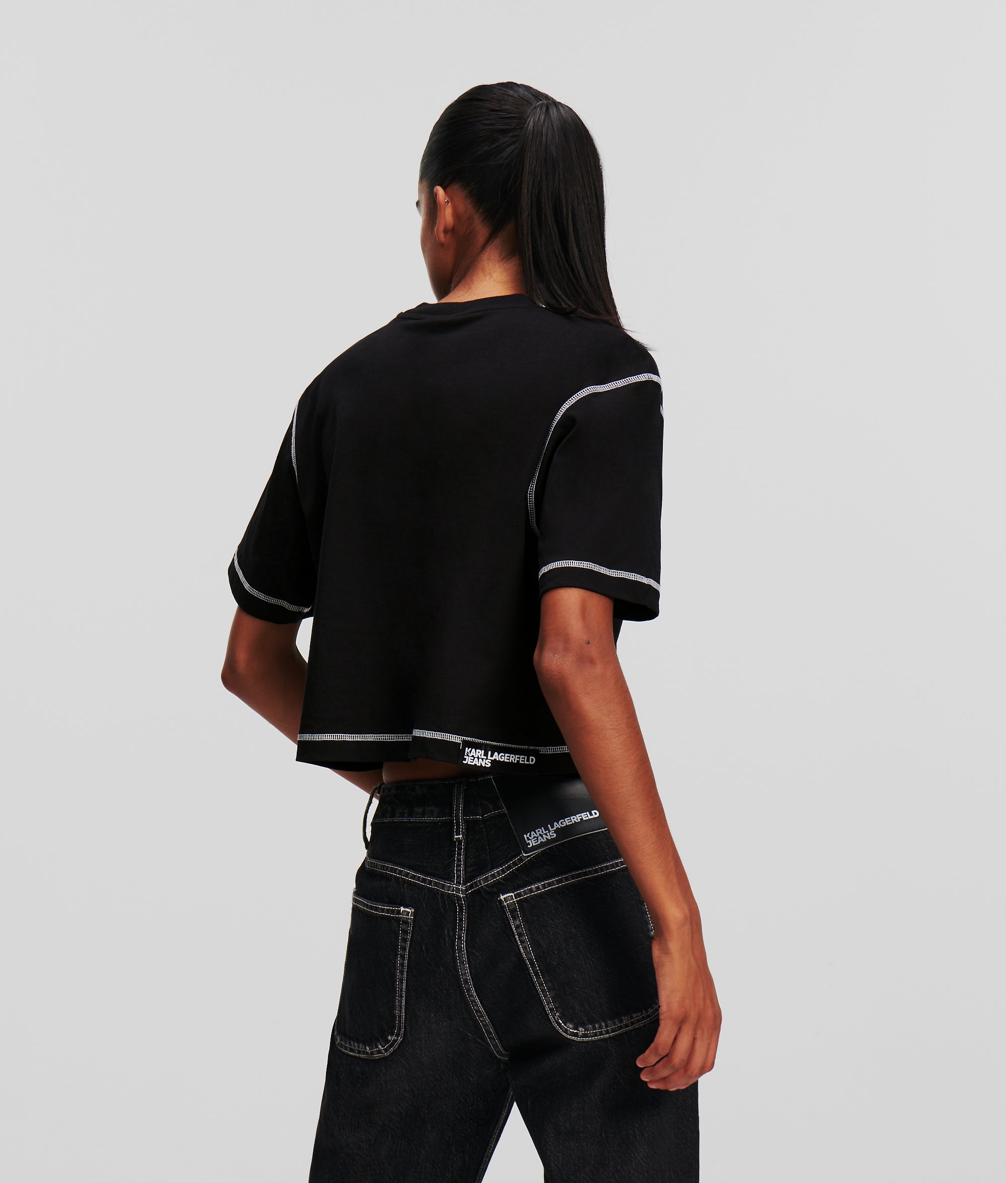 Hit refresh on your off-duty wardrobe with this essential crew-neck T-shirt, featuring a cropped length, contrast stitching and the iconic KARL LAGERFELD JEANS logo.