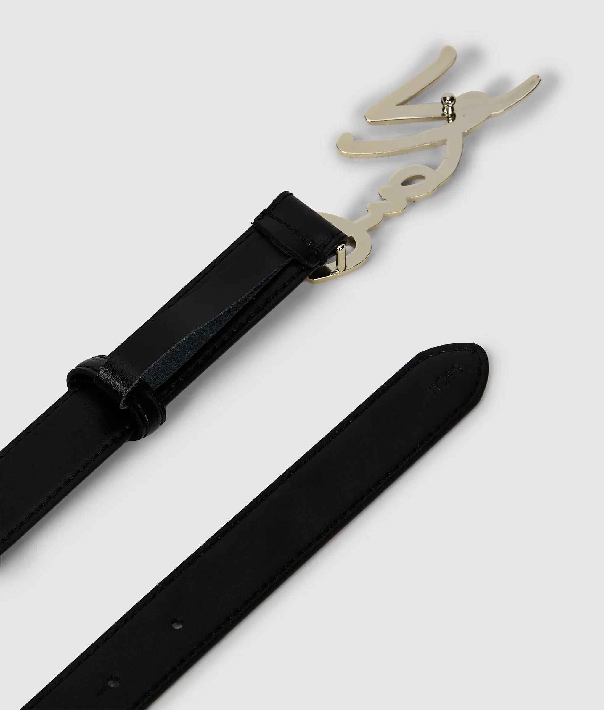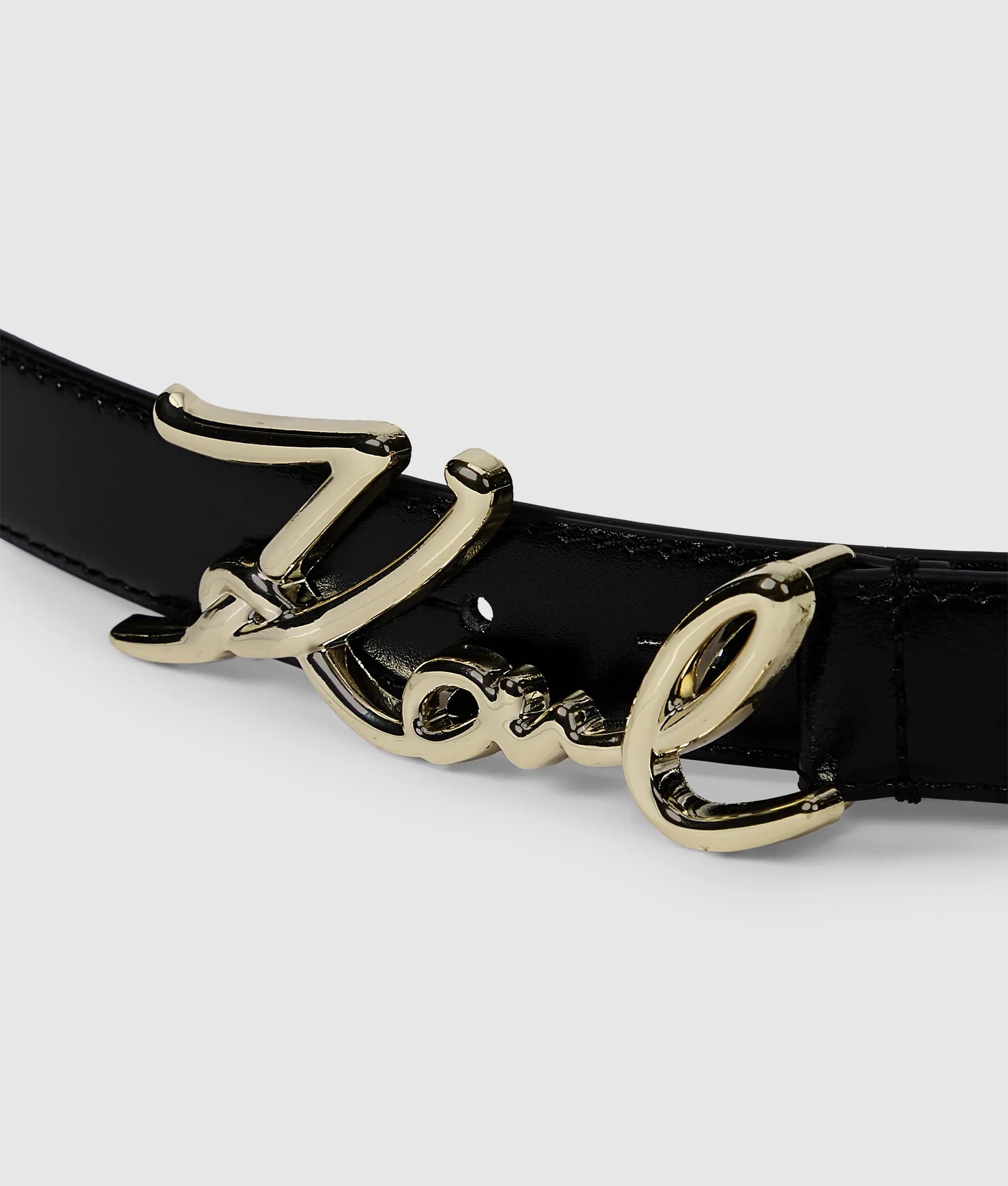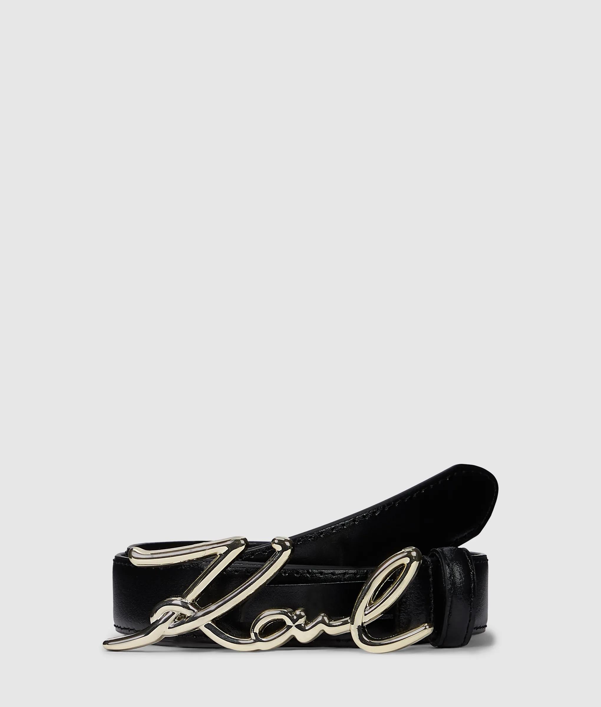Complete the look with this luxury, smooth leather belt featuring a polished KARL Signature logo buckle. The K/Signature collection sees accessories adorned with iconic hardware inspired by the visionary designer’s handwritten signature.