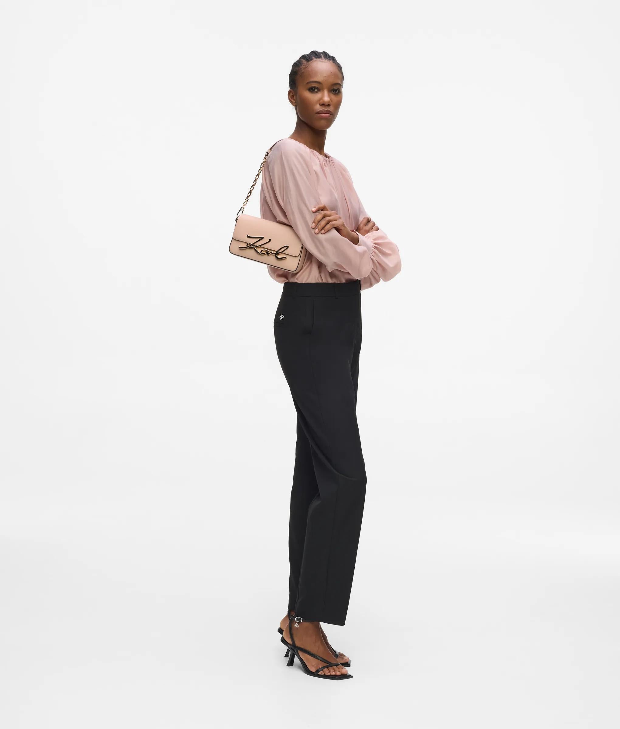 A detachable strap transforms this elegant shoulder bag into an evening-ready clutch. Crafted from smooth leather, a sleek flap secures your essentials, while chain detailing adds a rock-chic feel.
