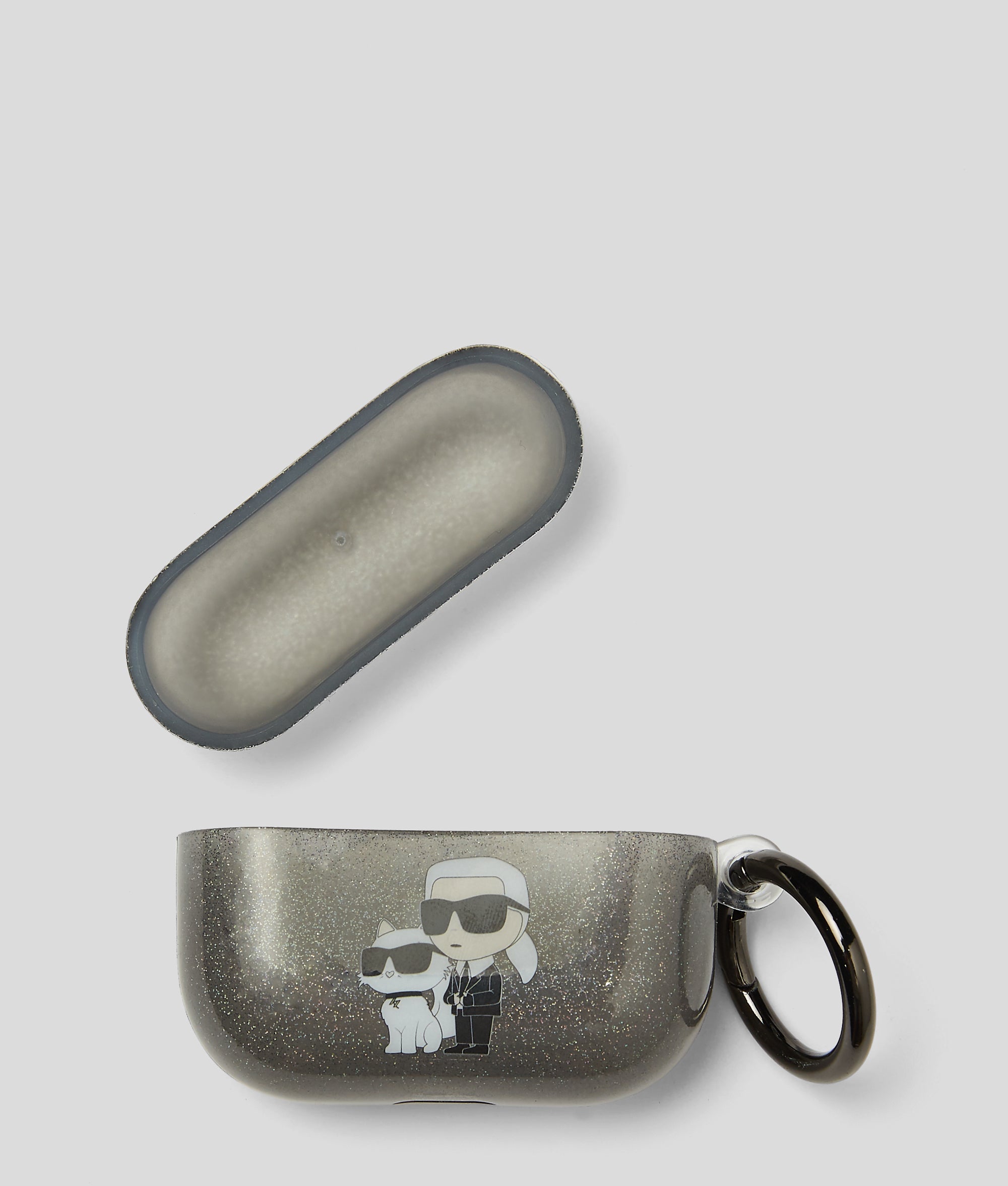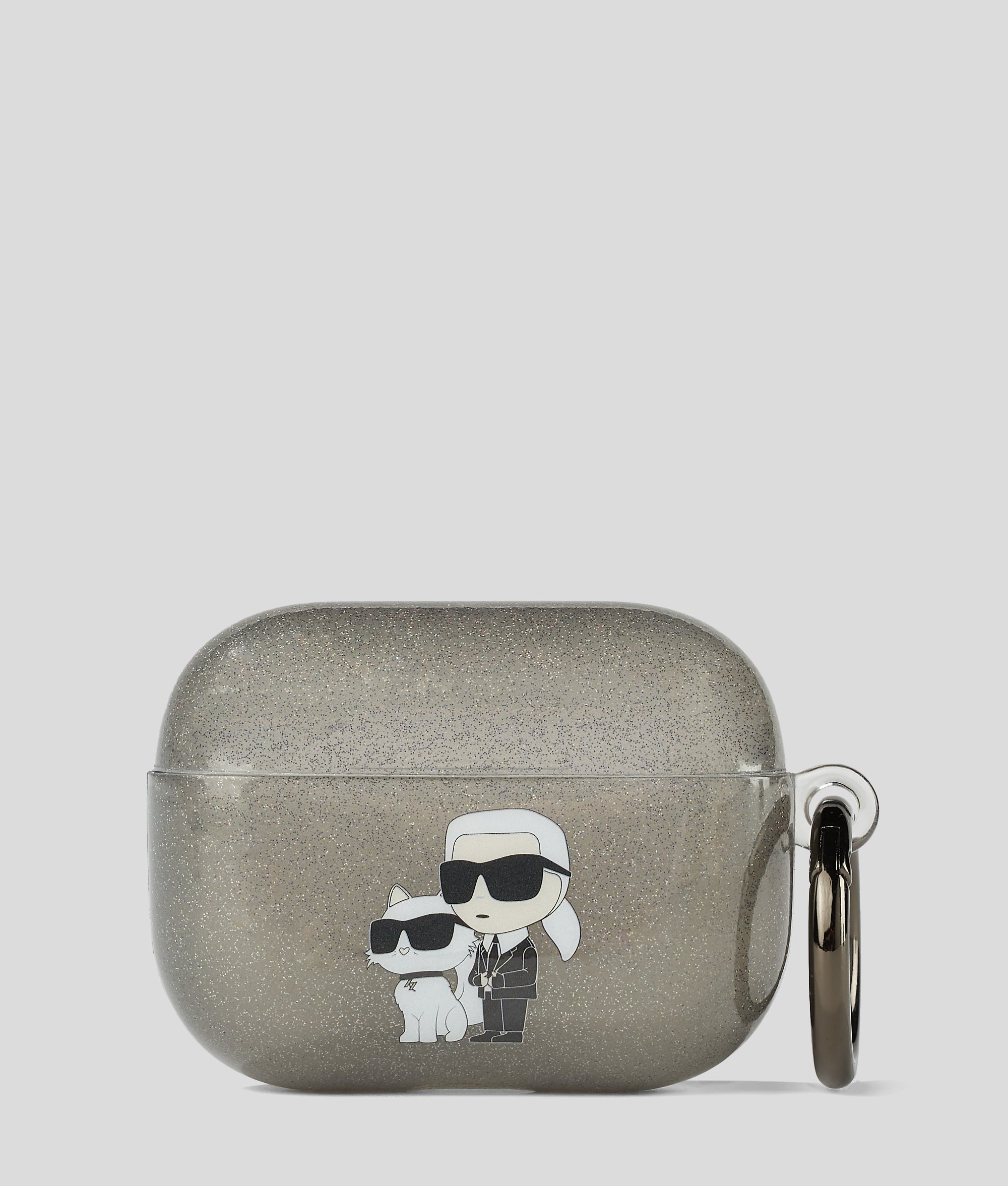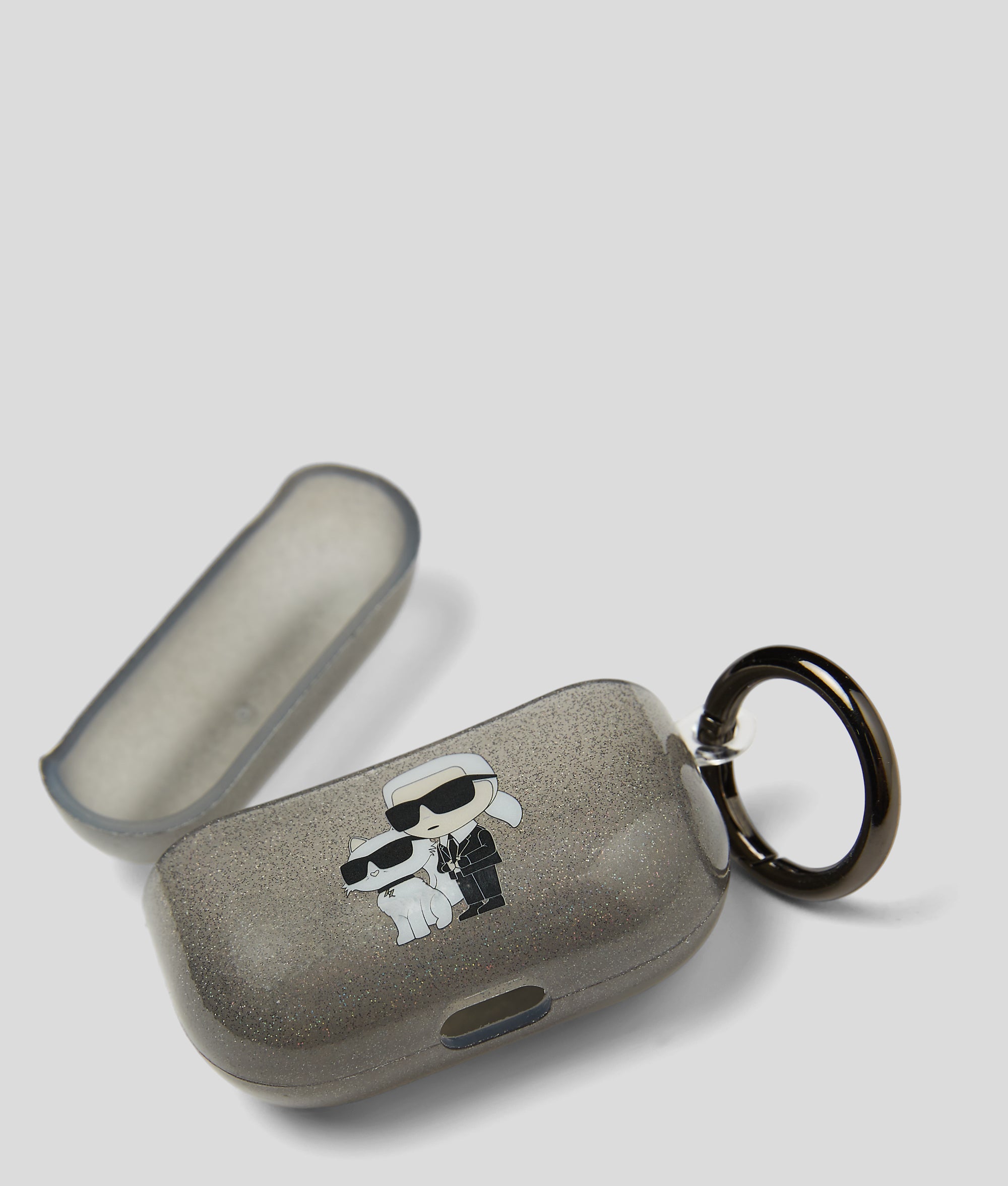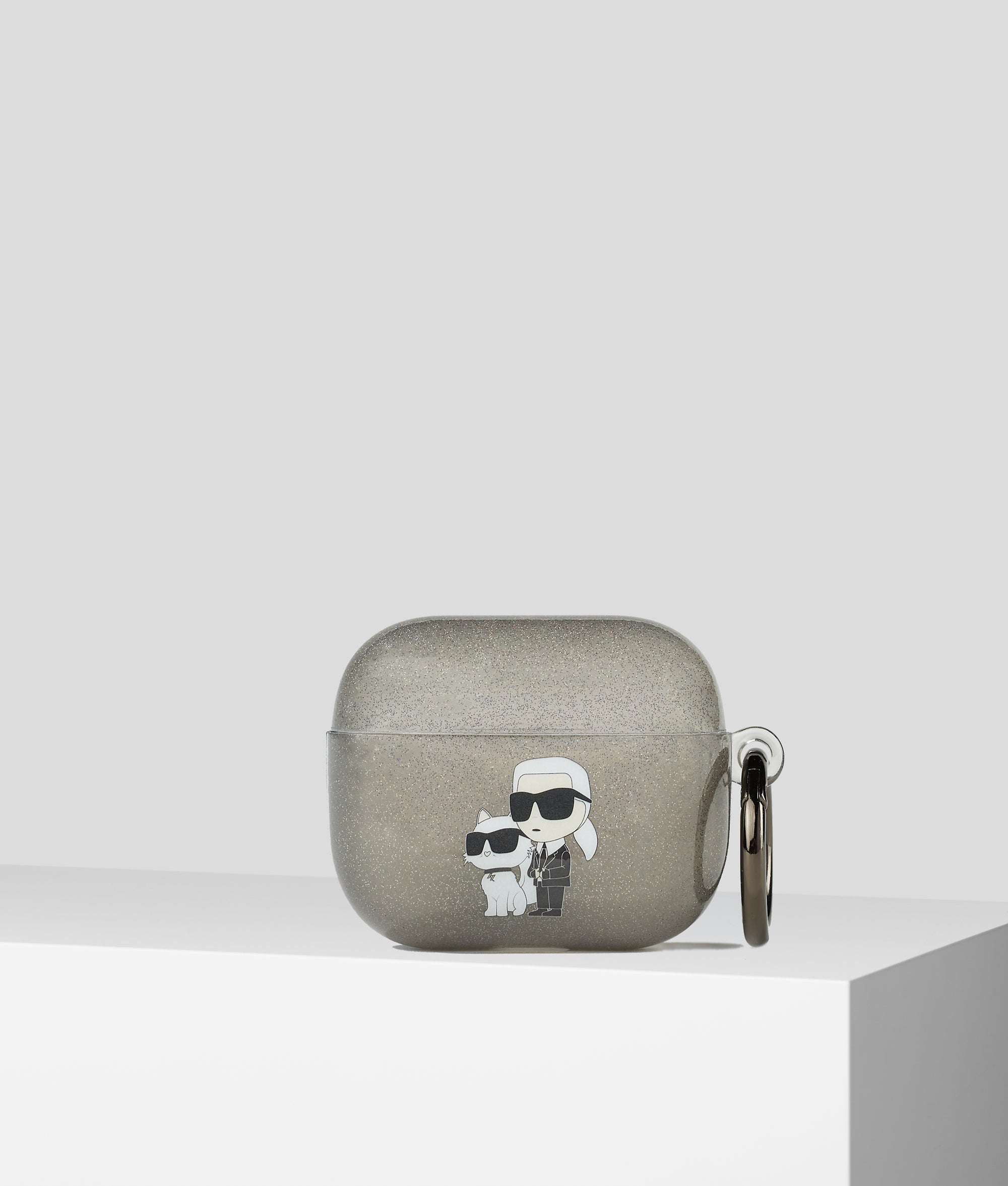 A glossy finish on a glitter case brings high-shine style to reliable protection. Karl and Choupette are featured at a new angle on the front of the case.