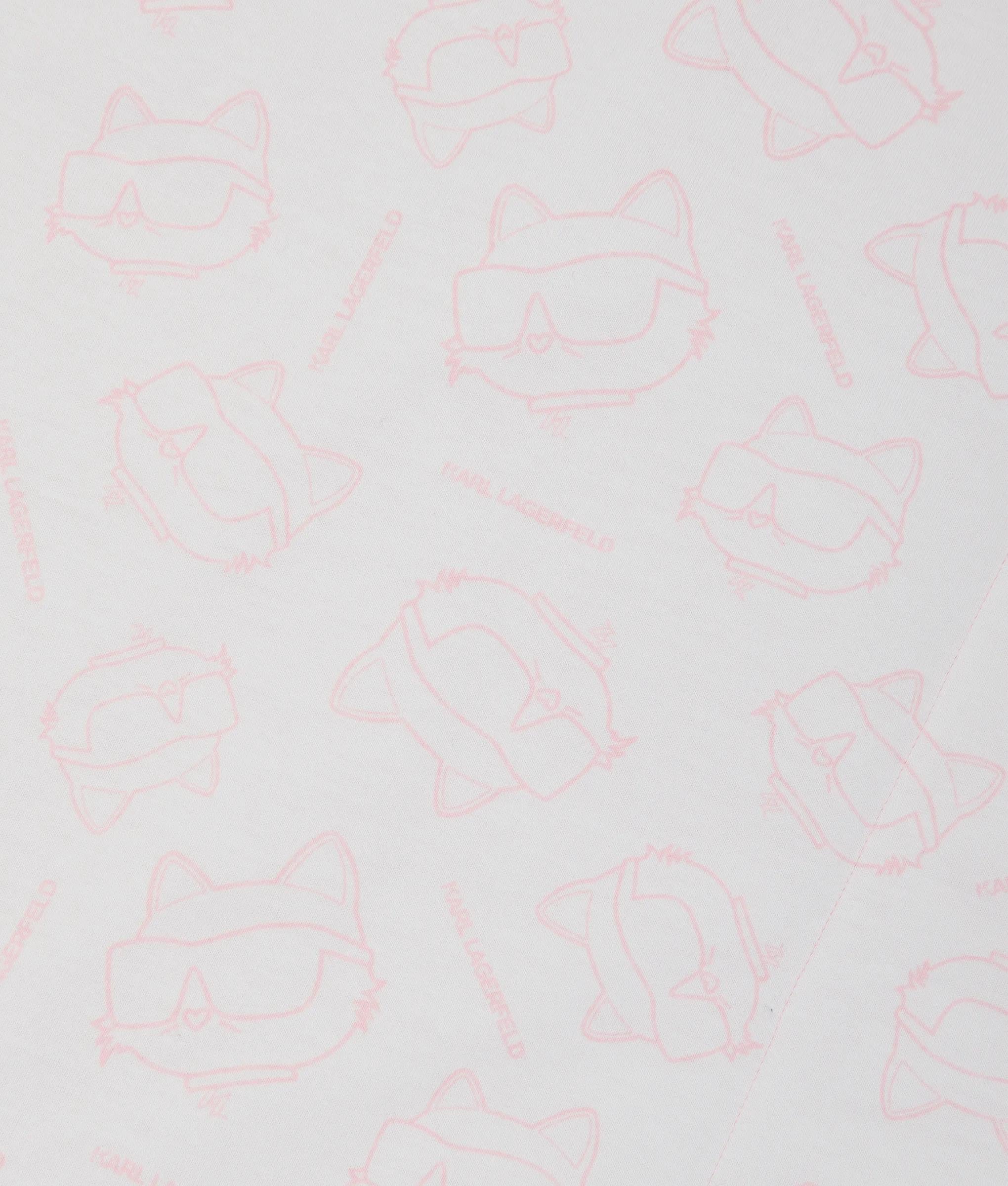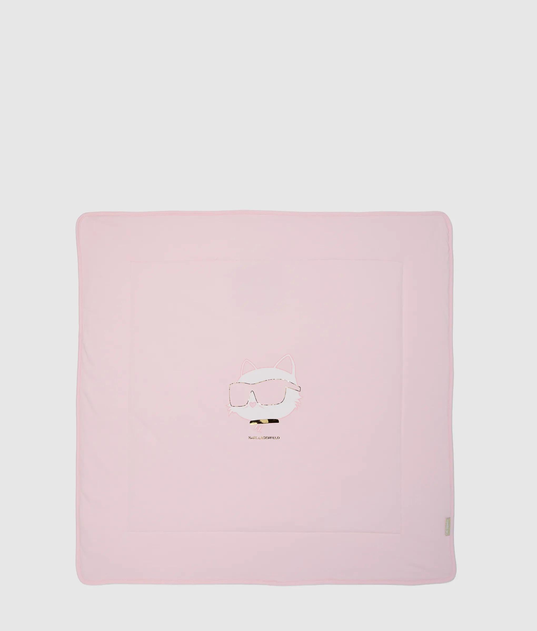 Reversible baby blanket with plush padding and playful Ikon Choupette prints on both sides. Soft cotton layers offer cozy comfort wrapped in KARL LAGERFELD charm.