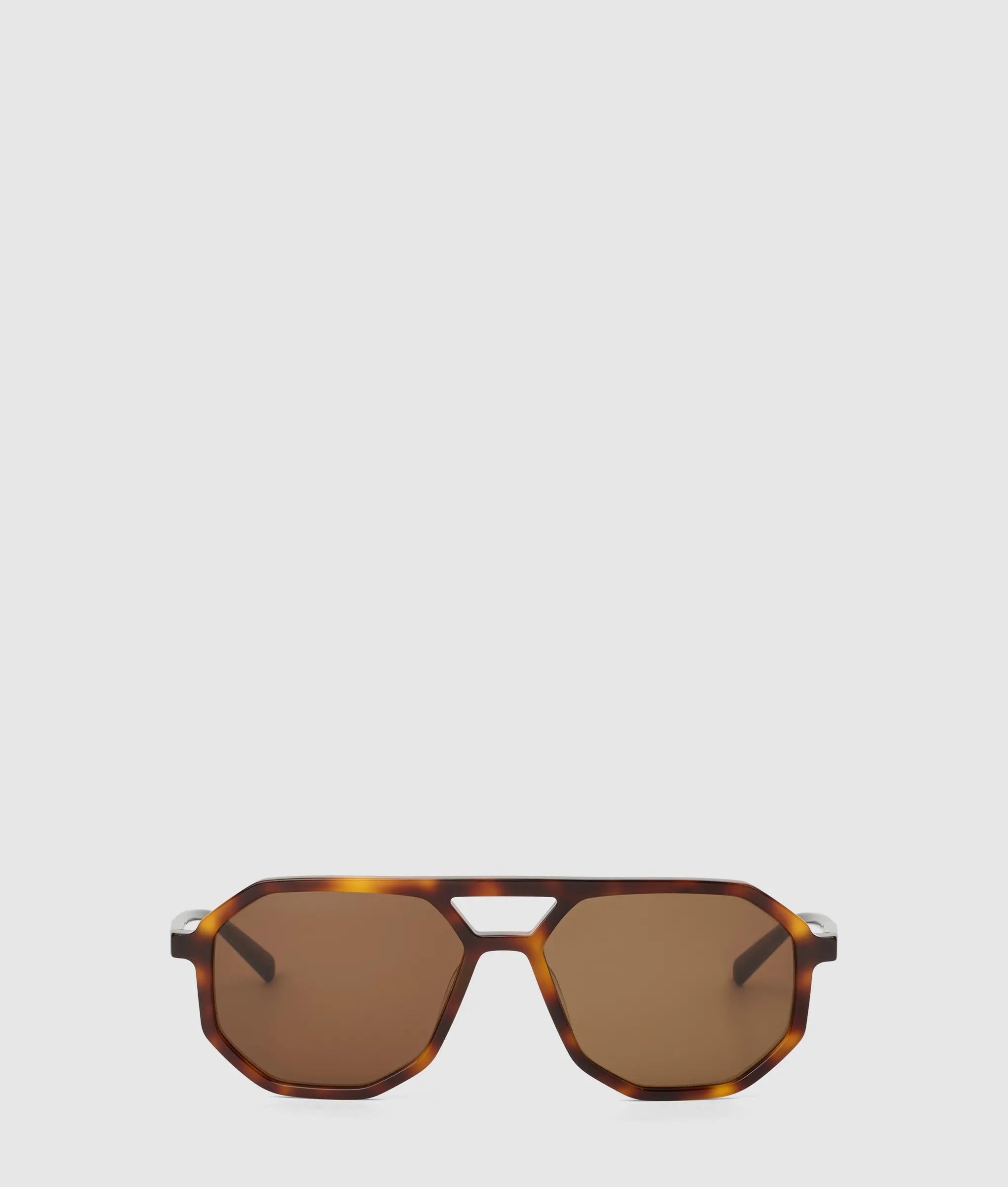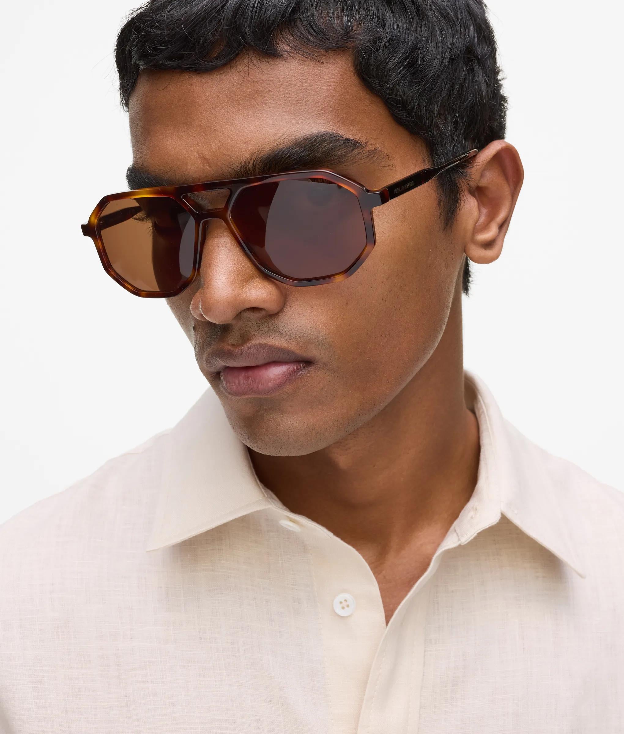 Angular elegance defines these slim navigator sunglasses. Octagonal frames meet dark lenses for a striking profile, while a molded nose bridge ensures all-day comfort.