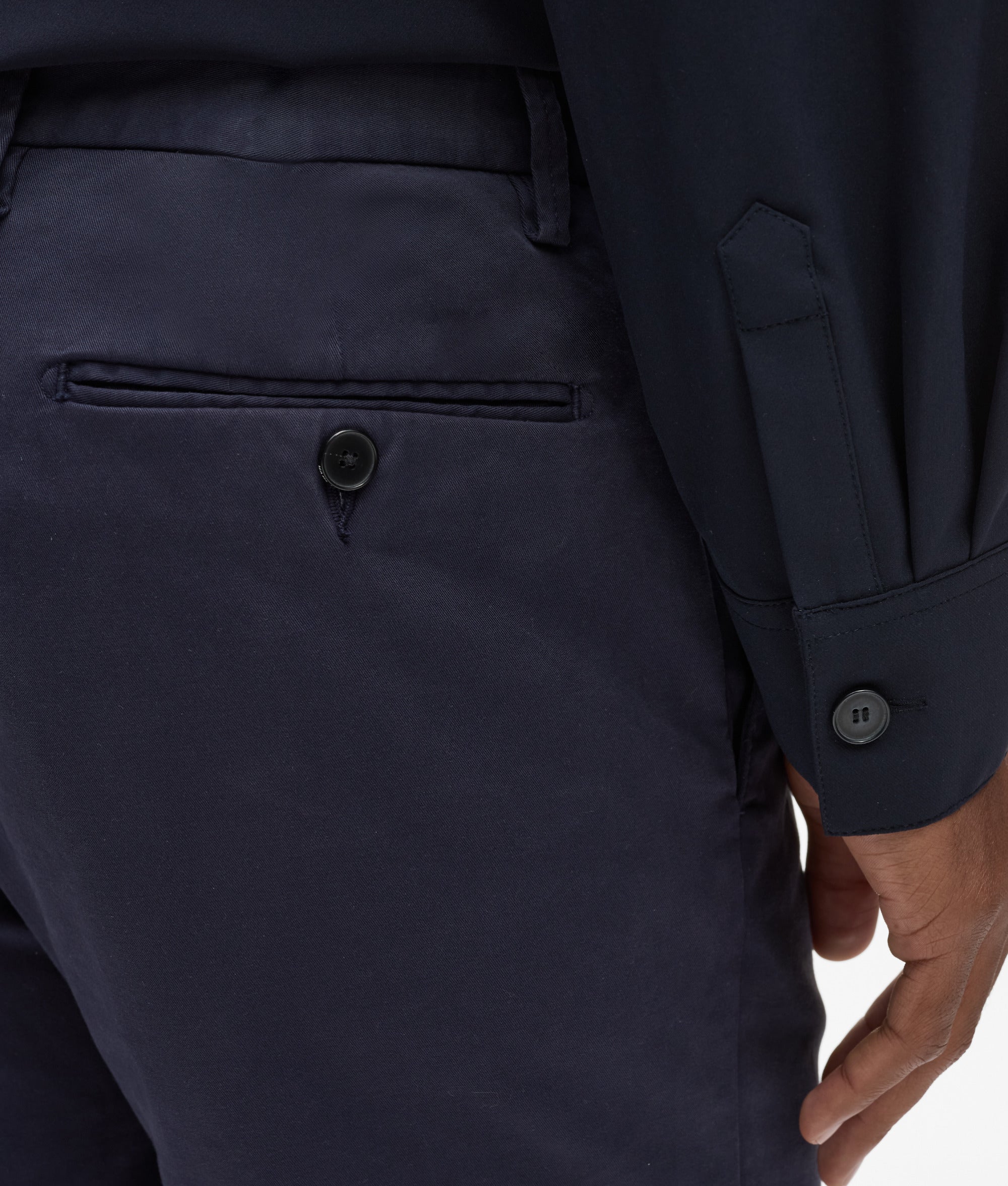 A confident silhouette with subtle stretch for ease, these tailored chinos balance structure and comfort. Clean lines and discreet details shape a refined everyday essential.