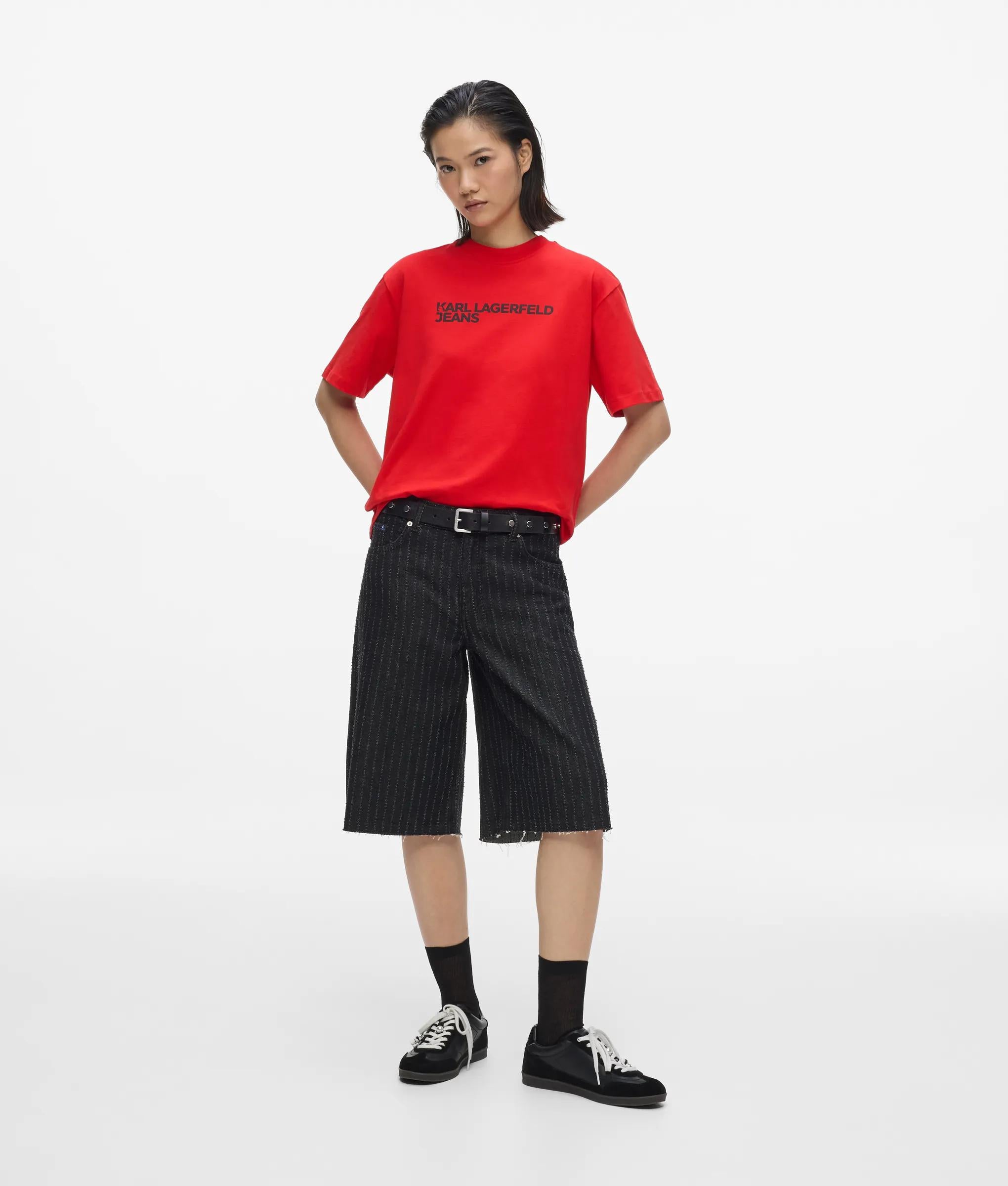 Upgrade your casual wardrobe with this T-shirt topped with the iconic KARL LAGERFELD JEANS logo. The everyday highlight is made from breathable organic cotton, offering both style and comfort.