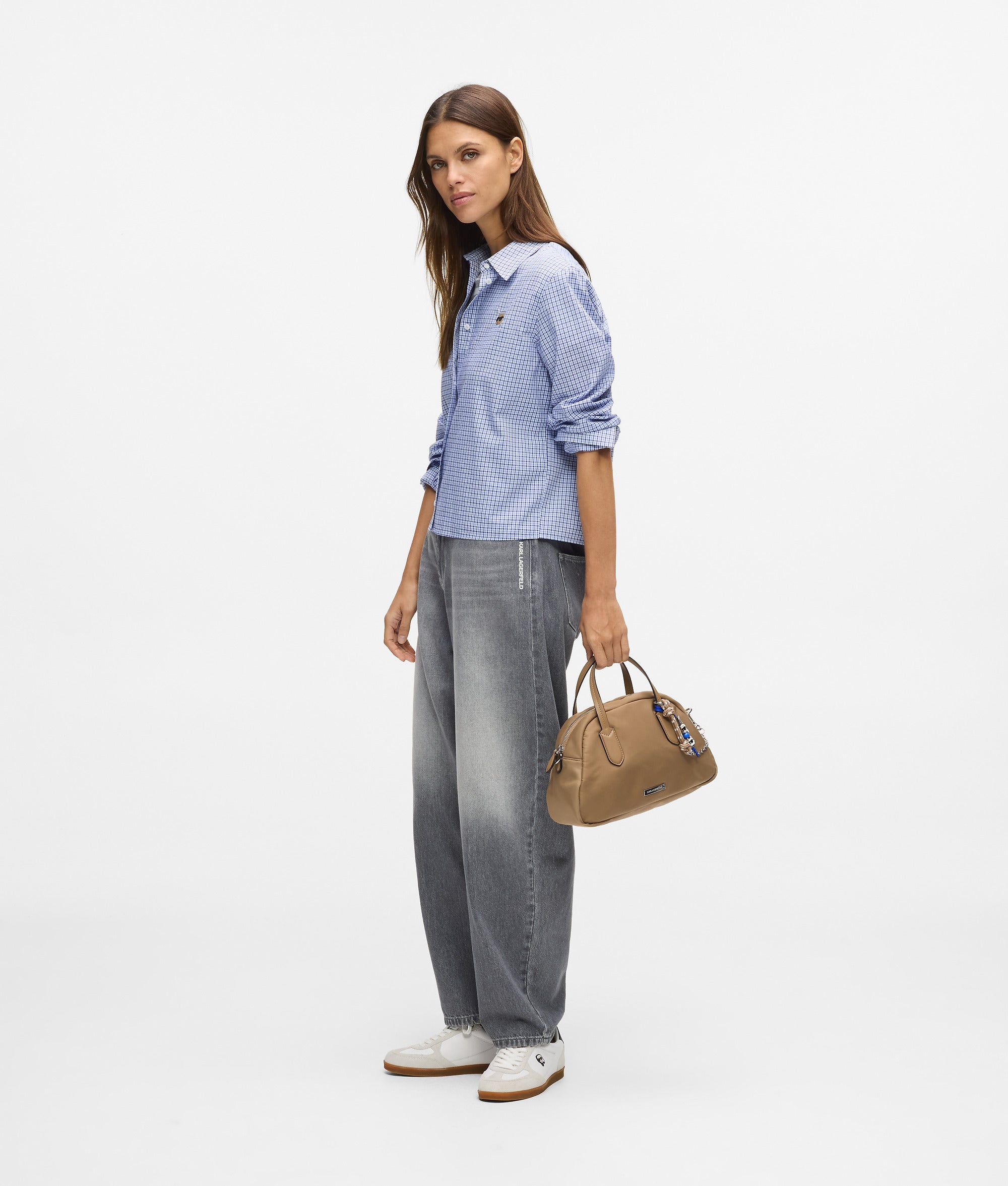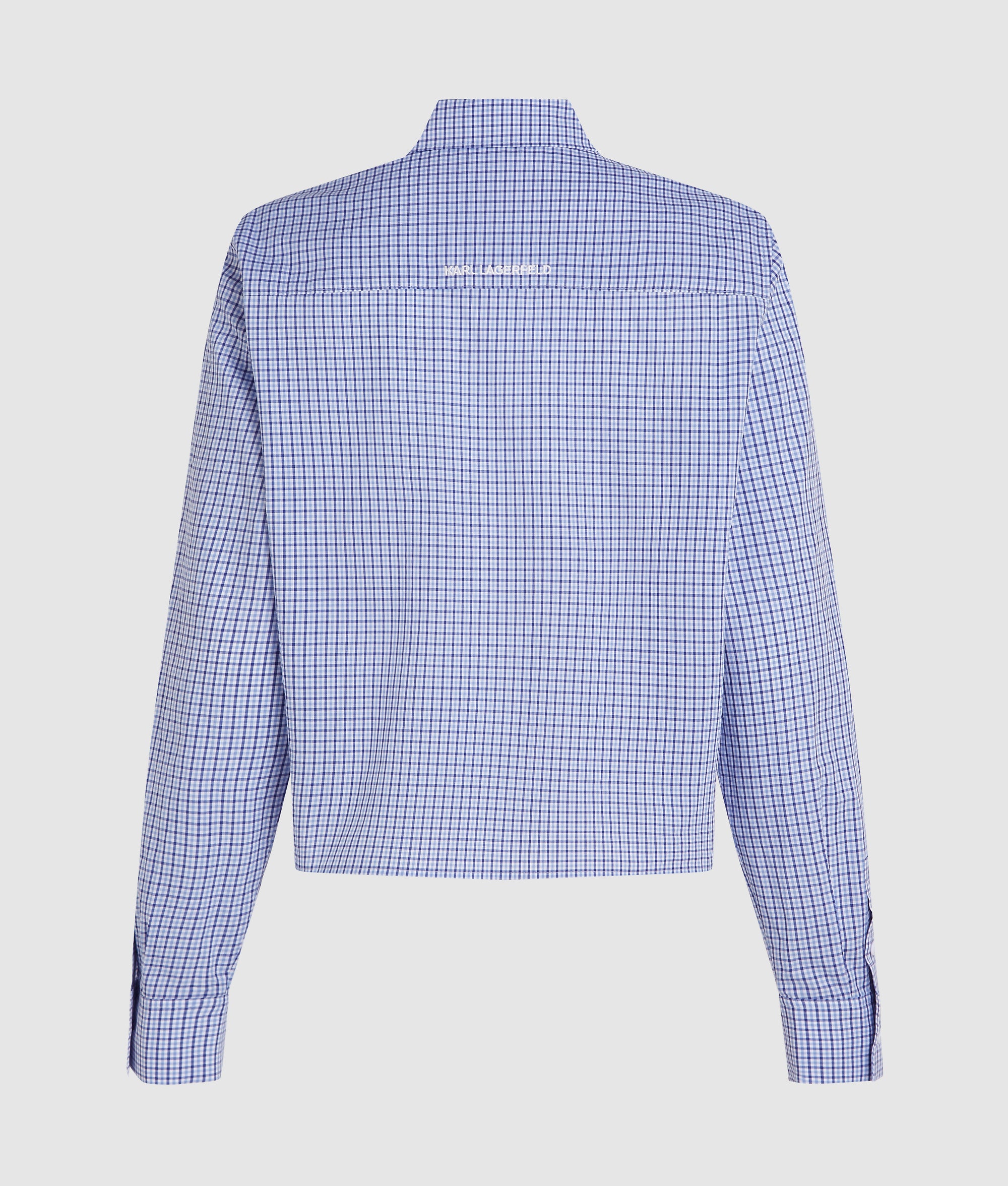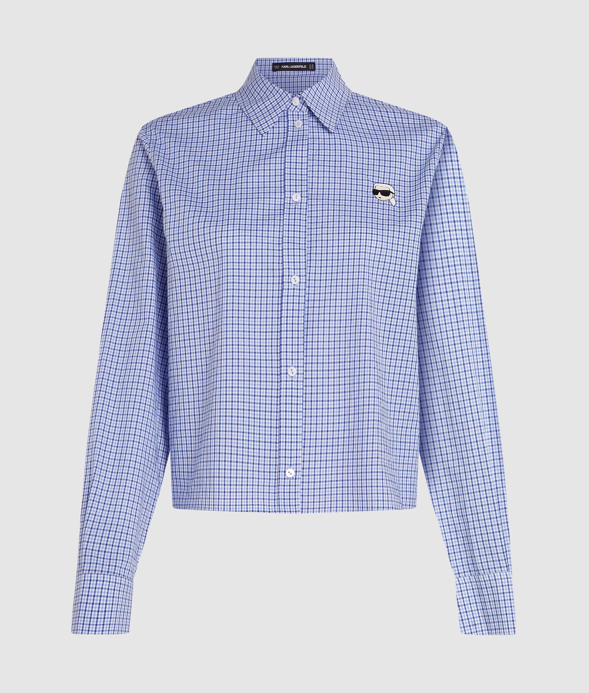 A timeless checked shirt with a sharp pointed collar. Crisp cotton brings structure, while the button-front closure and subtle Ikon Karl embroidery add refined finishes.