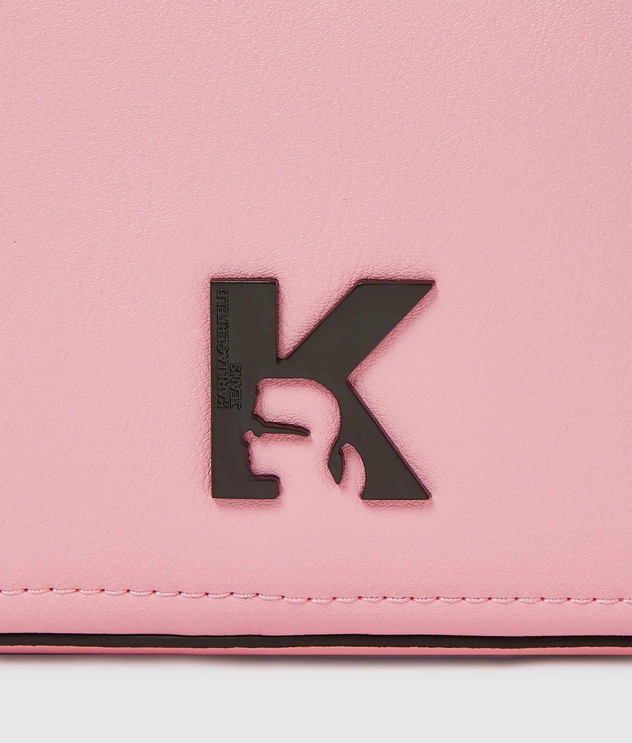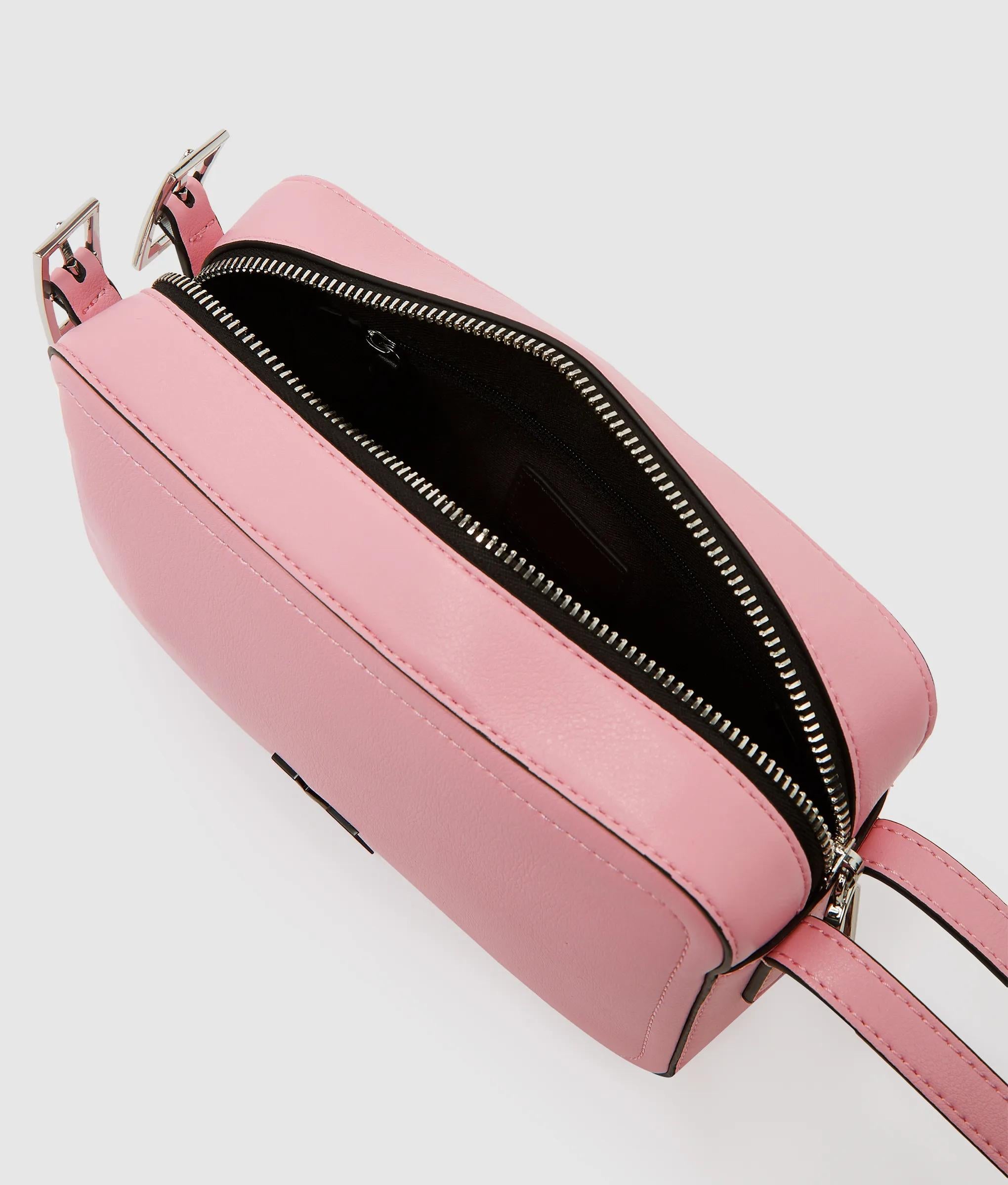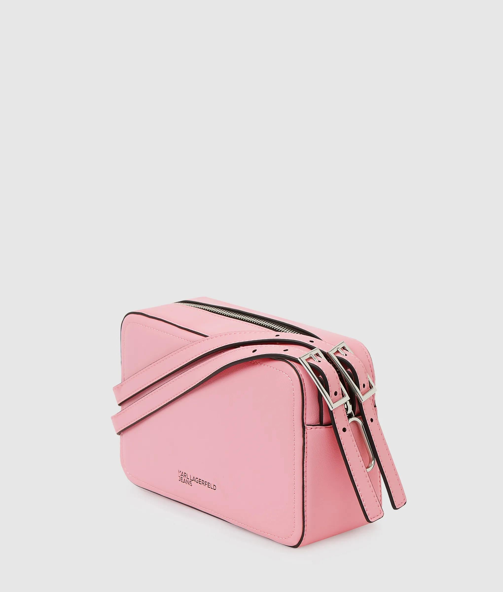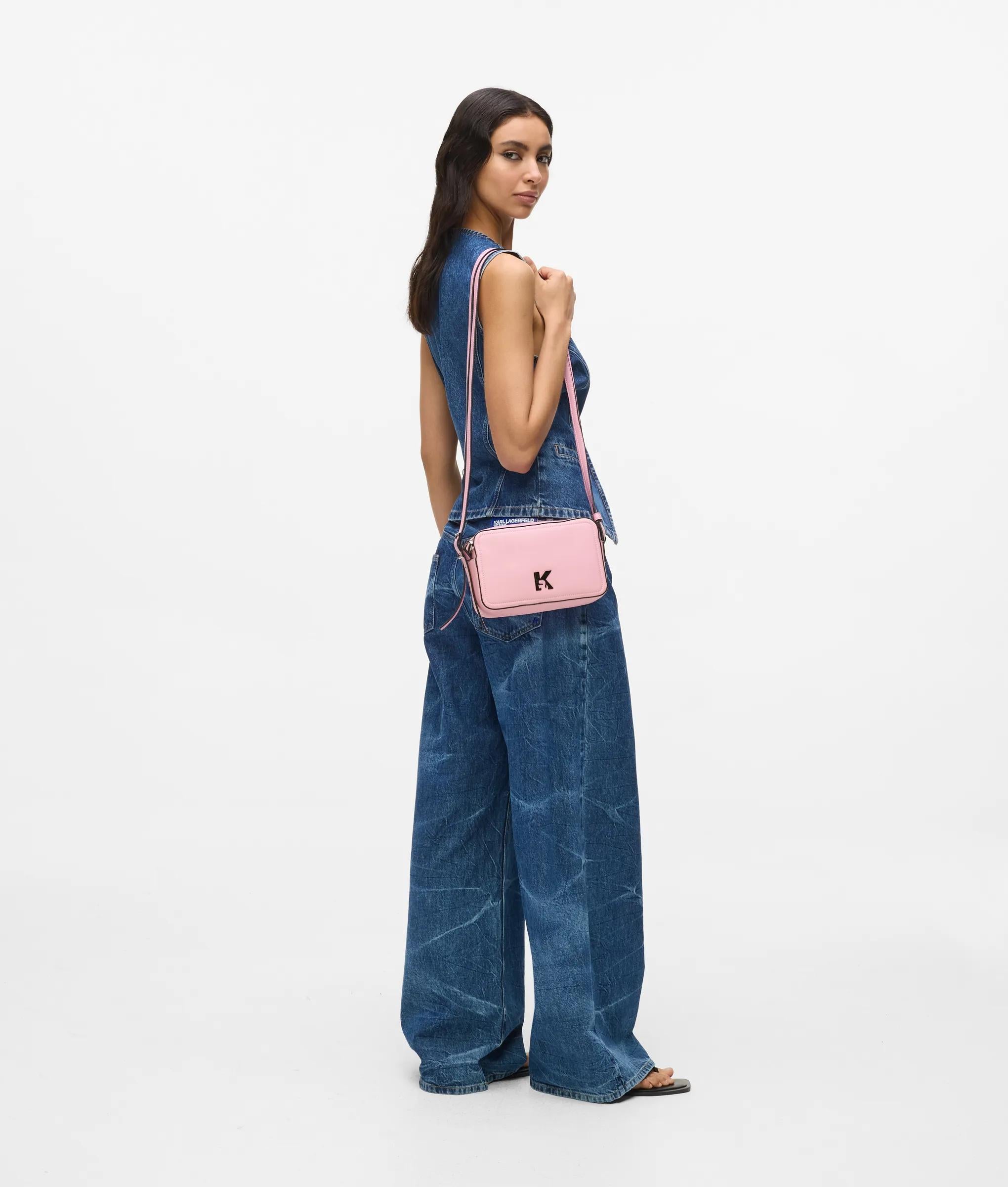 Blending contemporary style and functionality, this camera bag features statement twin straps and a bold metal K-logo. It secures your essentials with a sleek zip-top closure.
