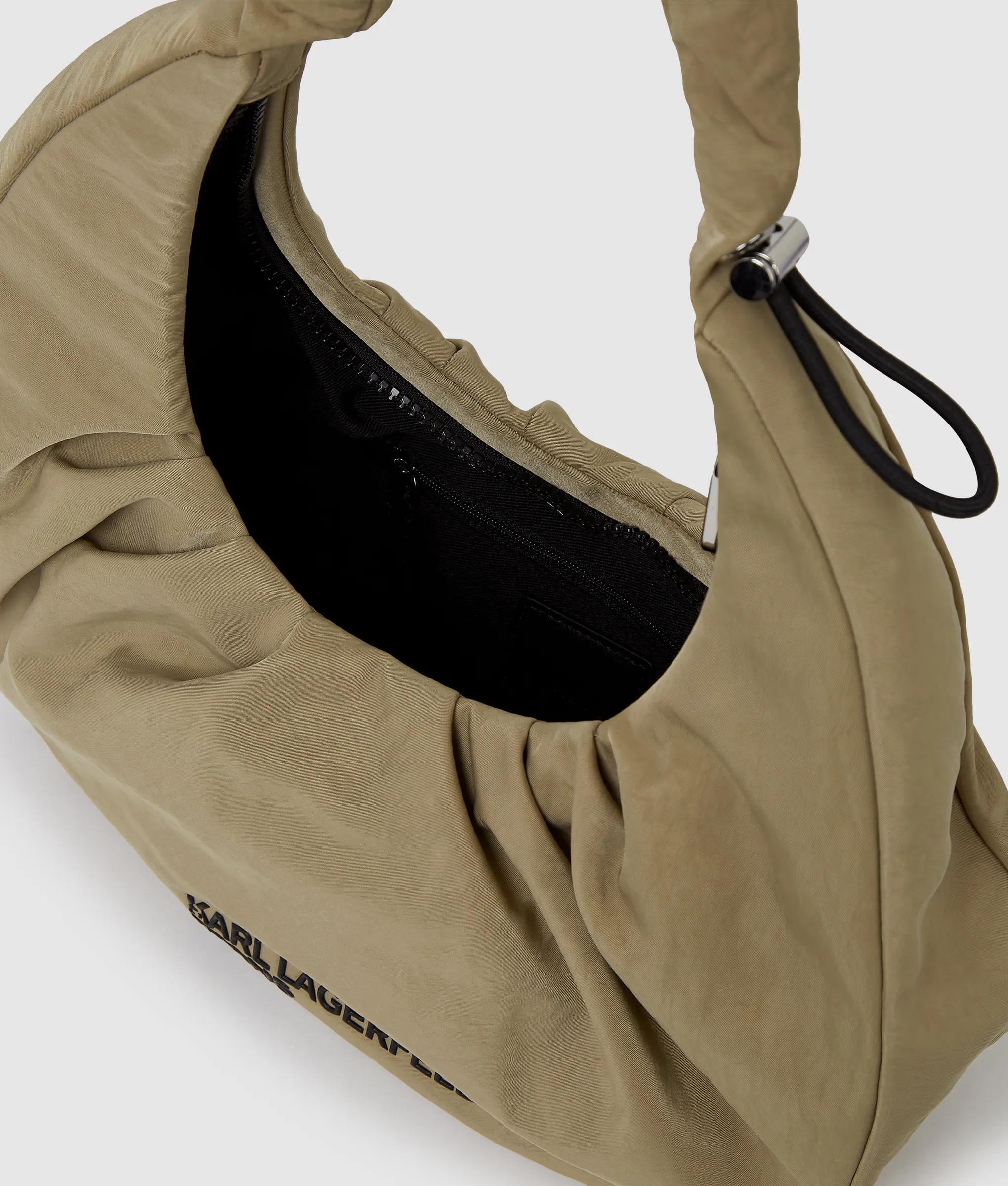 Marrying refinement and urban attitude, this standout hobo bag features a dynamic gathered finish and ruched strap with an elasticated drawstring and metal toggle for the perfect fit.