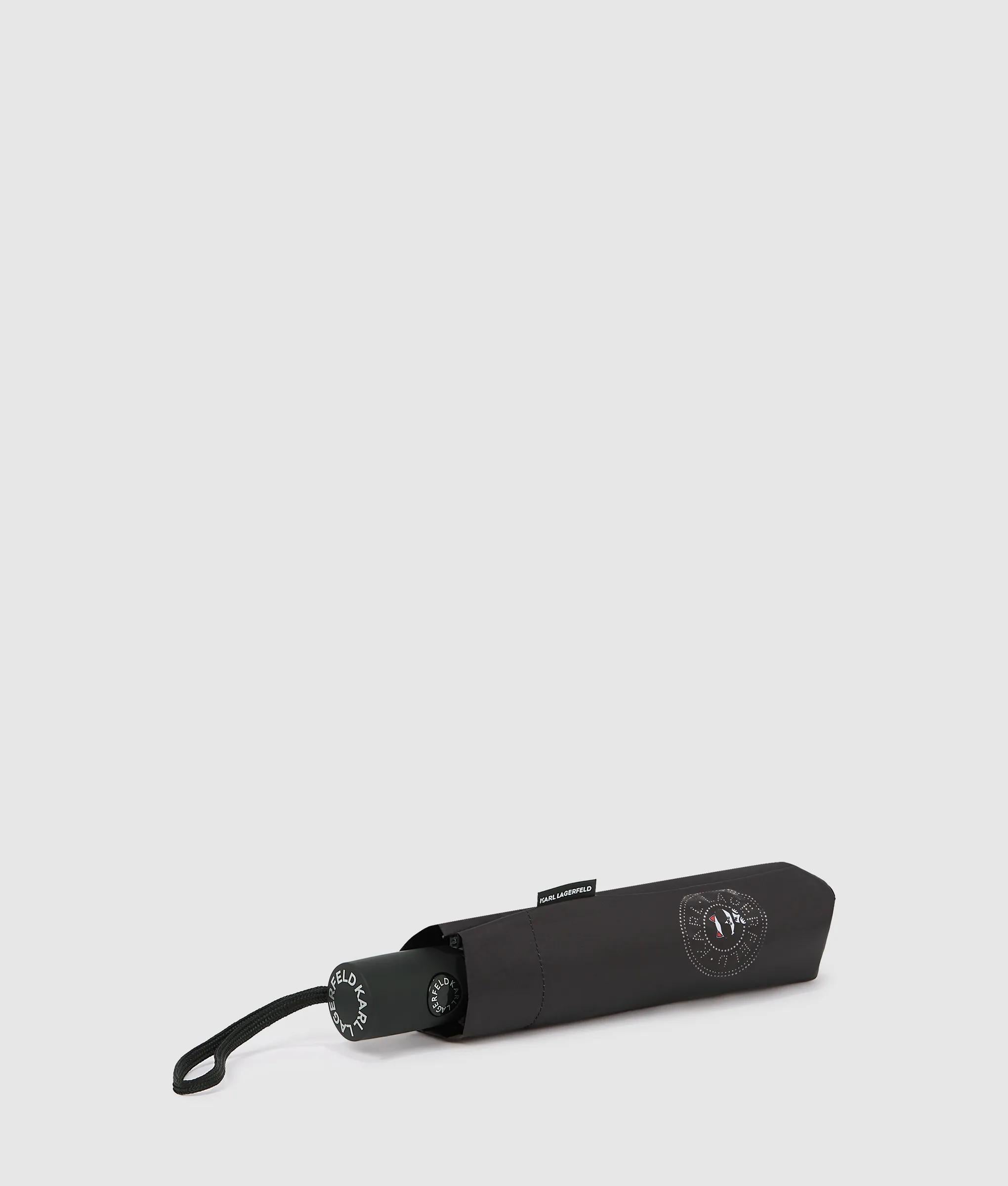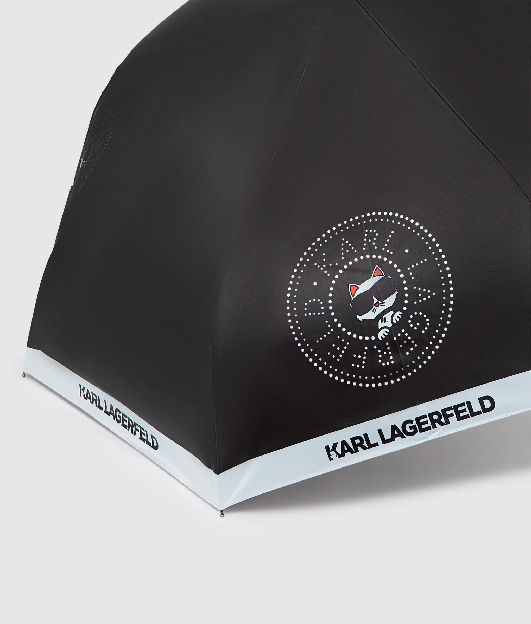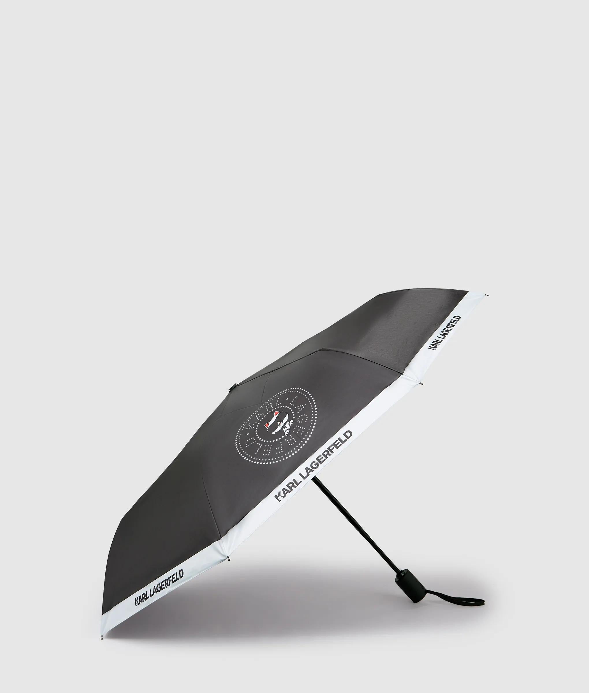 A sleek small umbrella with effortless automatic opening. Featuring the iconic Circle Ikon Choupette artwork and subtle KARL LAGERFELD branding, it’s a chic shield for rainy days.
