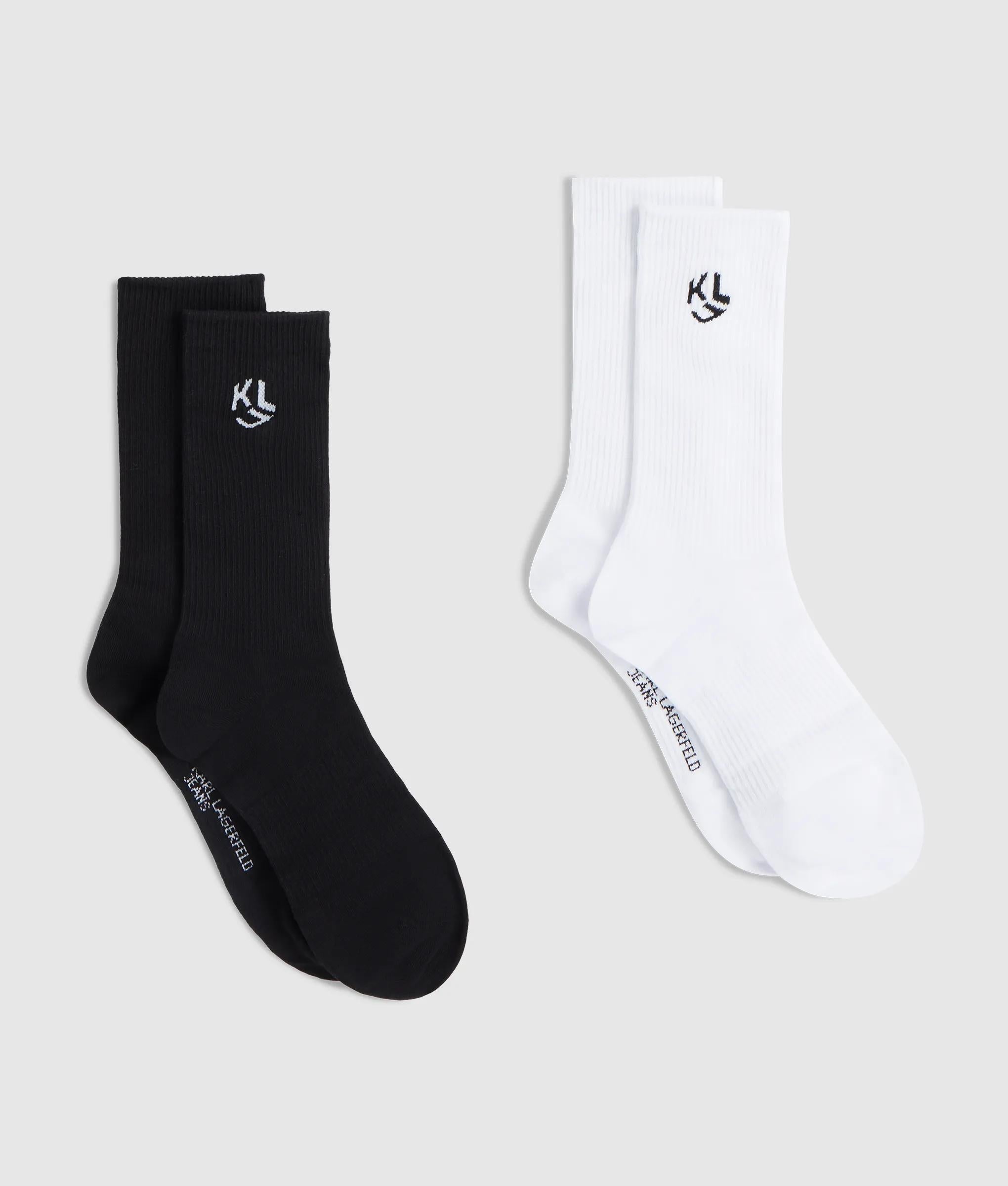 Mid-length socks bring bold attitude with KARL LAGERFELD JEANS monogram details at the ankle and logo on the sole. Soft cotton knit offers a fresh, confident finish.