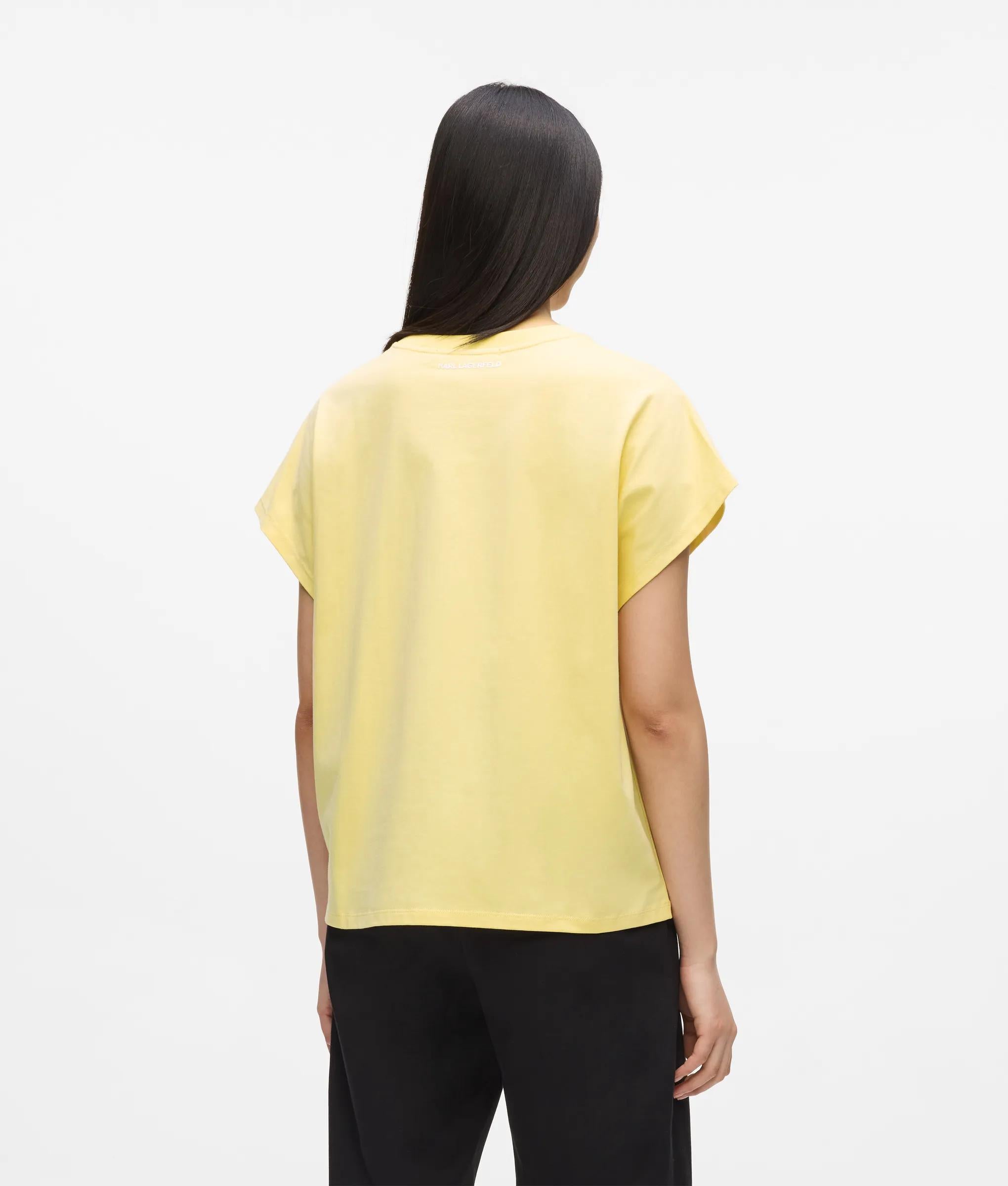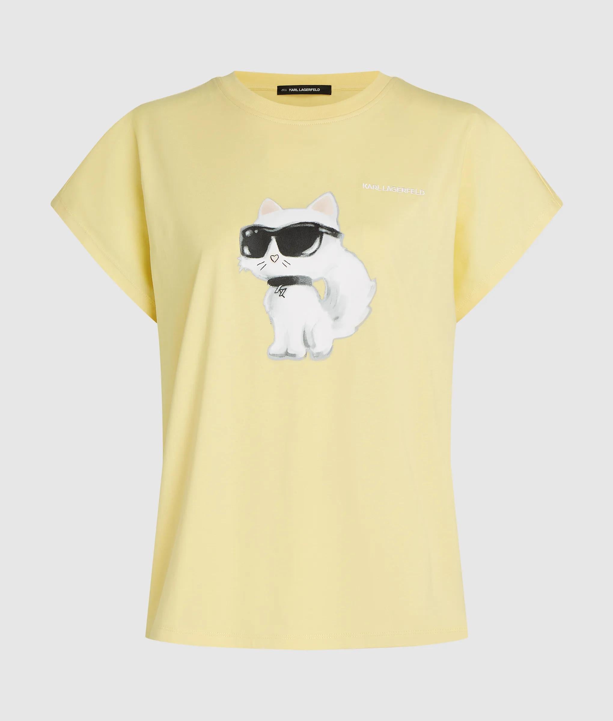 Discover a roomy oversized T-shirt featuring a classic crew neck and short sleeves. Adorned with a vibrant aquarelle-effect IKON Choupette design, it’s a playful statement piece.