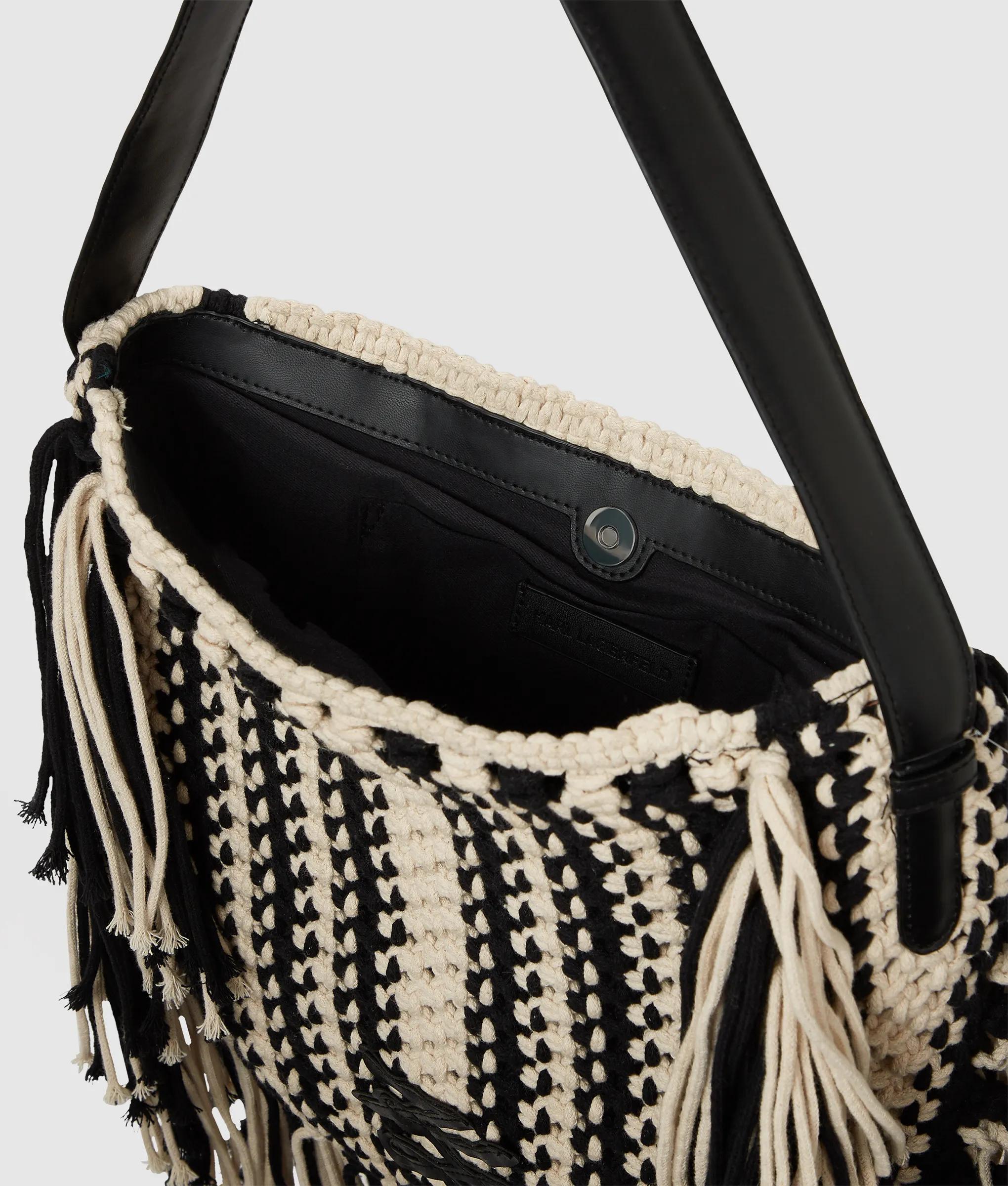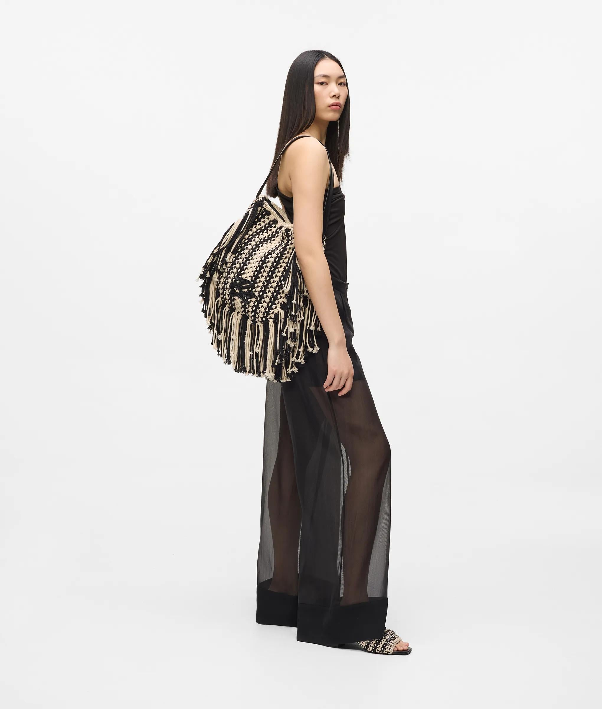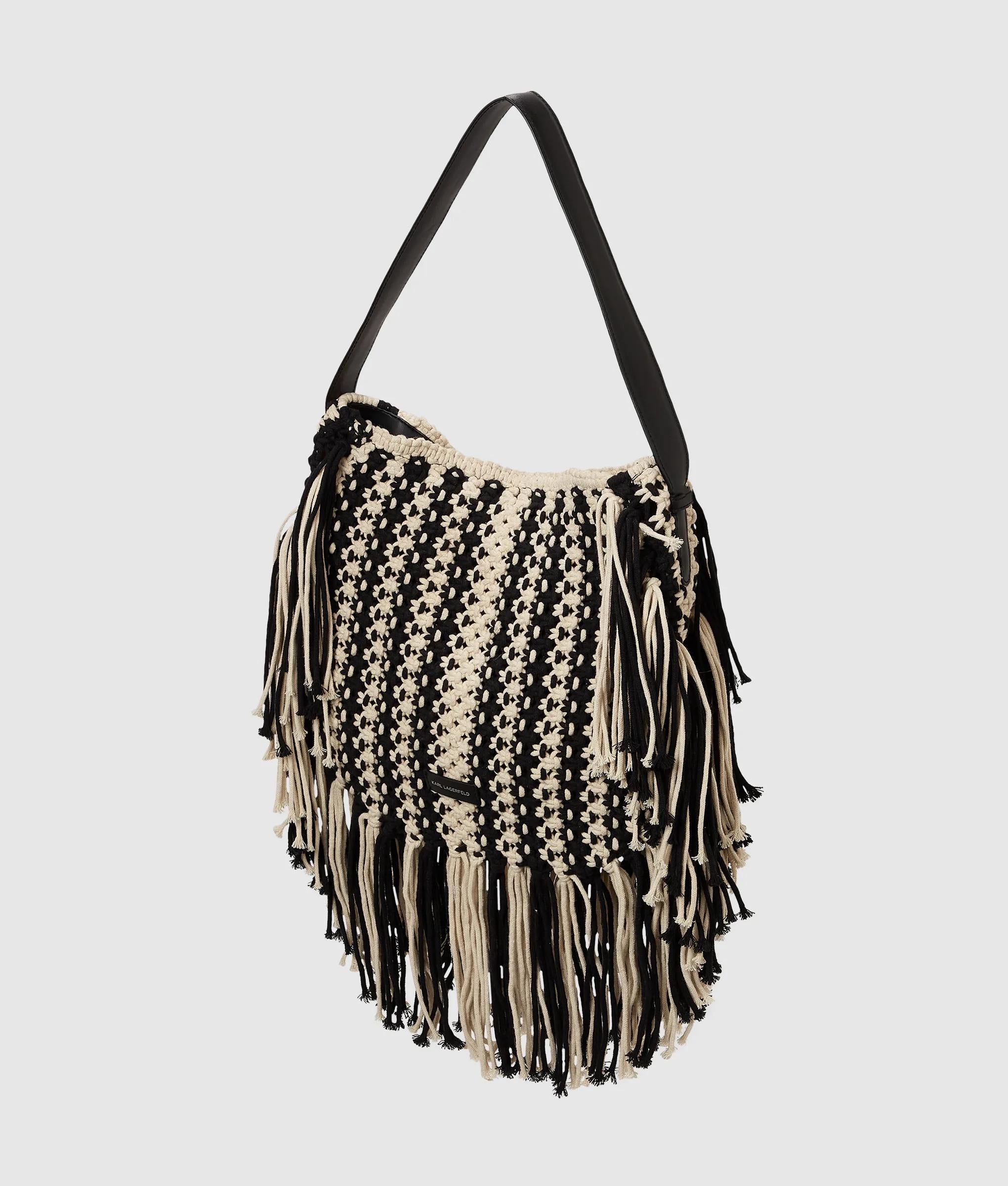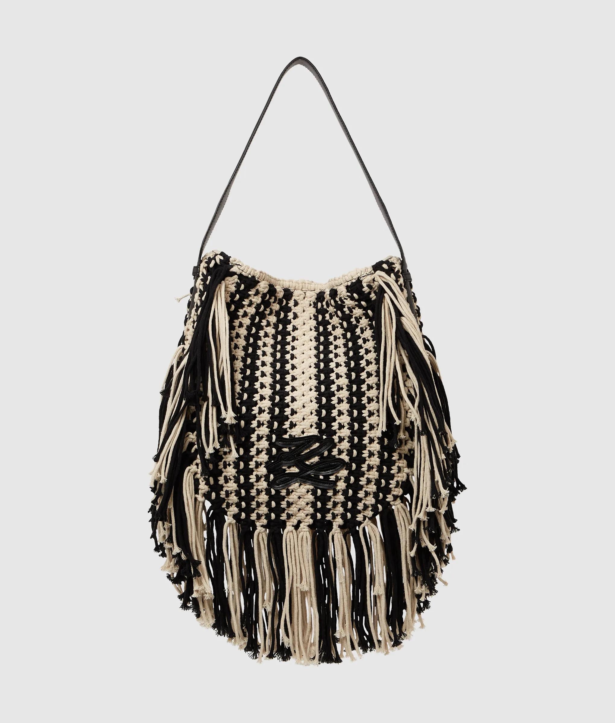 Add statement to casual looks with this braided cotton shoulder bag, featuring a relaxed slouchy silhouette and playful fringing. A technical leather strap ensures comfortable all-day wear.