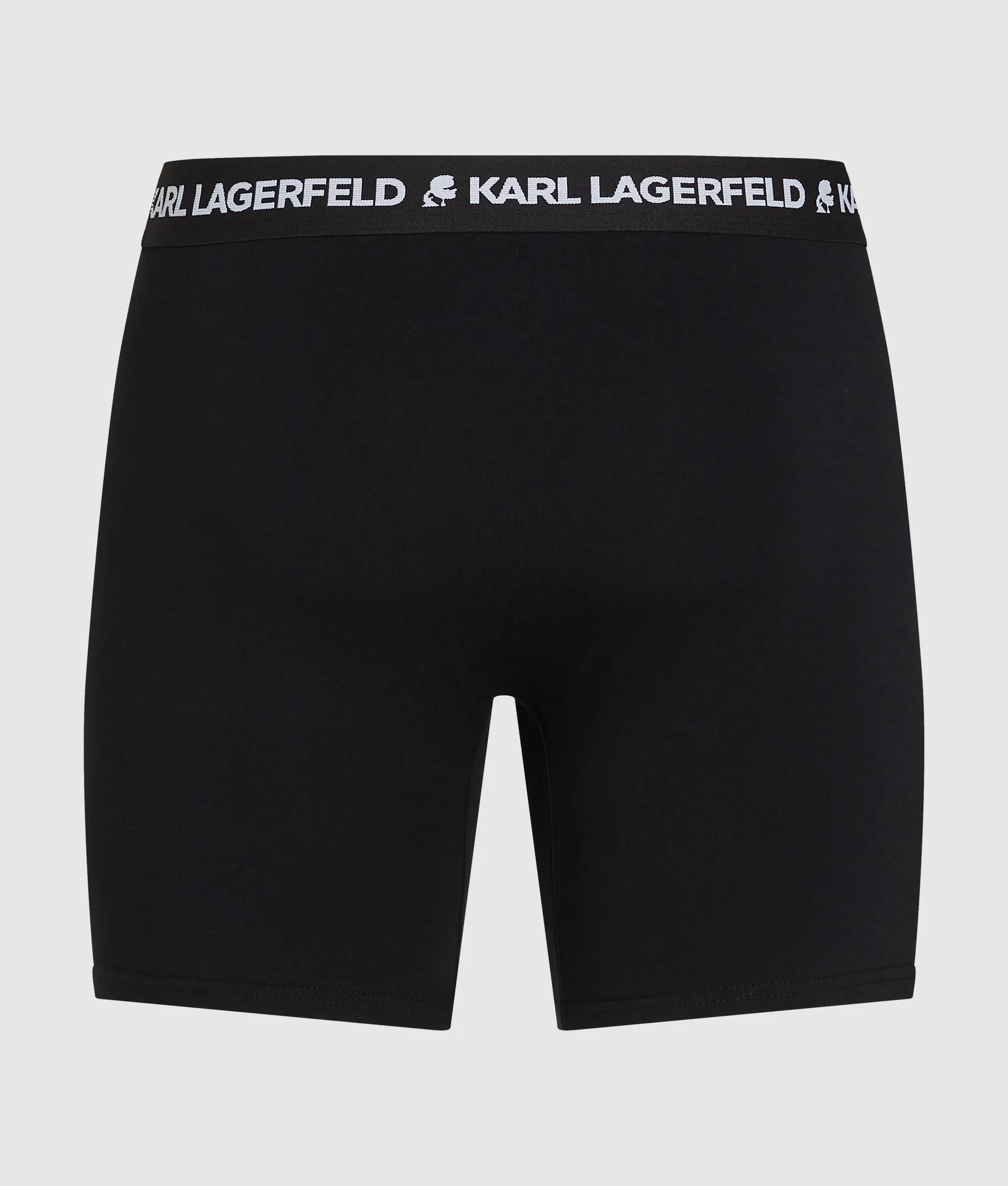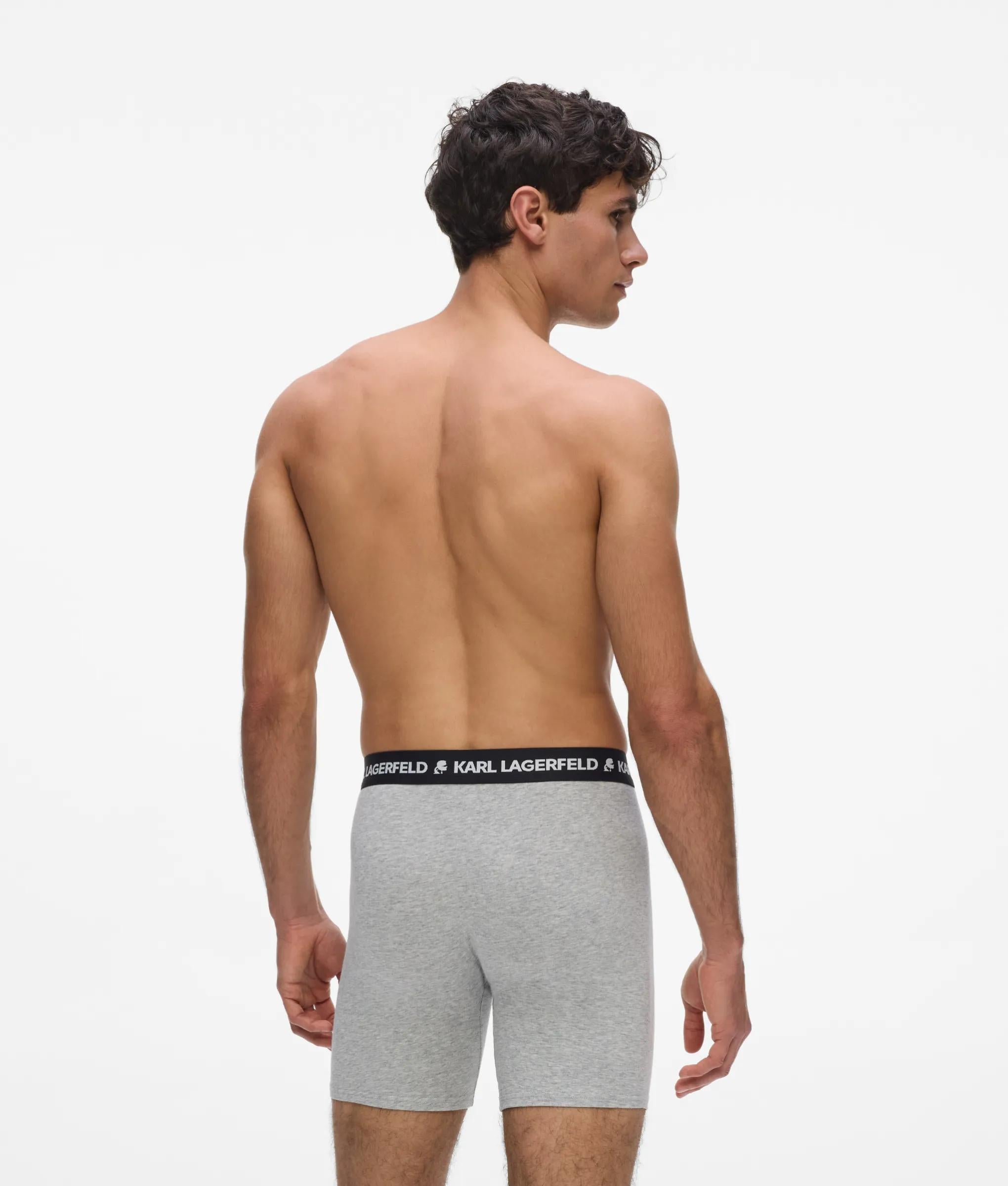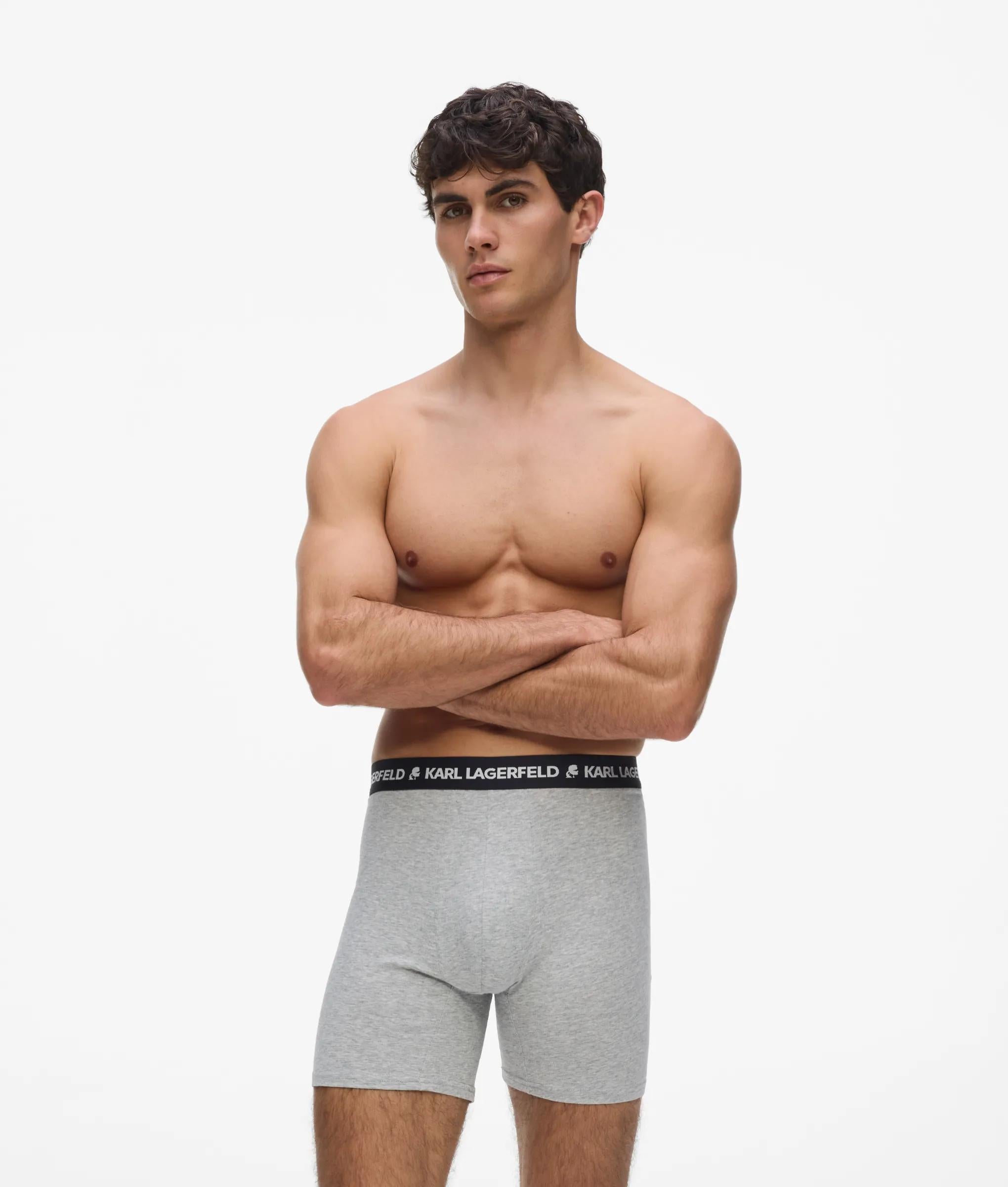 A close-fitting longline trunk set that balances comfort with signature style. The elastic waistband features the iconic KARL LAGERFELD logo, blending modern edge with organic cotton softness.