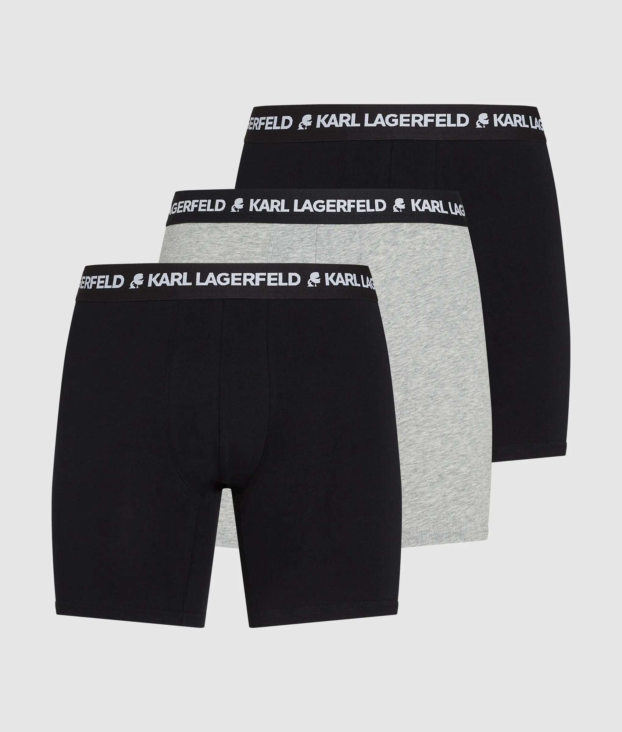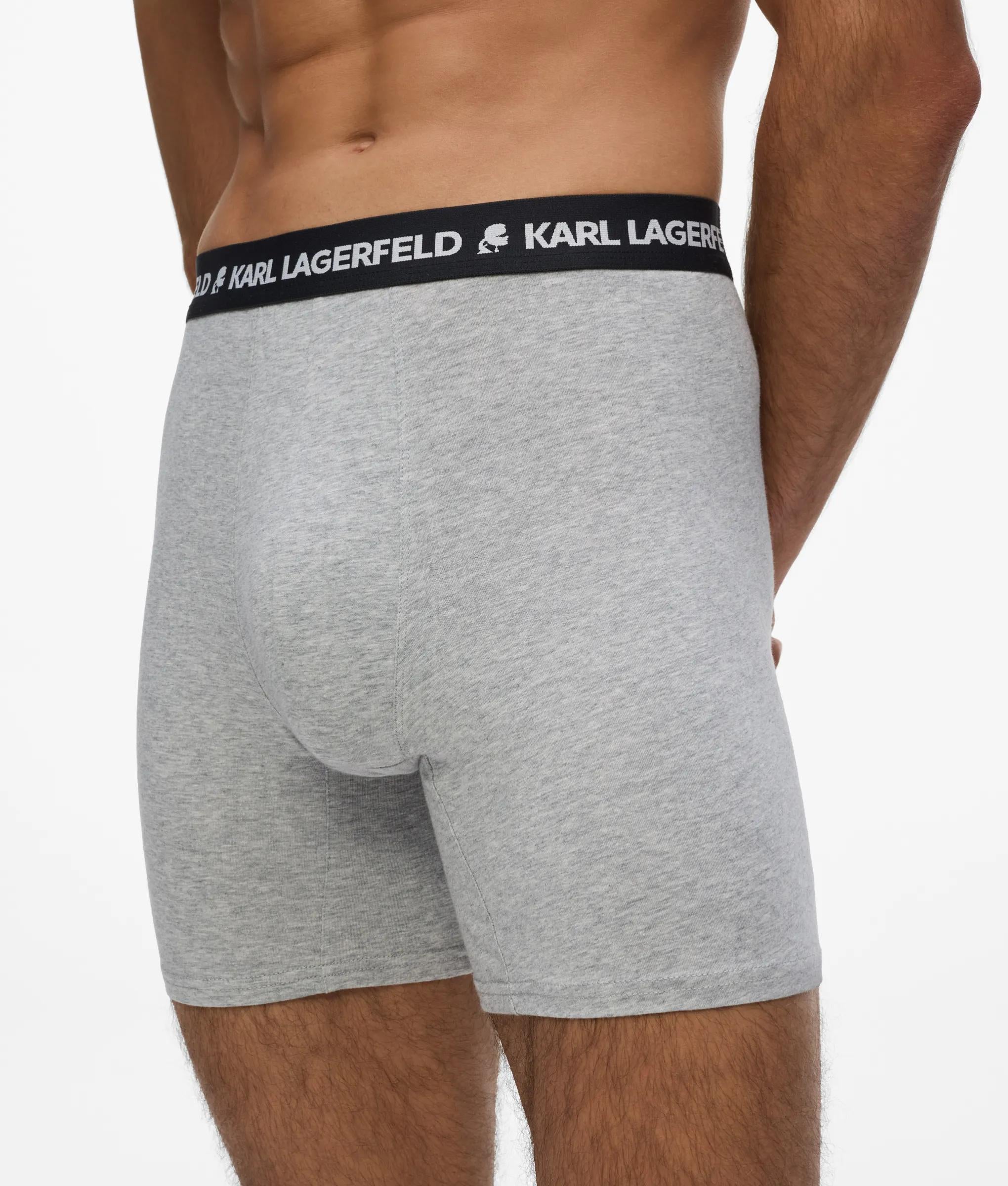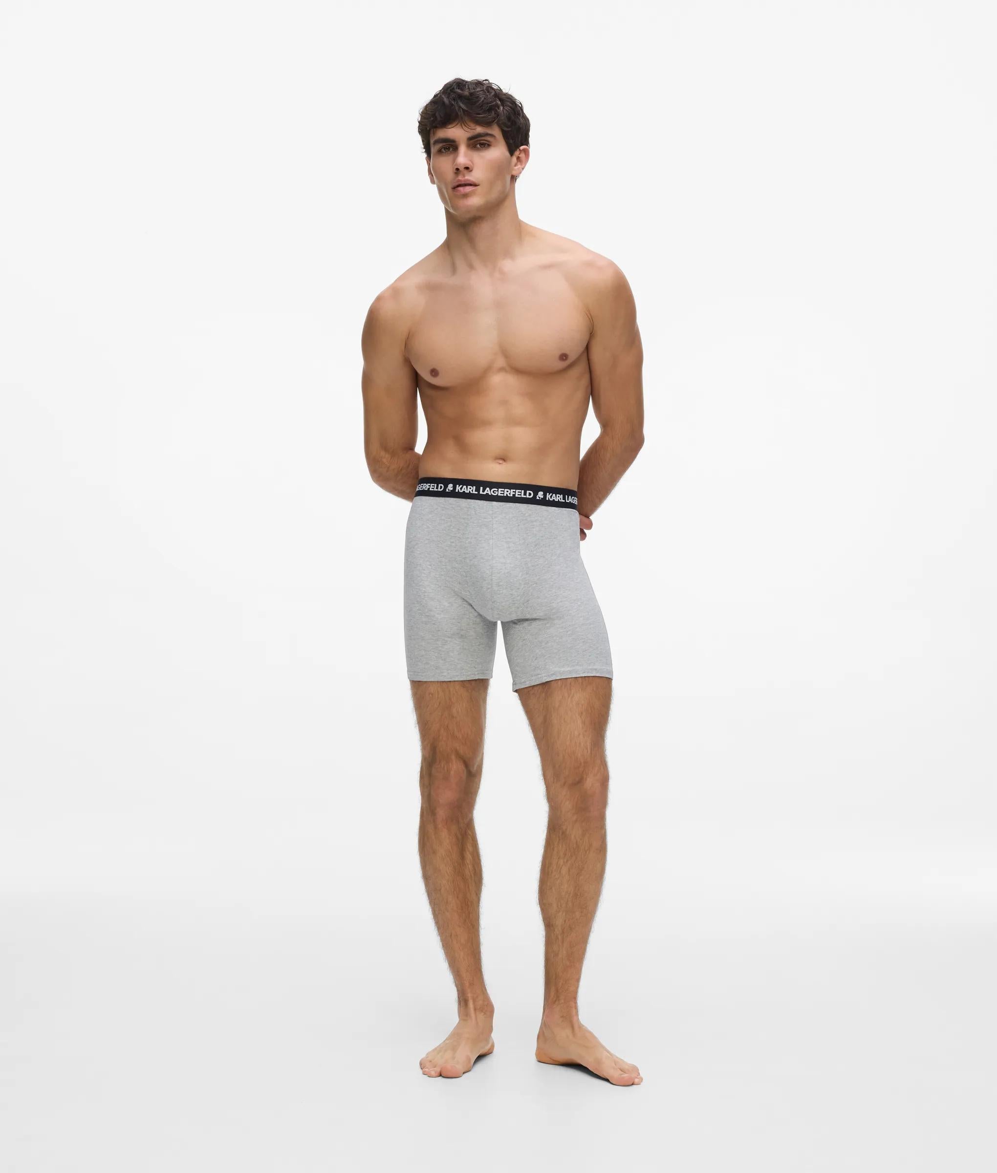 A close-fitting longline trunk set that balances comfort with signature style. The elastic waistband features the iconic KARL LAGERFELD logo, blending modern edge with organic cotton softness.