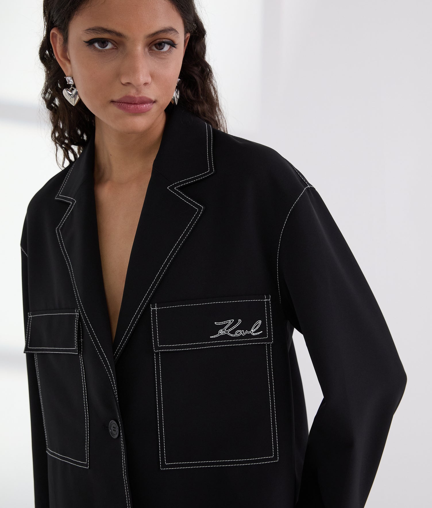 Explore Karl Lagerfeld's collection of women's suits, featuring tailored suits, trouser suits, blazers, suit sets, and pantsuits. Elevate your style with occasionwear that blends sophistication and fashion-forward design, perfect for any formal or professional setting.