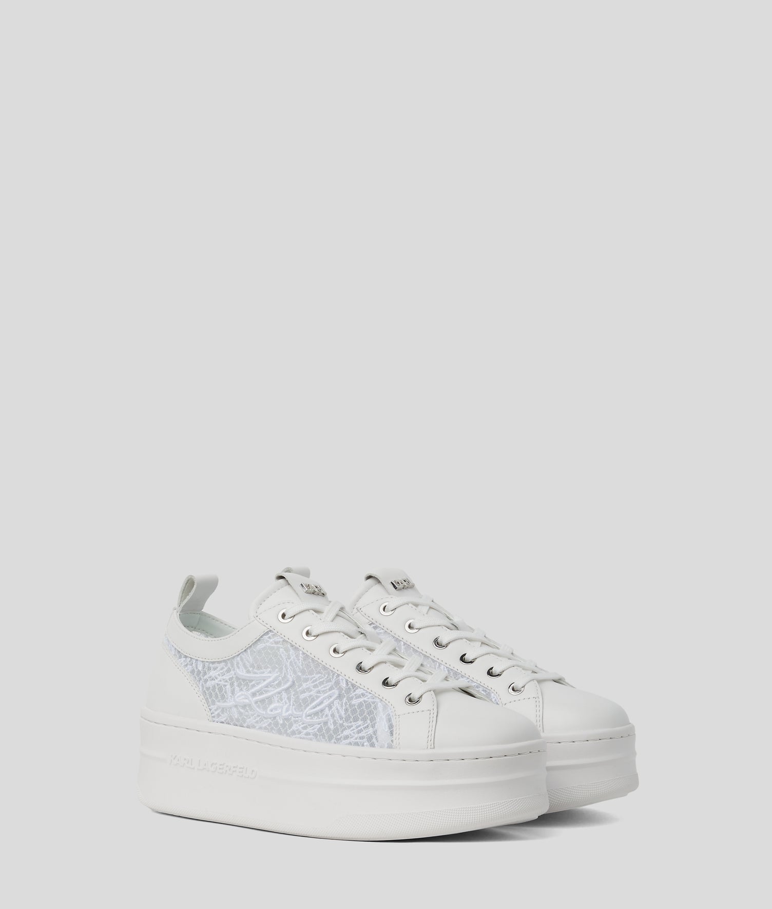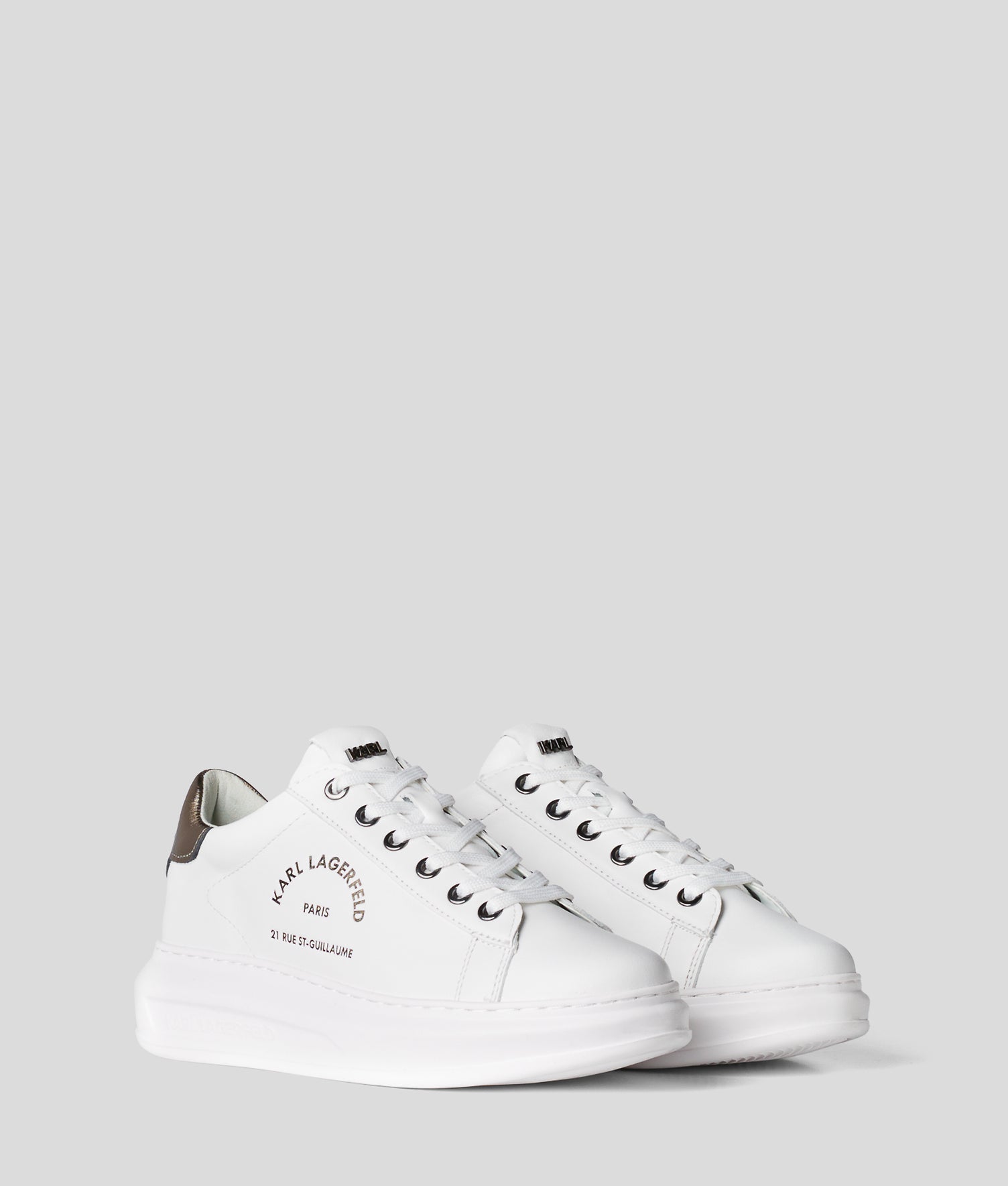 From colourful metallic details to sophisticated designs in supple leather, KARL LAGERFELD women’s trainers instantly make any outfit look effortlessly cool. Crafted from high-tech and premium materials, do not miss out on sporty classics like high-top sneakers, platform sneakers and canvas trainers.