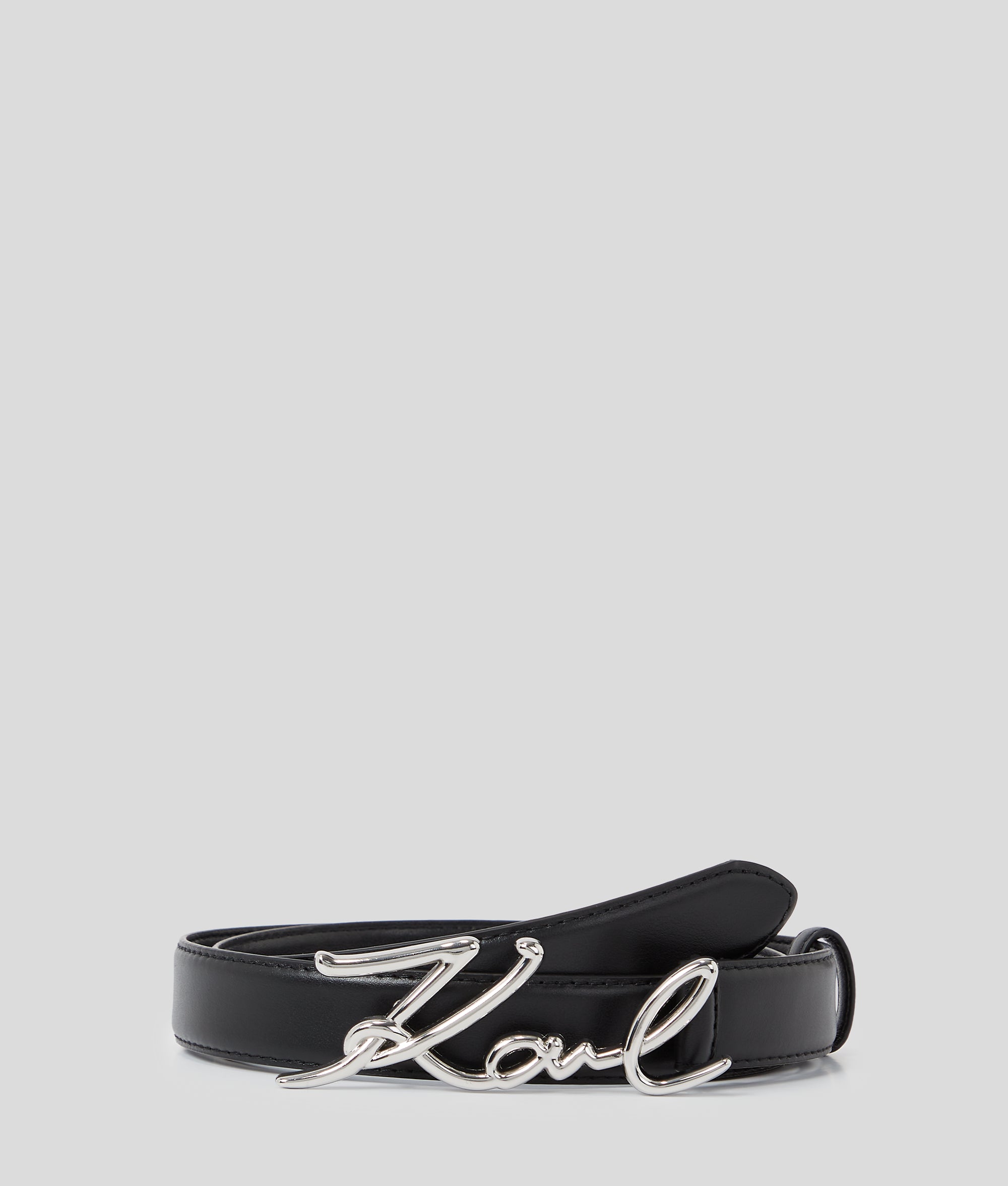 Complete the look with this luxury, smooth leather belt featuring a polished KARL Signature logo buckle. The K/Signature collection sees accessories adorned with iconic hardware inspired by the visionary designer’s handwritten signature.
