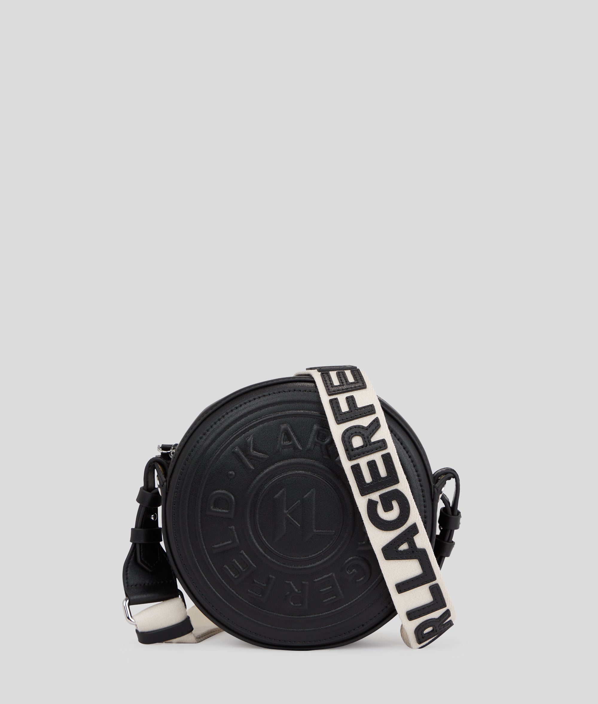 K/CIRCLE EMBOSSED LOGO ROUND CROSSBODY BAG