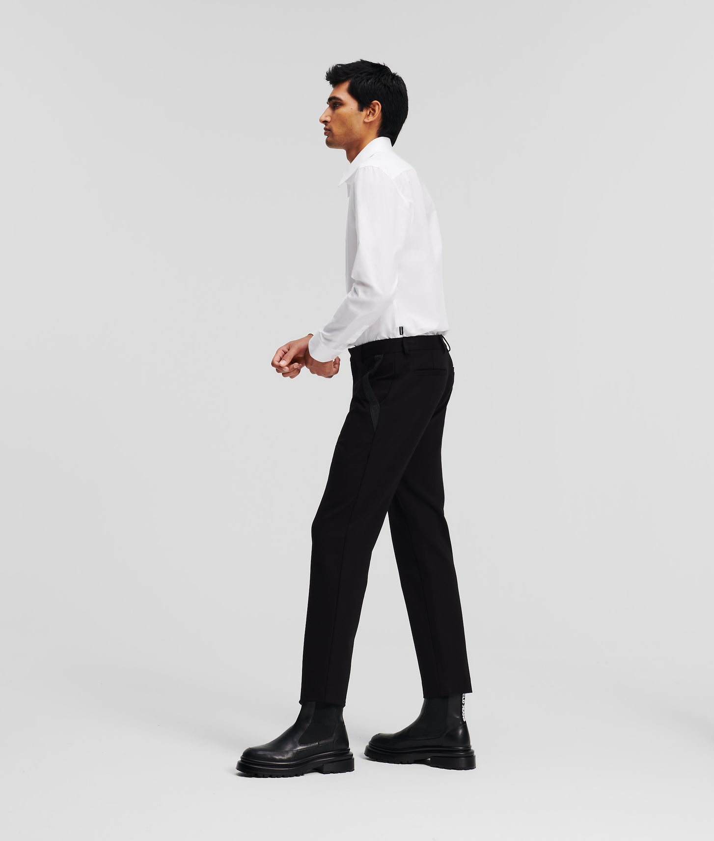 Classic tailoring meets statement style with these punto trousers enriched with KARL logo tape at the pockets. Wear yours with the matching jacket for a contemporary take on traditional suiting.