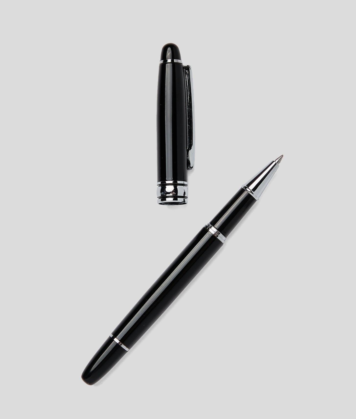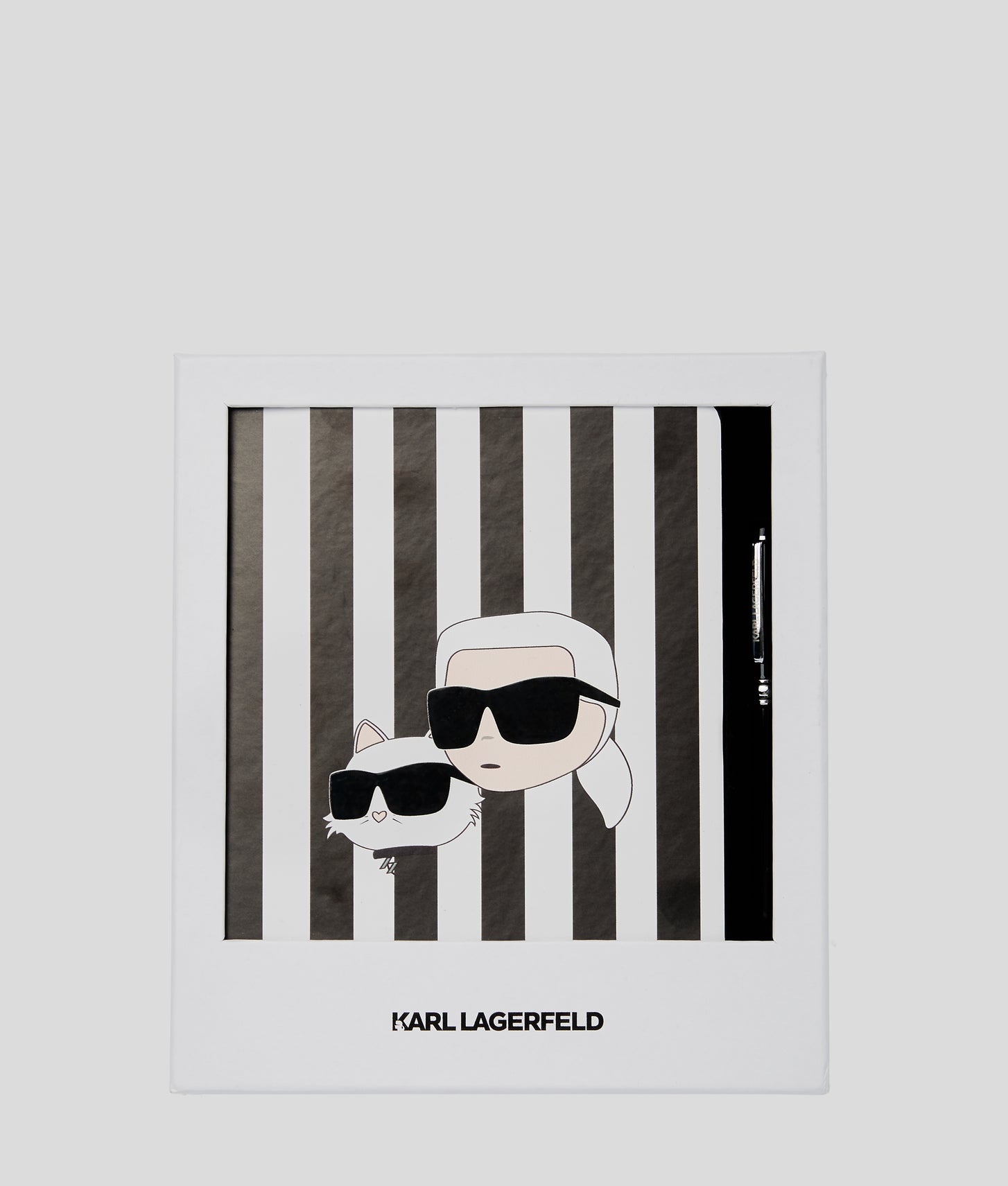 This elegant two-piece gift set features a stylish striped notebook paired with a sleek ballpoint pen. Lined pages and a red ribbon bookmark enhance the writing experience, showcasing charming IKON artwork.