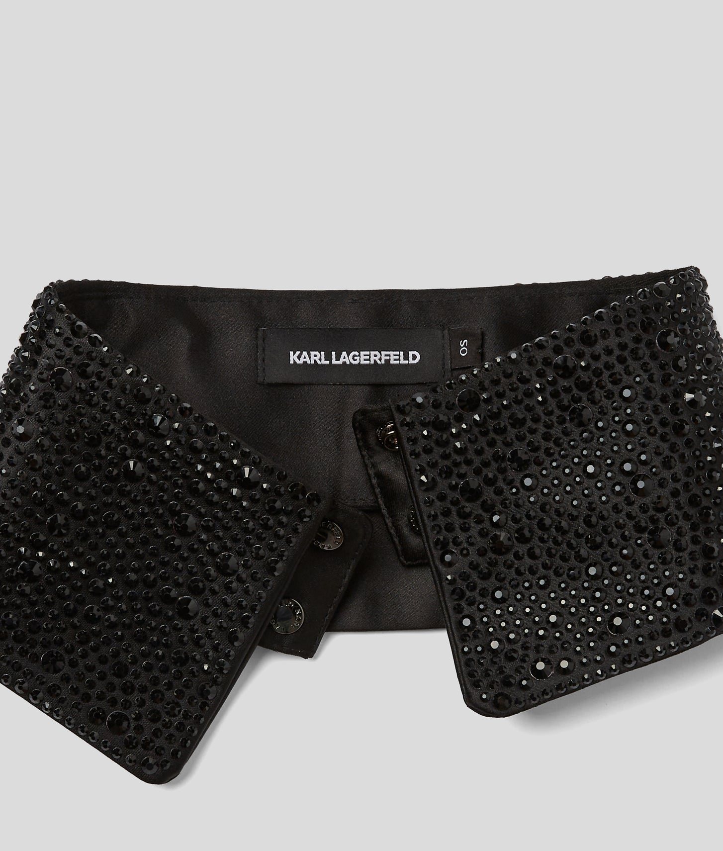 Transform any outfit with this exquisite satin collar, adorned with radiant rhinestones. Hand-selected by KARL LAGERFELD's Design Director Hun Kim, it effortlessly elevates day-to-night looks.