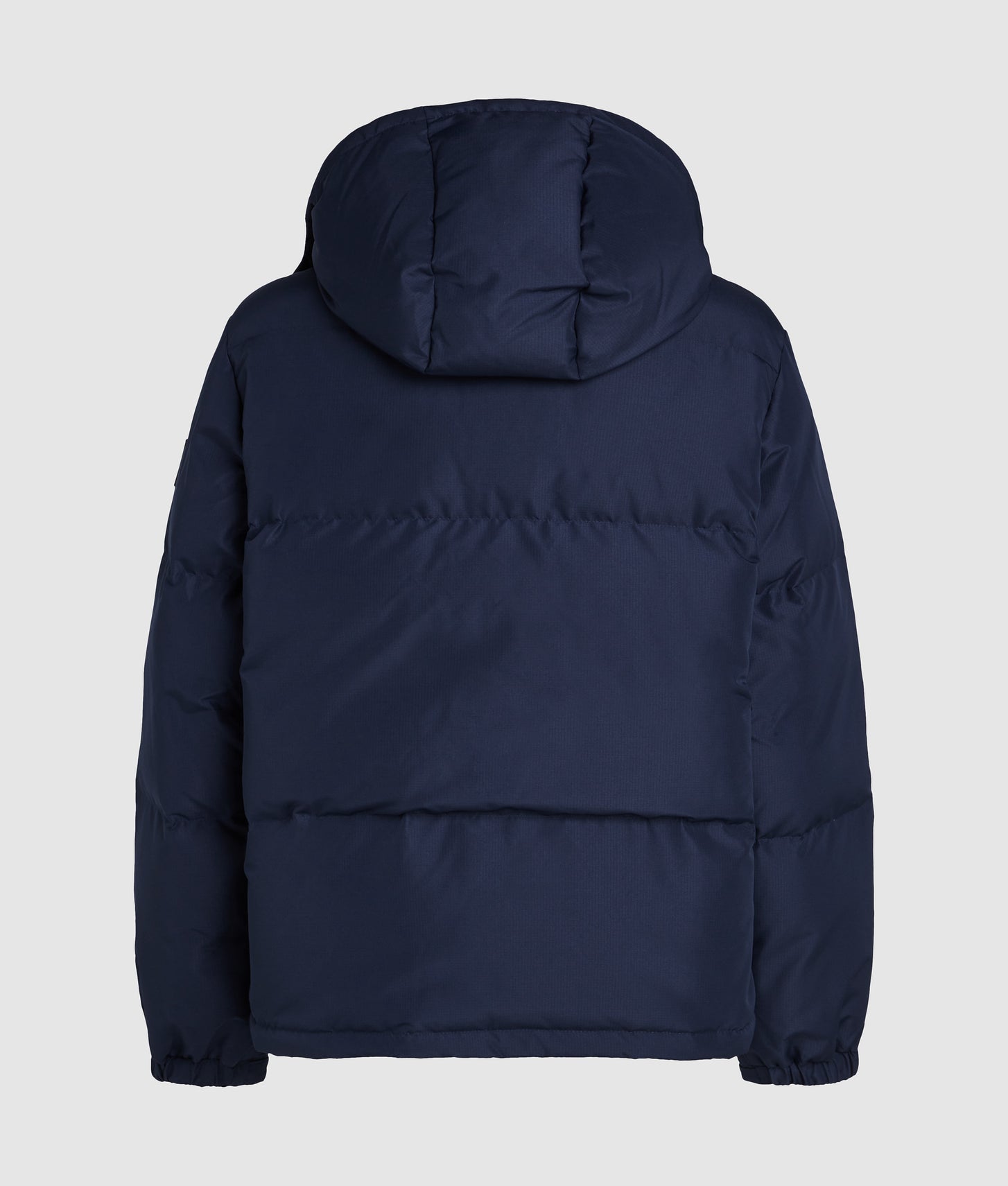 Embrace a street-style aesthetic with this puffer jacket, featuring a zip front closure that leads to a high funnel neck and a detachable hood for versatile styling. Practical zipped side pockets add functionality, while the bold KARL LAGERFELD JEANS logo makes a striking statement.