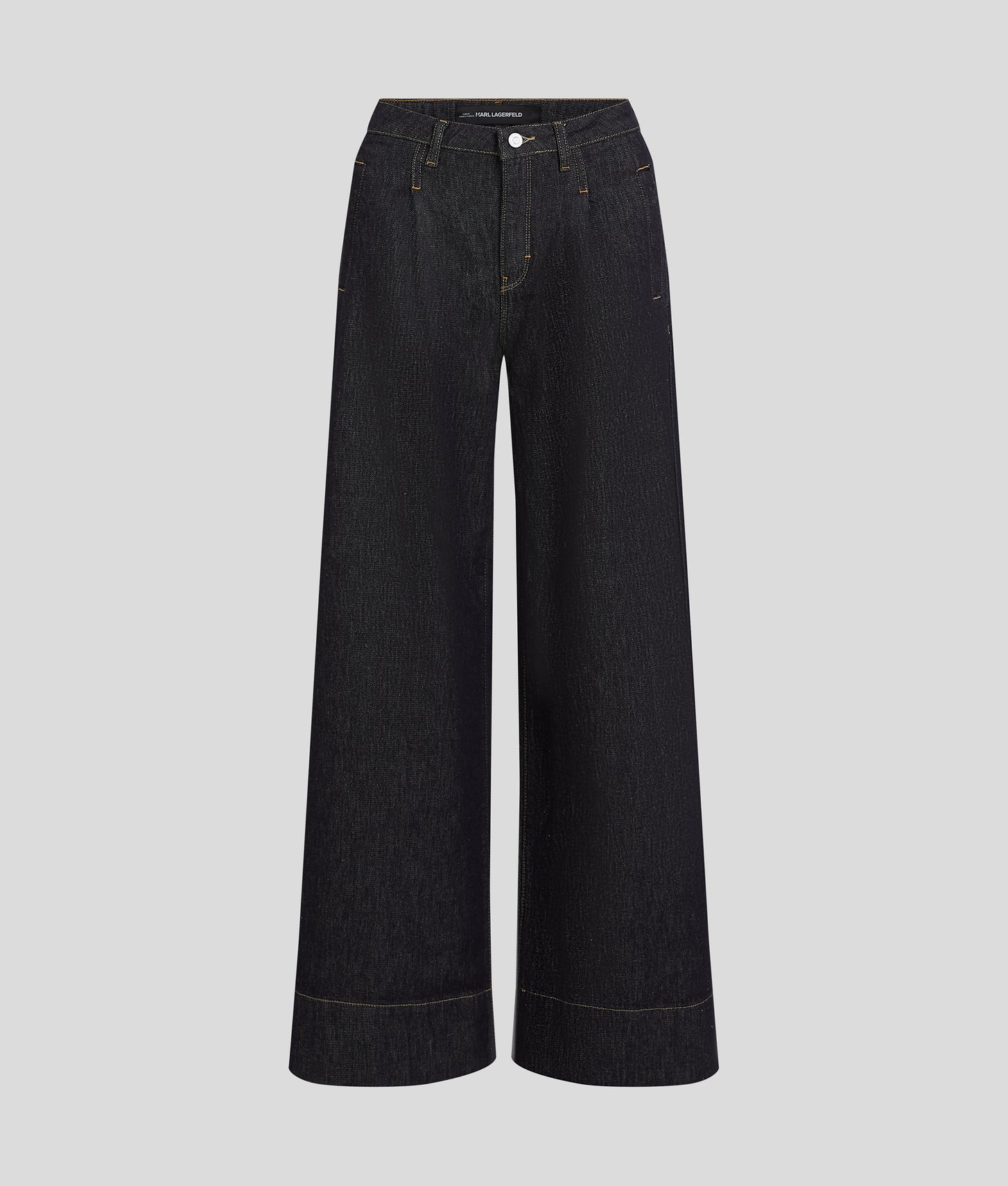 A striking blend of casual comfort and bold design, these wide-leg jeans feature an ultra-flattering high-waisted silhouette. With contrasting stitching inspired by Karl Lagerfeld’s love for statement lines, they effortlessly elevate any outfit.