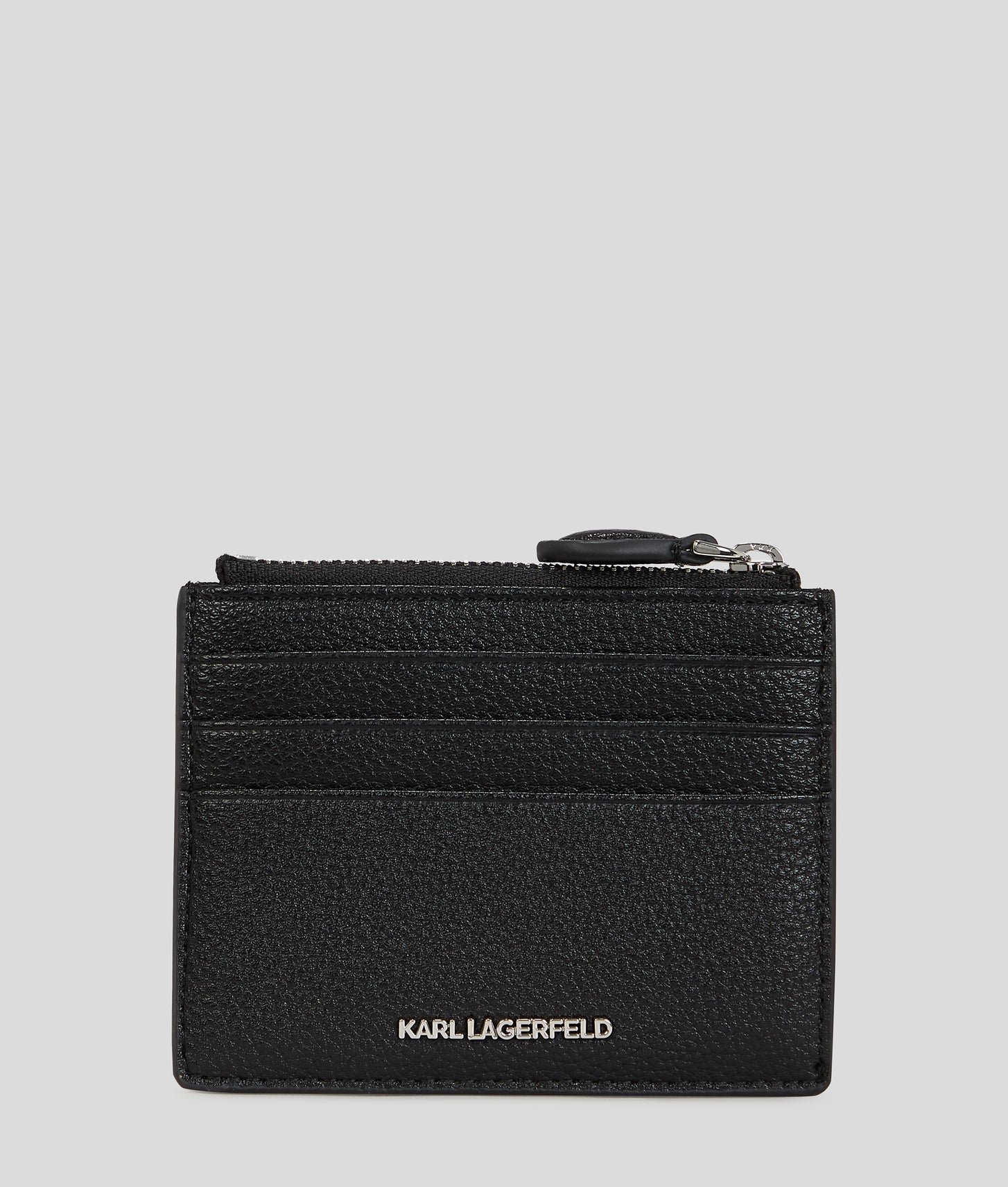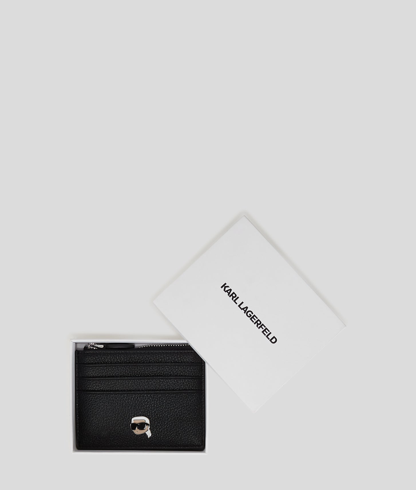 Elevate your accessory game with this sleek cardholder, featuring a playful Ikon Karl pin. Its zip-top middle compartment and multiple card slots ensure both style and practicality, making it a must-have for daily use.