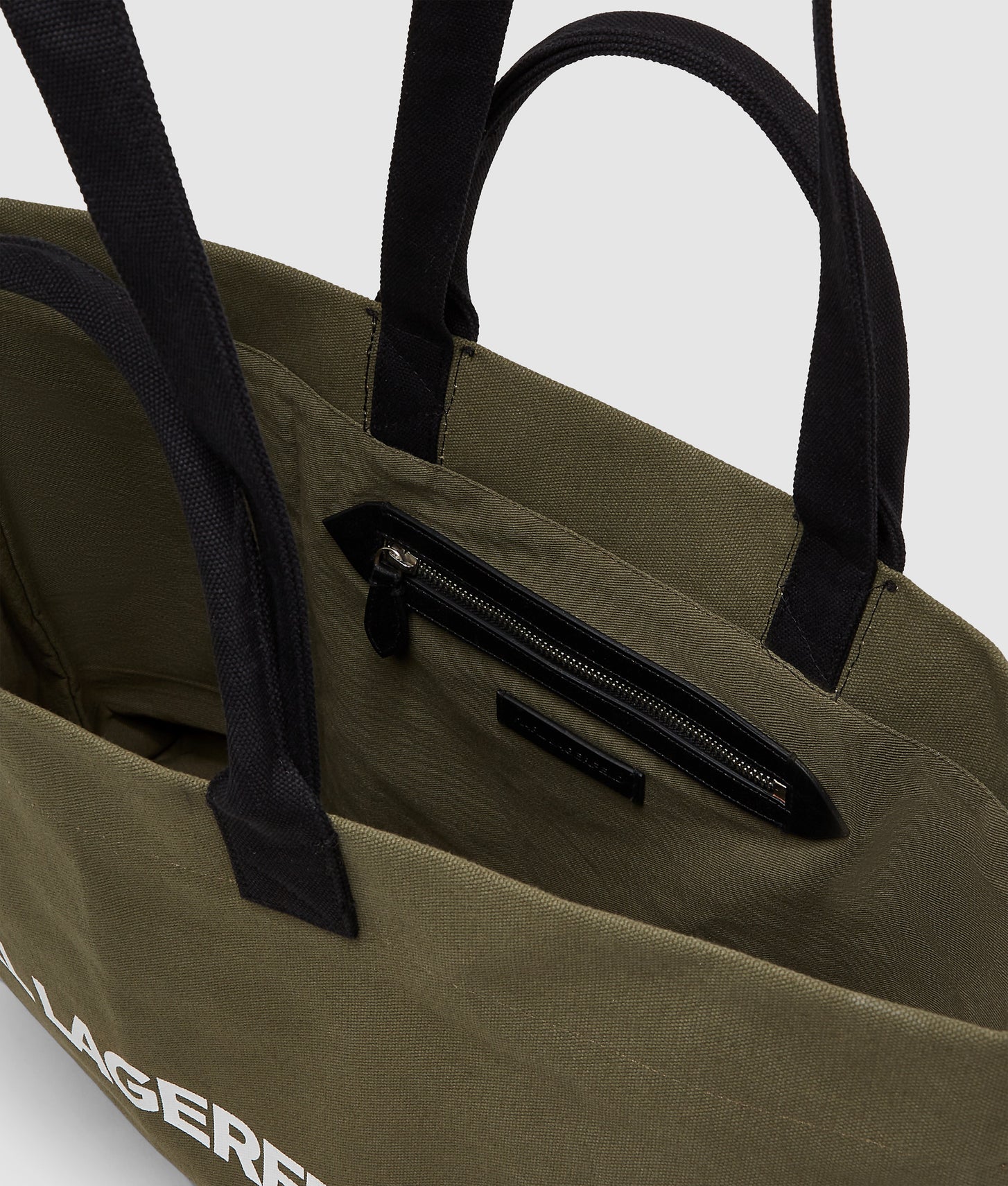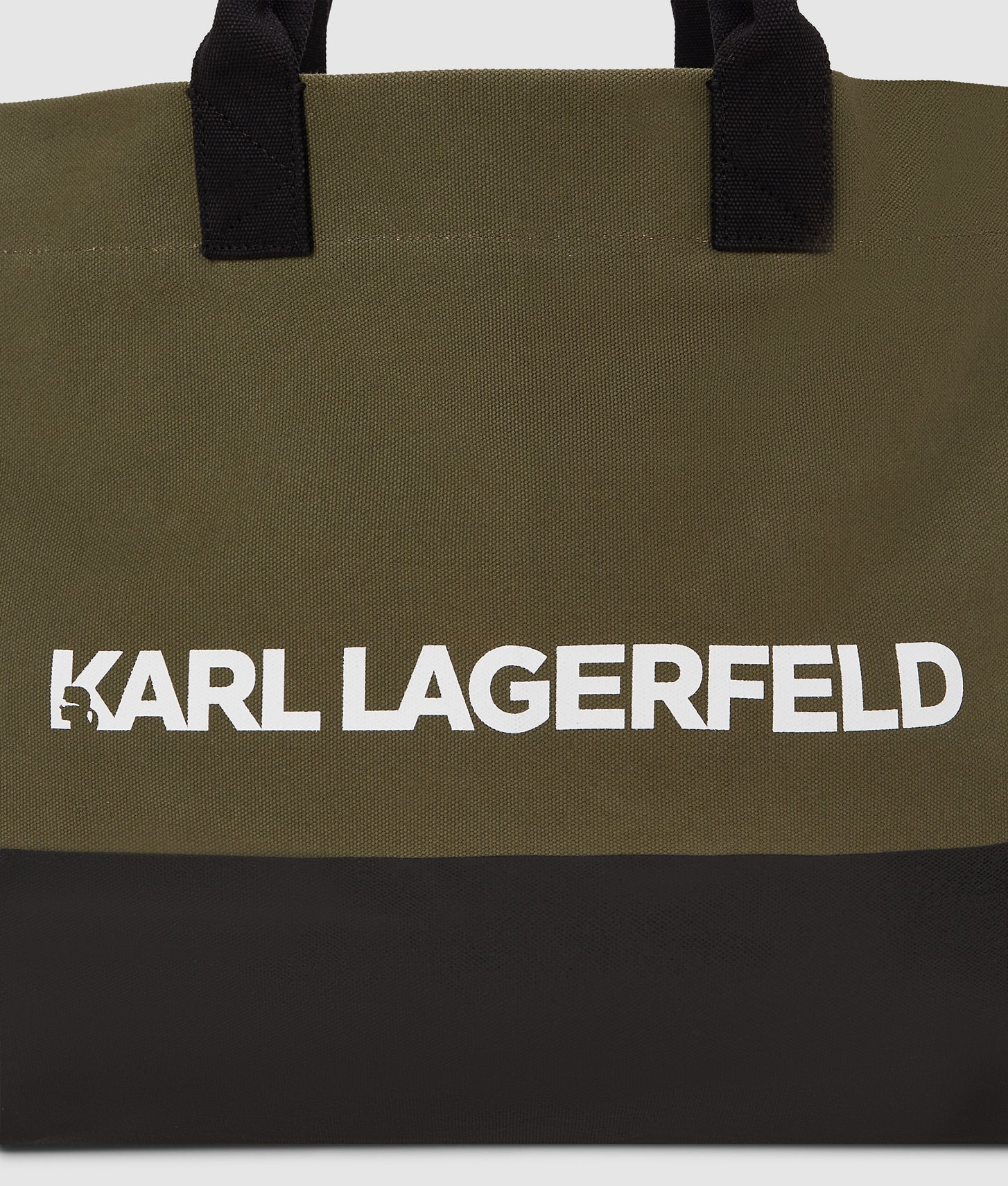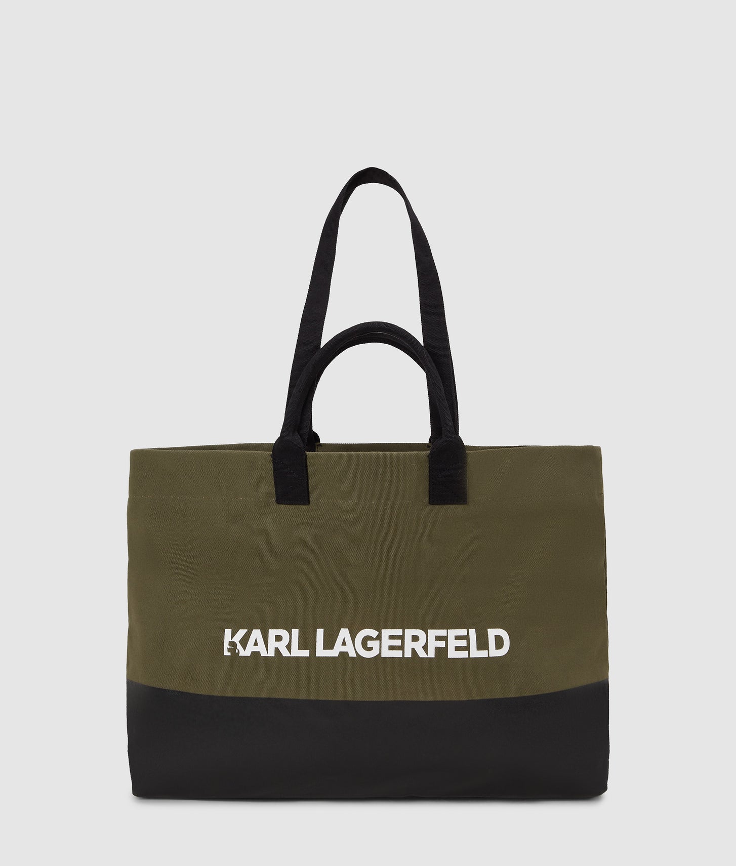 This cotton shopper offers a roomy silhouette, perfect for safely storing all daily essentials. Twin top handles and shoulder straps offer versatile carrying options, while the bold KARL LAGERFELD logo anchors the piece.