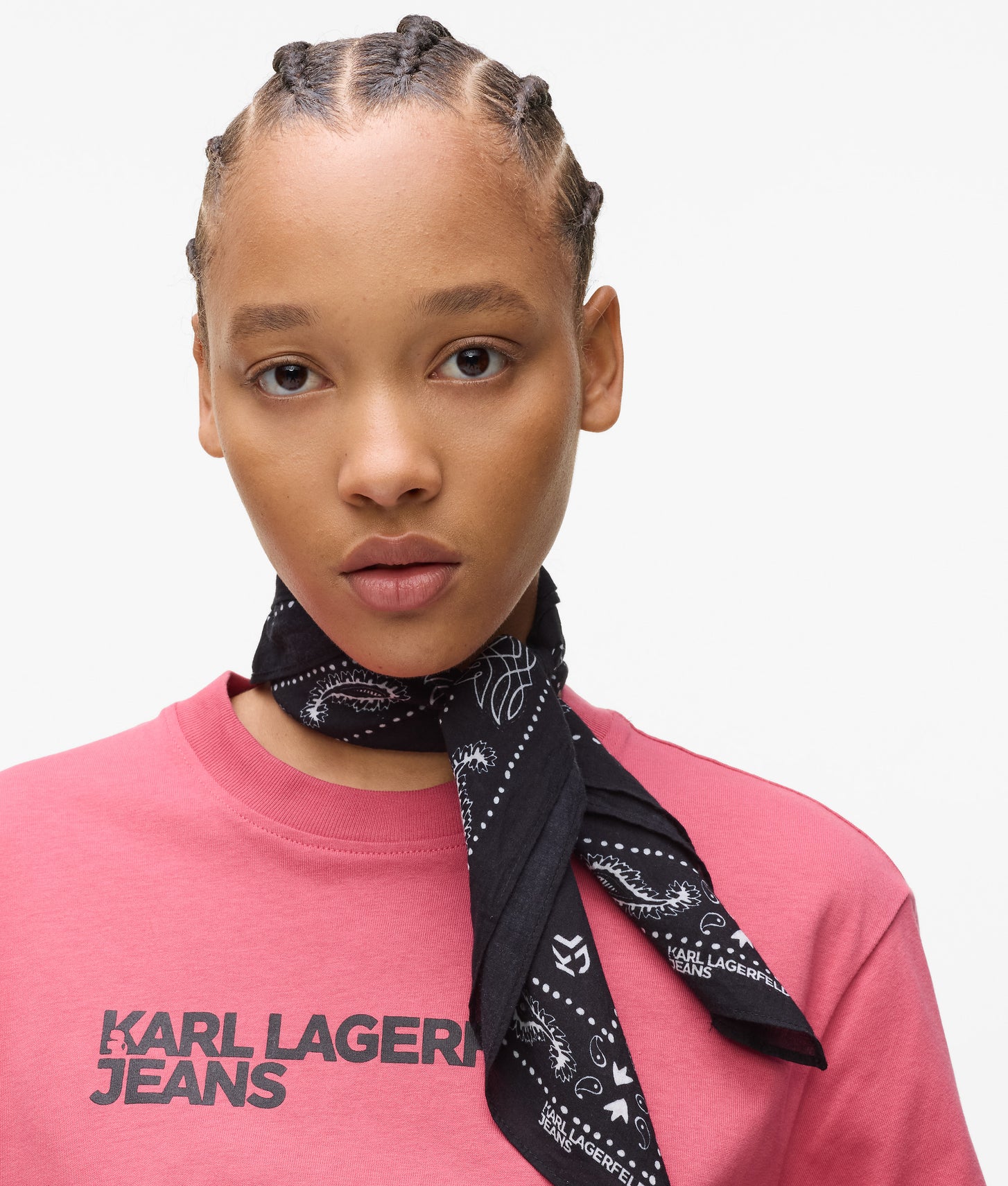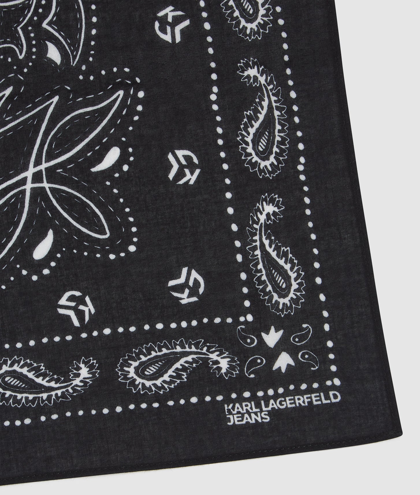 Showcasing Western-inspired artwork, this contemporary square-shaped bandana scarf offers multiple tying options to express your individual style. Subtly framed by the KARL LAGERFELD JEANS logo, it’s the perfect addition to any outfit.
