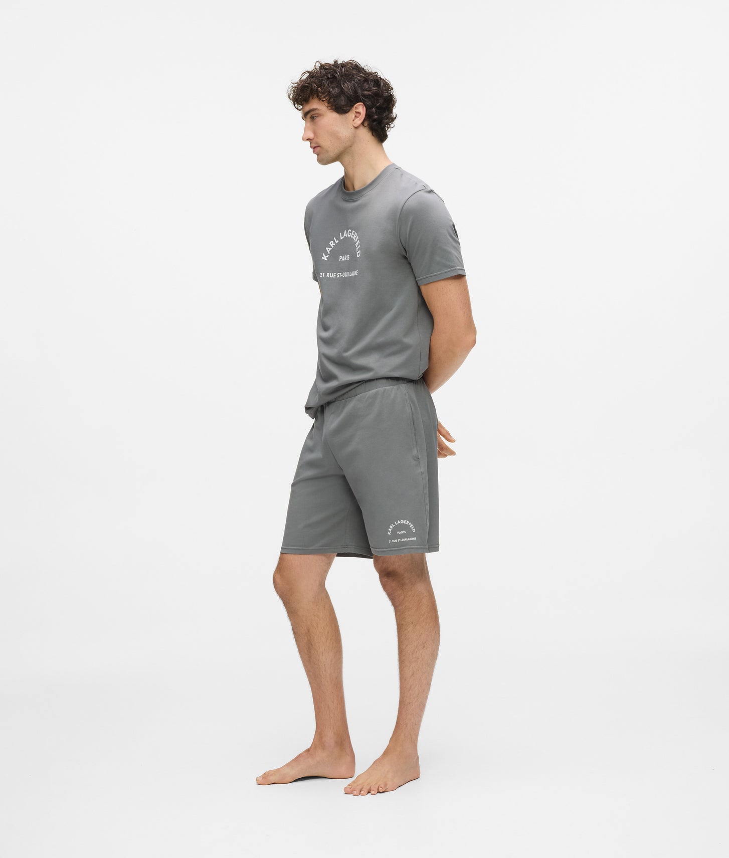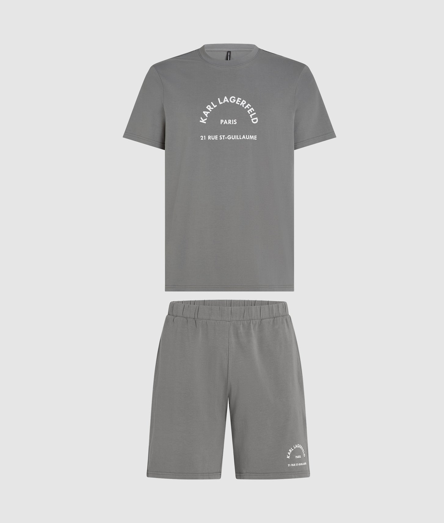 This two-piece pajama set features a soft crew-neck T-shirt and matching shorts, each detailed with Rue St-Guillaume artwork. Perfect for unwinding in comfort yet polished enough for stylish lounging.