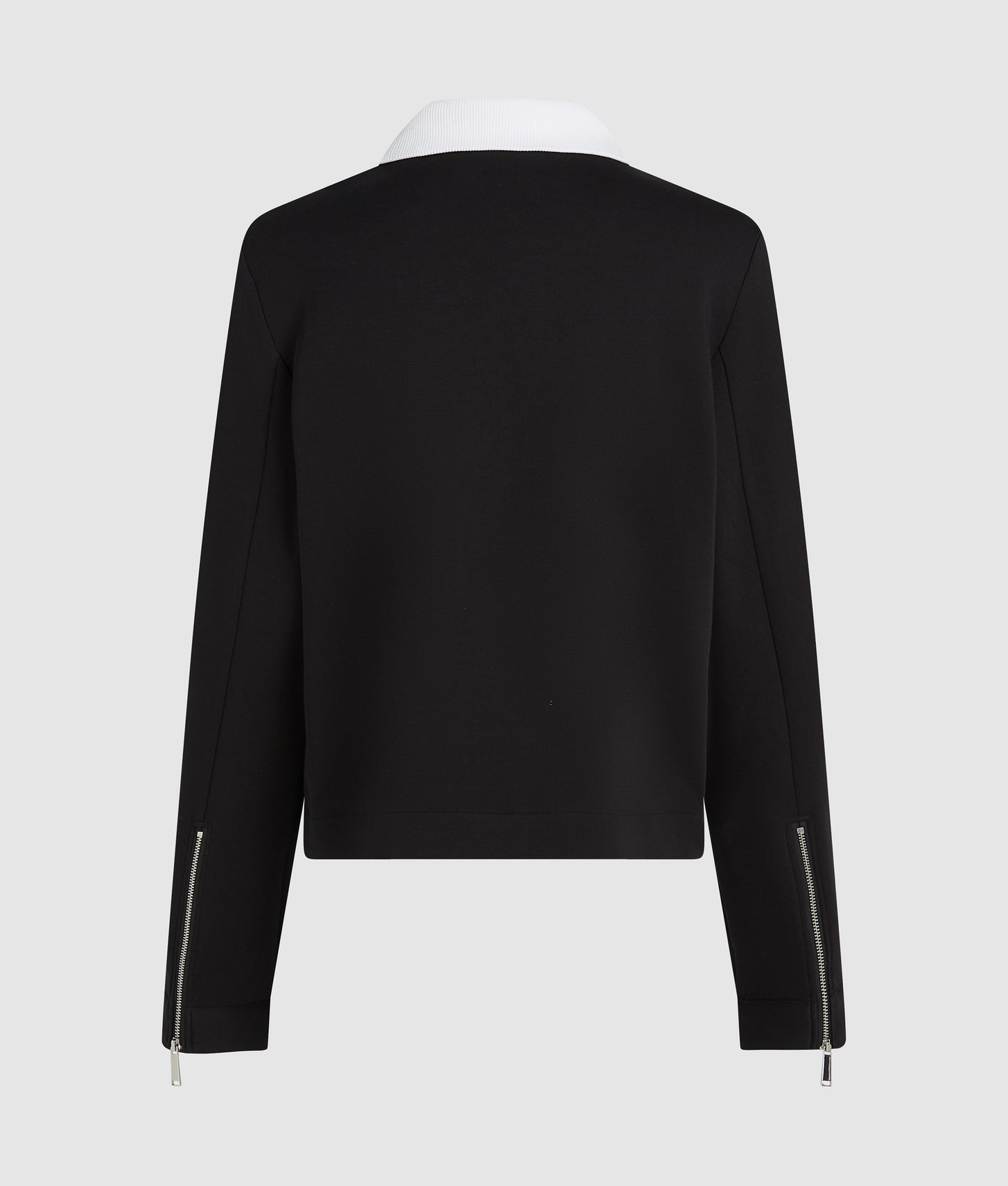 Crafted from soft jersey in a structured silhouette, this zip-up sweatshirt redefines casual style. A contrasting pointed collar and zipped cuffs add sharp detail, while the two-way closure makes it easy to layer over everyday looks.