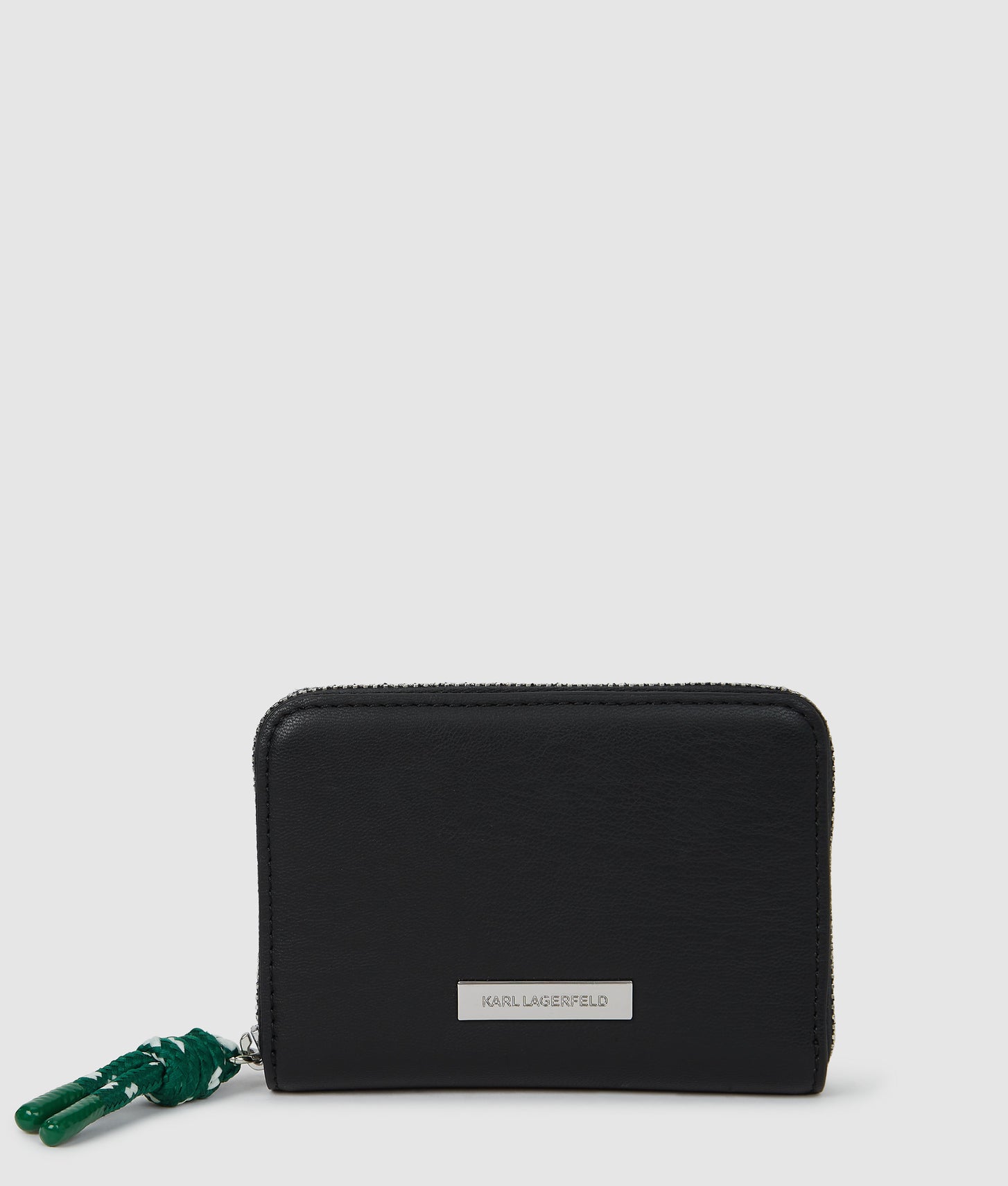This compact wallet fits perfectly in your bag or pocket. With multiple compartments, adorned with playful artwork and KARL LAGERFELD hardware, it offers easy organization and effortless style.