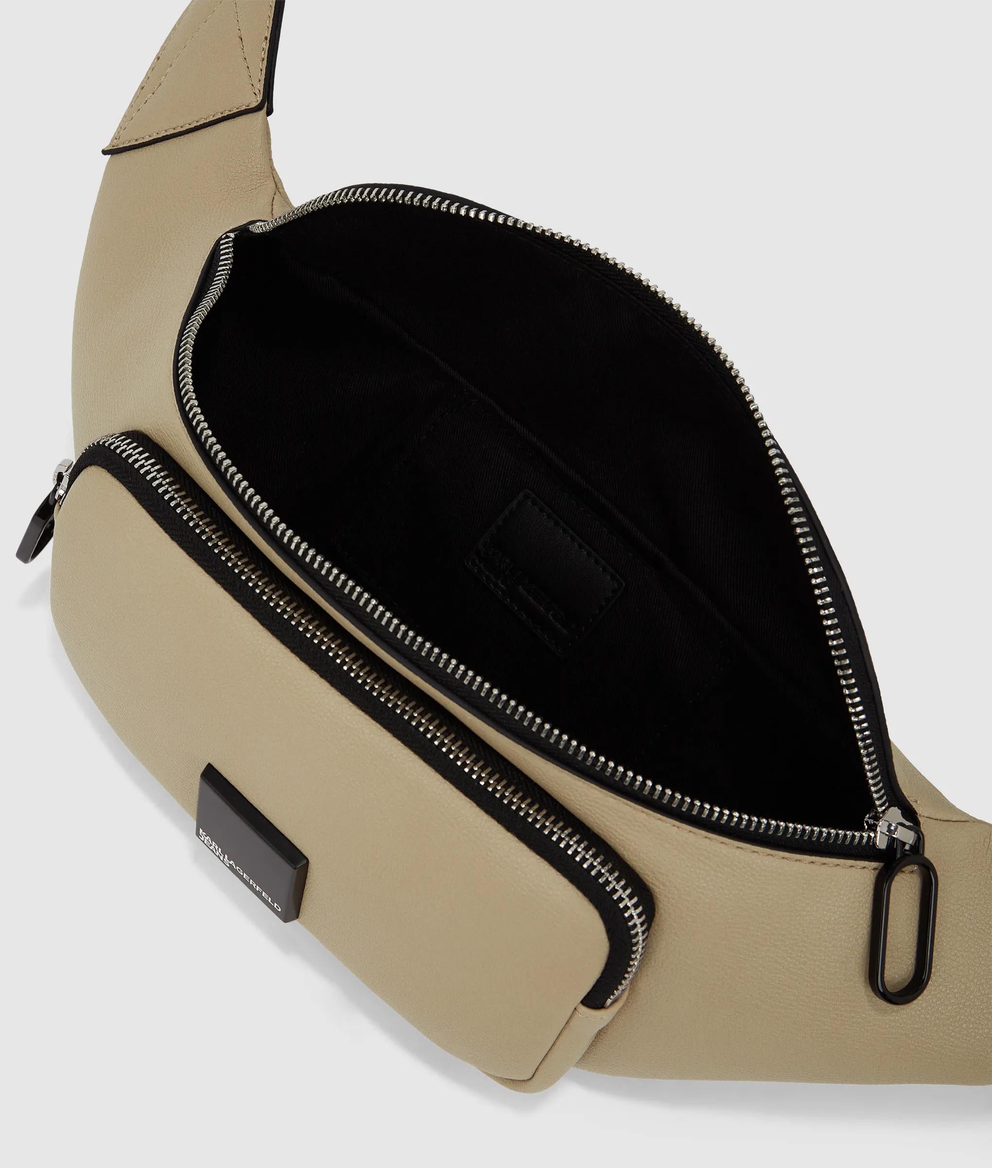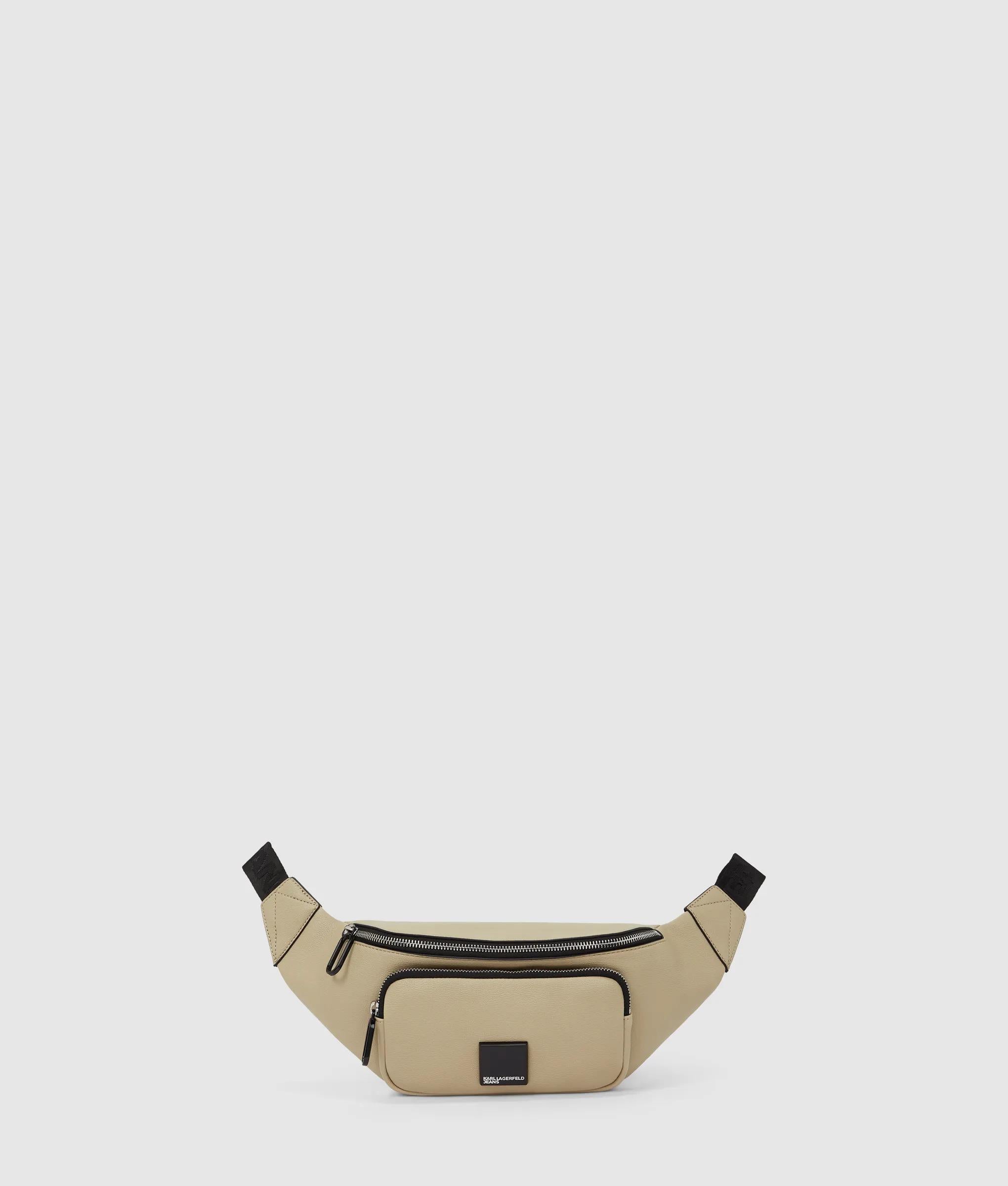 Effortless style meets functionality in this textured belt bag, anchored by a bold KARL LAGERFELD JEANS metal patch logo. Featuring secure zipped compartments and an adjustable strap to wear your way.