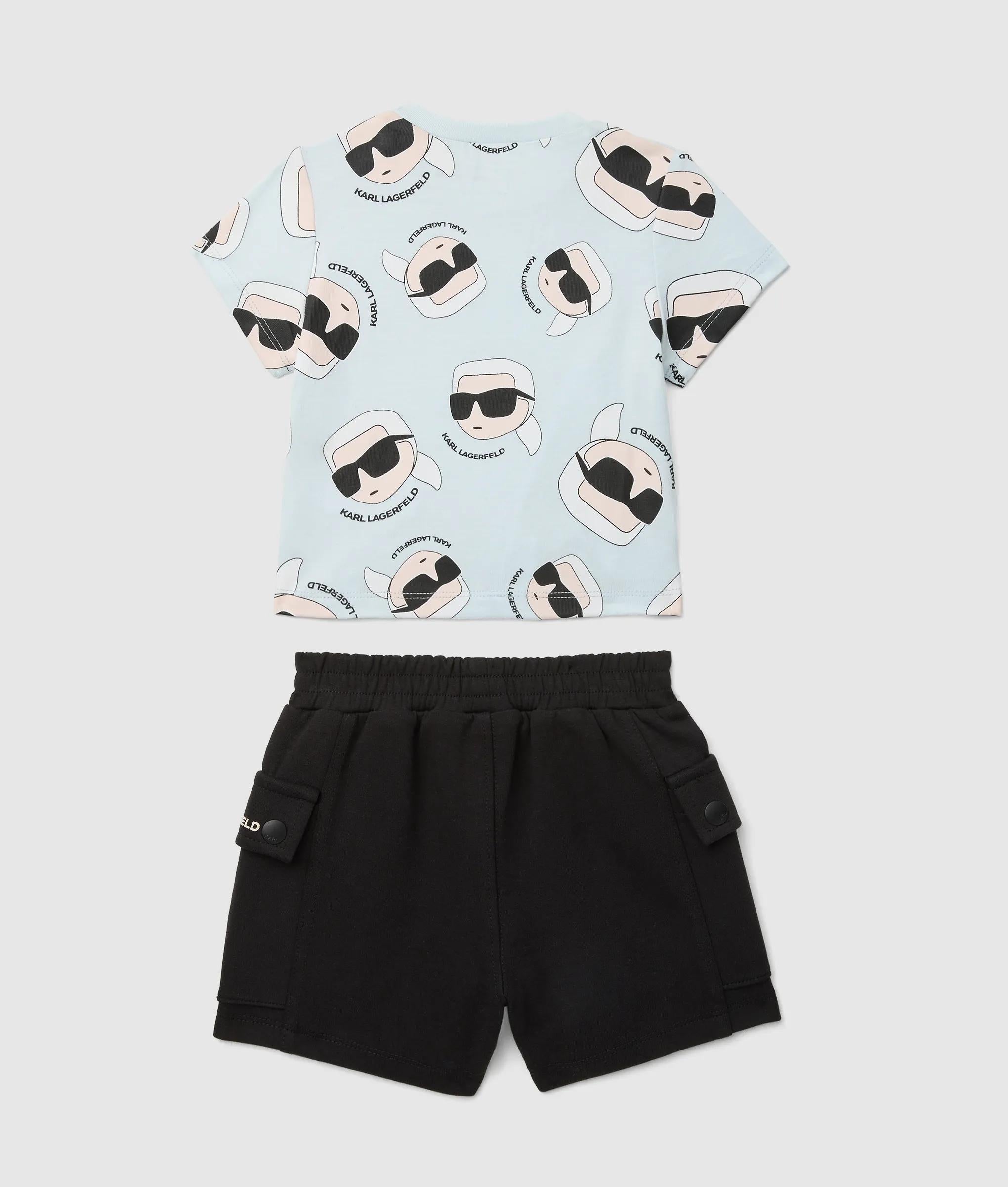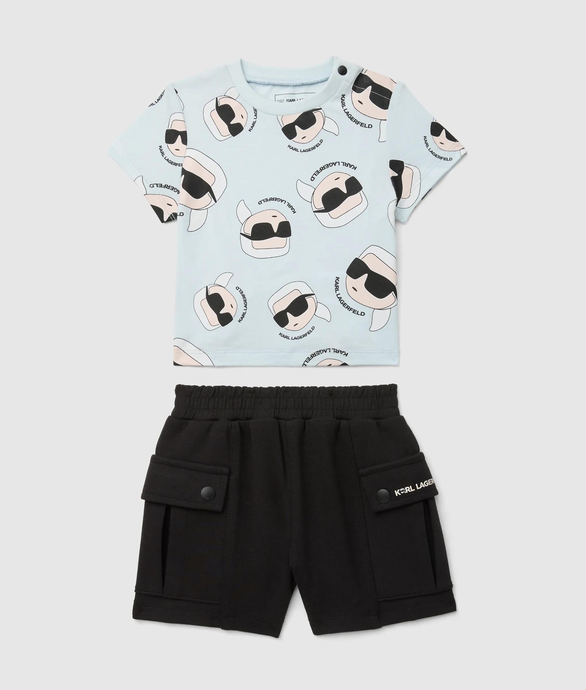 This two-piece set includes a soft T-shirt with playful Ikon artwork, bringing bold character to summer wardrobes. Matching cargo shorts feature practical pockets and an easy fit for all-day comfort.