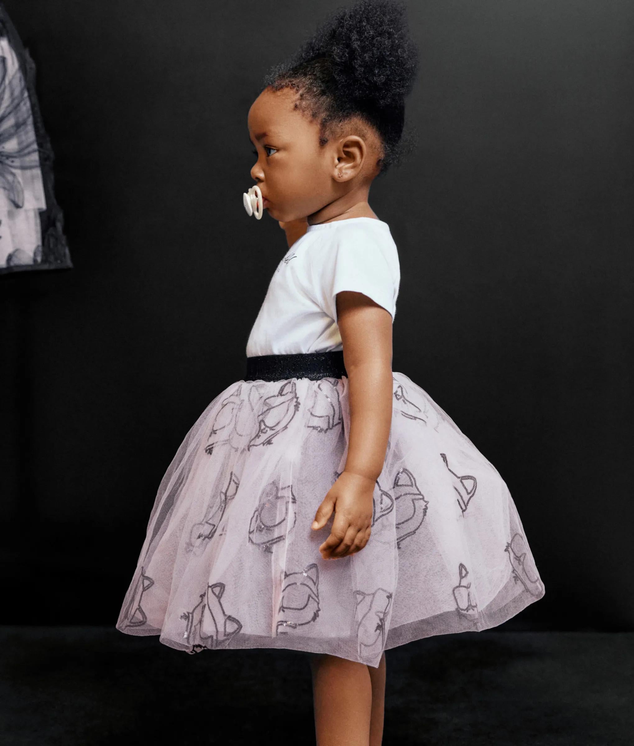 This two-piece set features a layered mesh skirt and T-shirt enriched with metallic French Riviera artwork. Soft textures, easy fastenings and an elastic waistband ensure comfort for playful days.