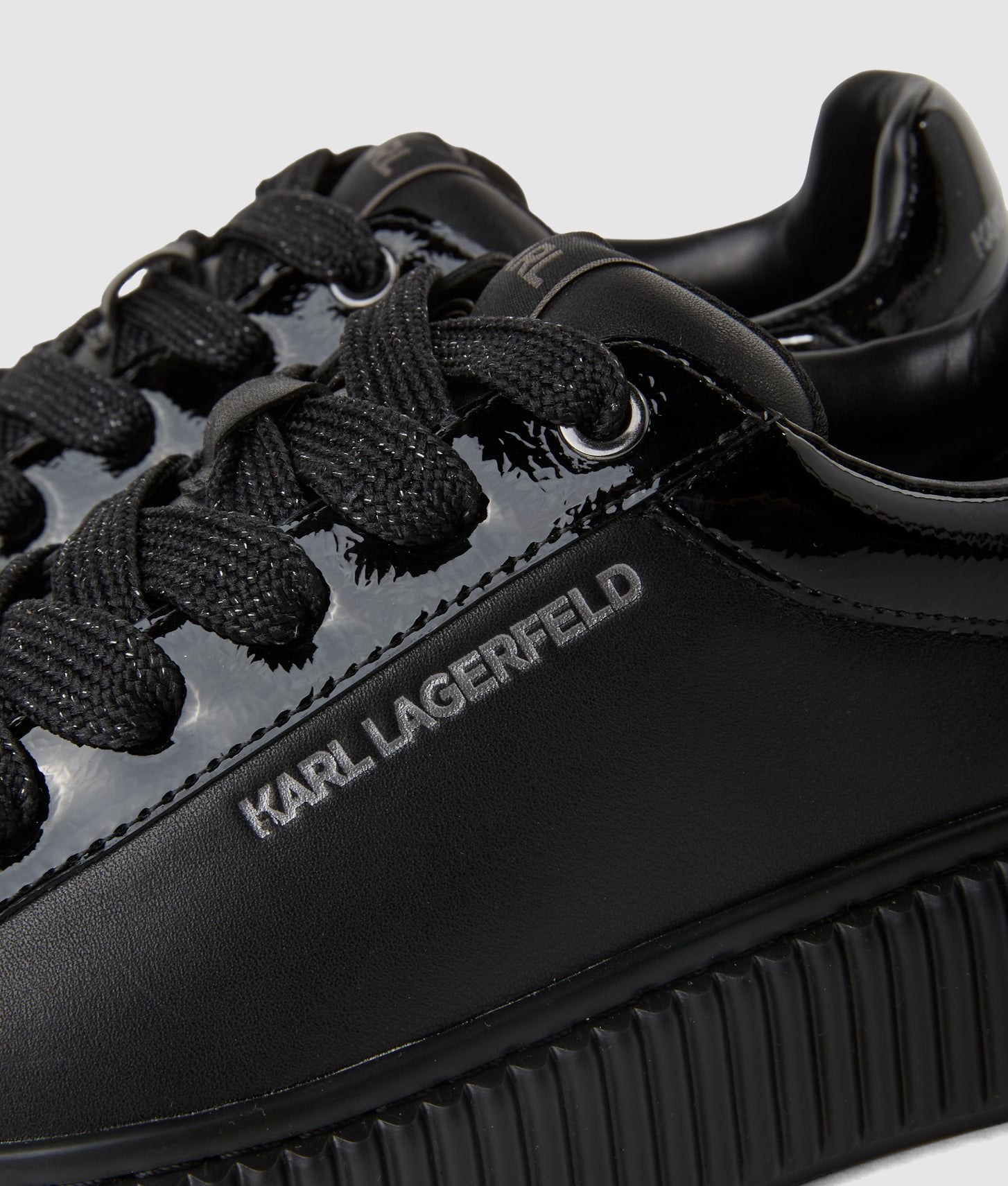 These lace-up sneakers effortlessly combine style and versatility. Crafted from sleek leather with a subtle, metallic KARL LAGERFELD logo embellishment, they pair perfectly with jeans or add edge to smart pants.
