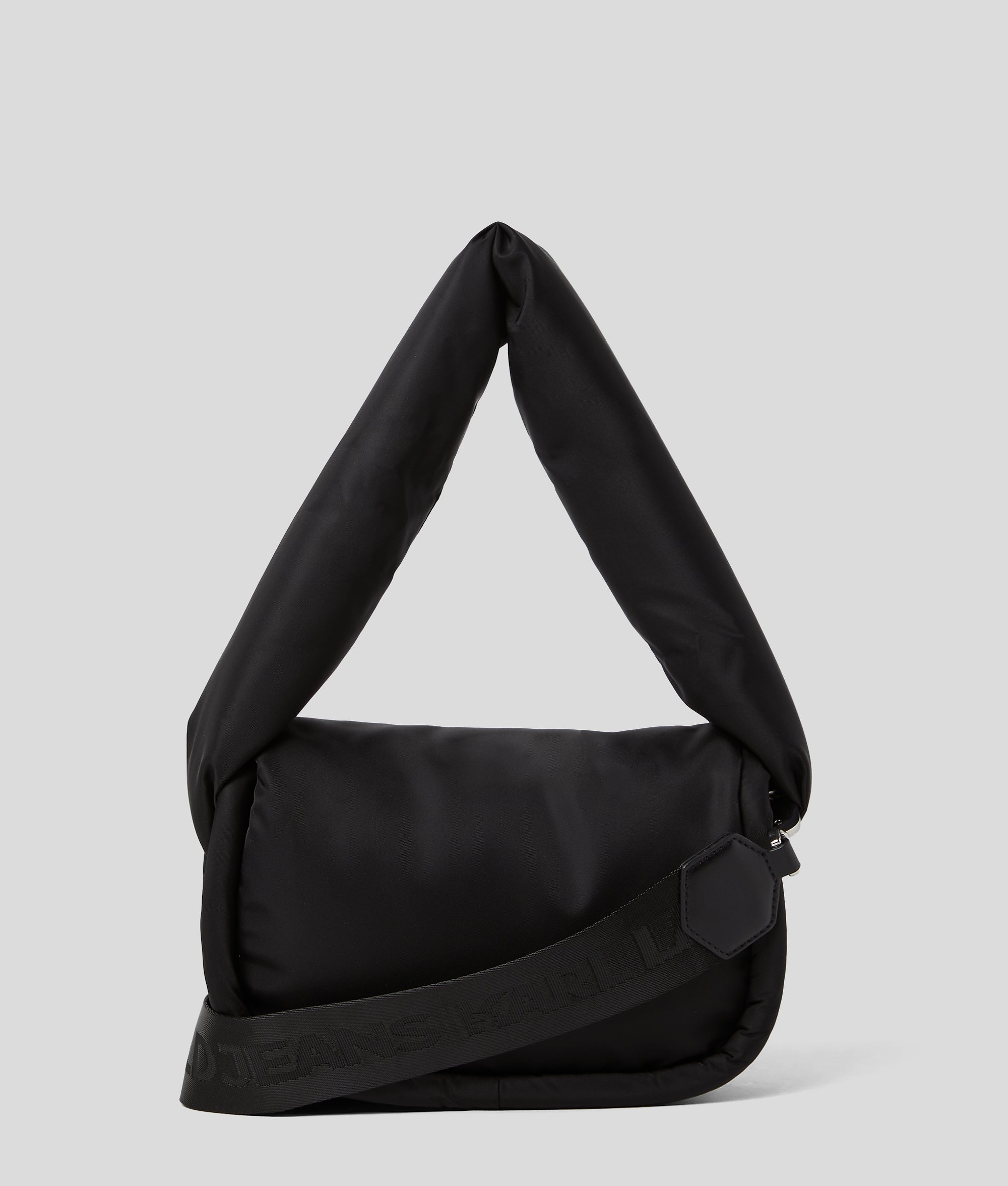 Playfully relaxed and undeniably cool, this shoulder bag makes a statement with its voluminous, padded recycled nylon construction. A padded top handle and long-length branded webbing strap offer interchangeable styling options so you can wear it your way.