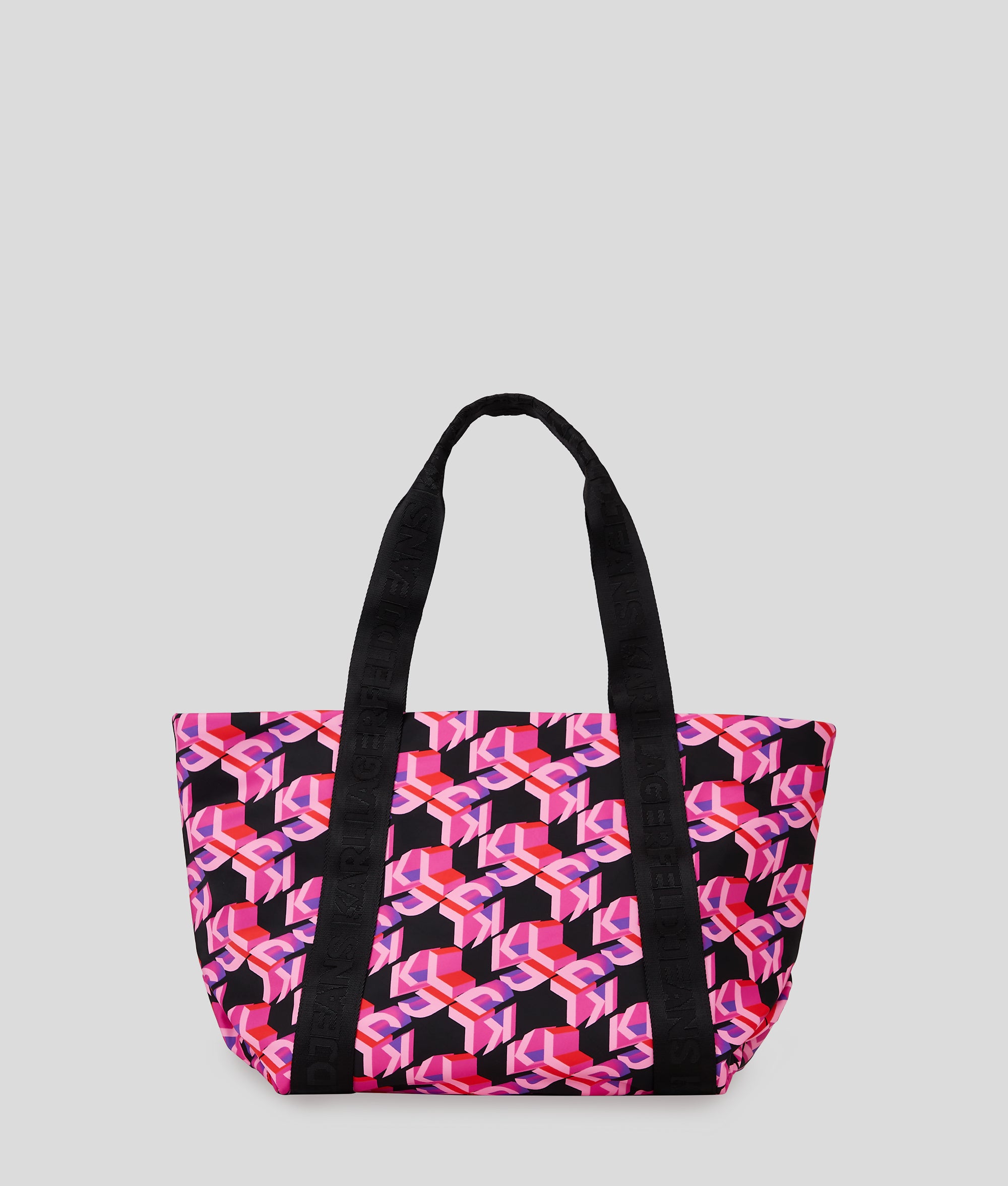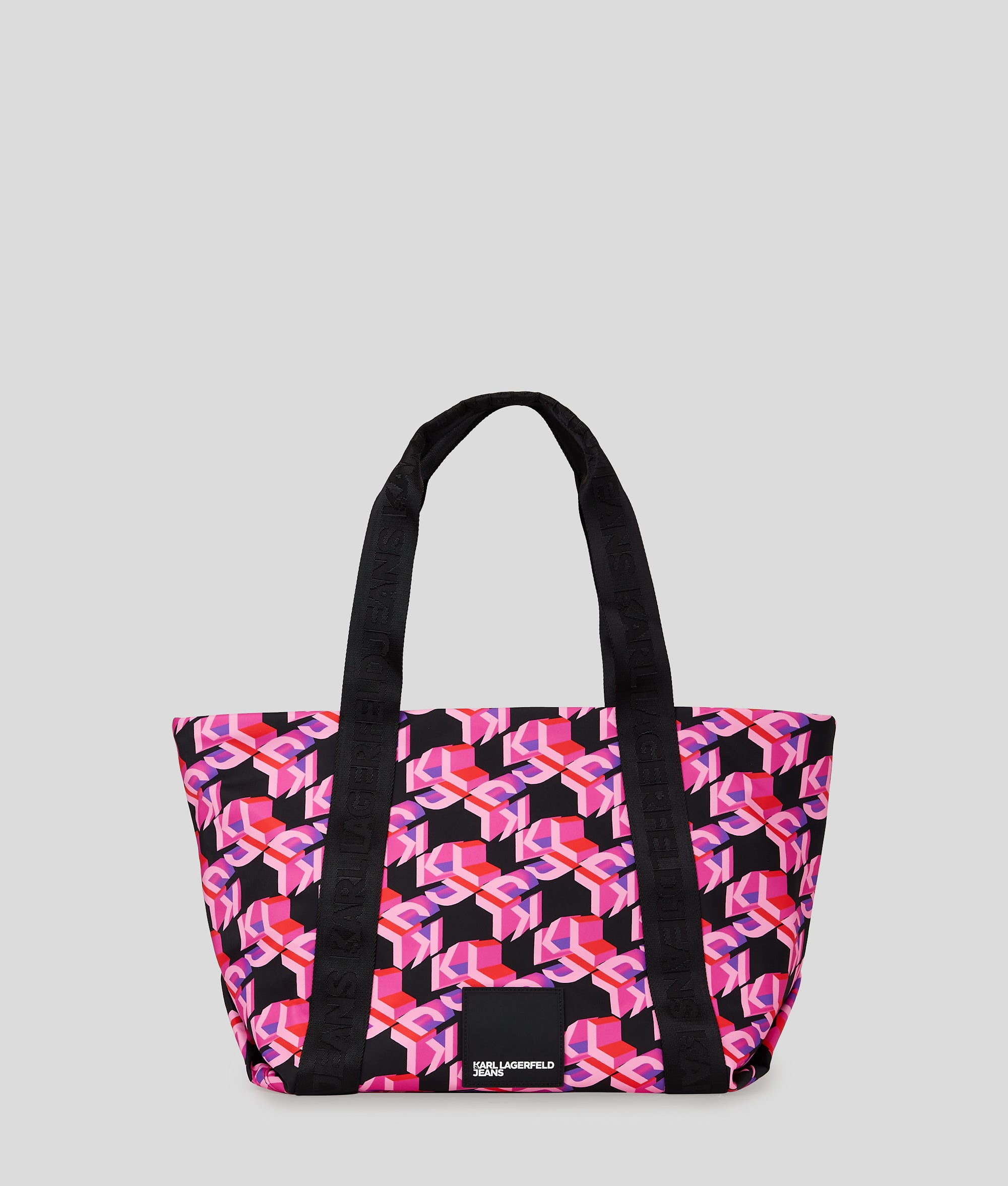 Ever-versatile and unapologetically bold, this classic tote bag is adorned in the iconic KARL LAGERFELD JEANS monogram. Secure zip-top and branded handles merge function with fashion.