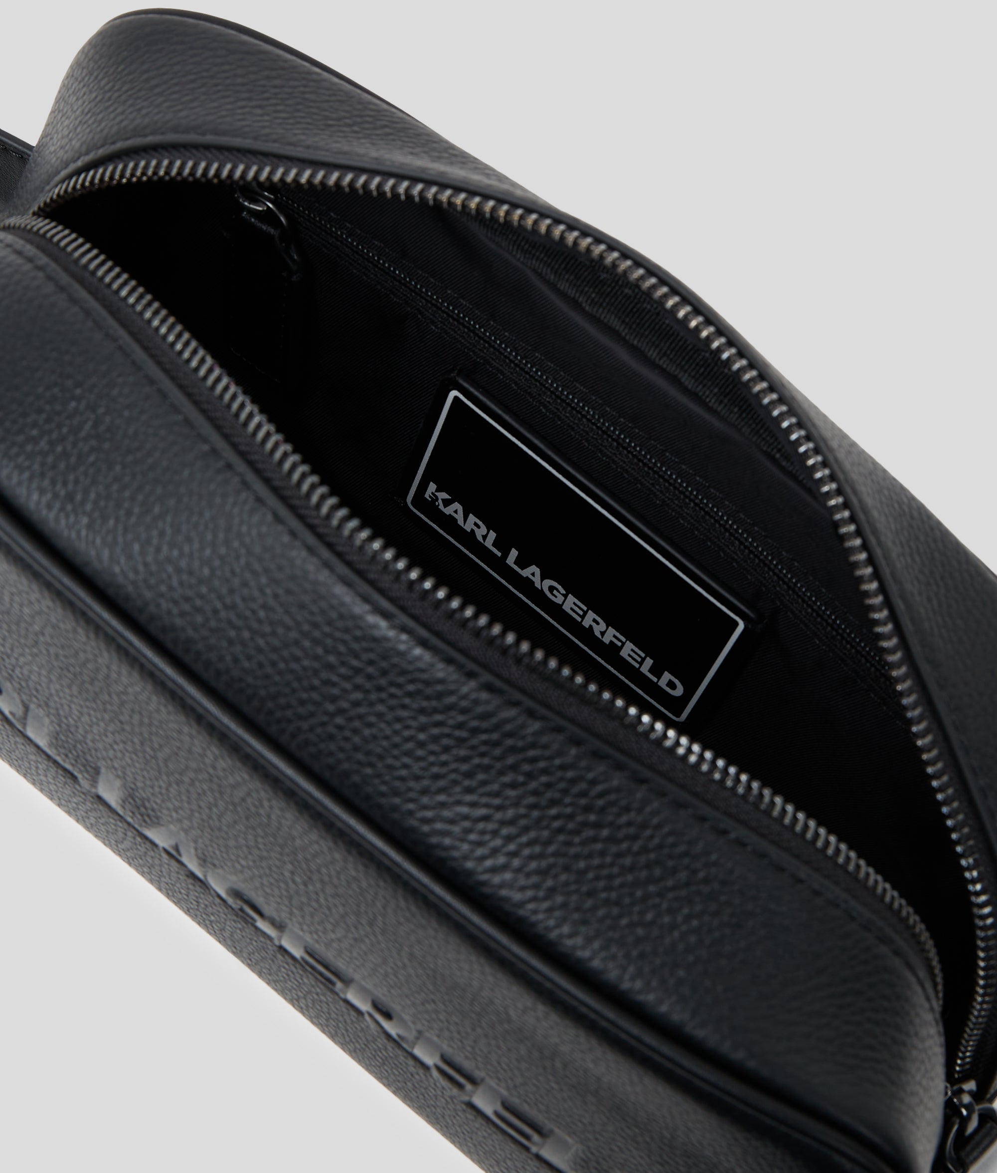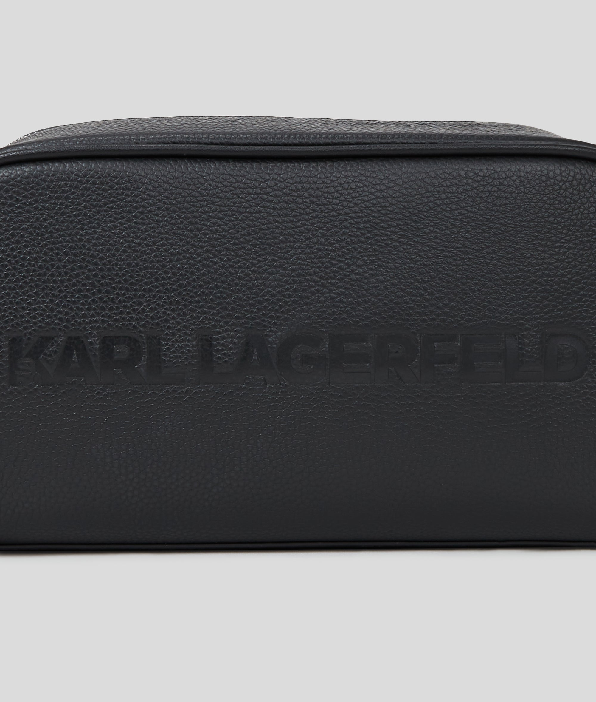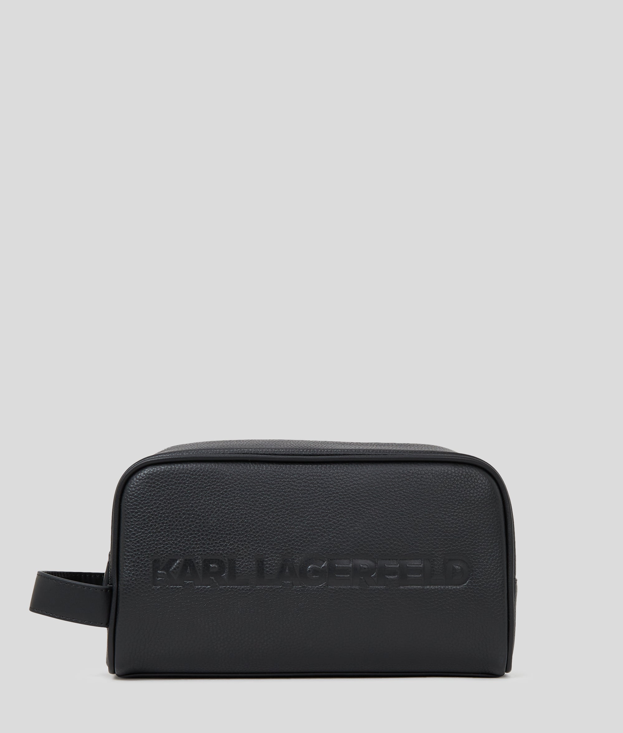 Complete with a zip-top closure and a convenient side grab handle, this wash bag features an embossed KARL LAGERFELD logo on the front, adding a touch of luxury to your travel essentials.
