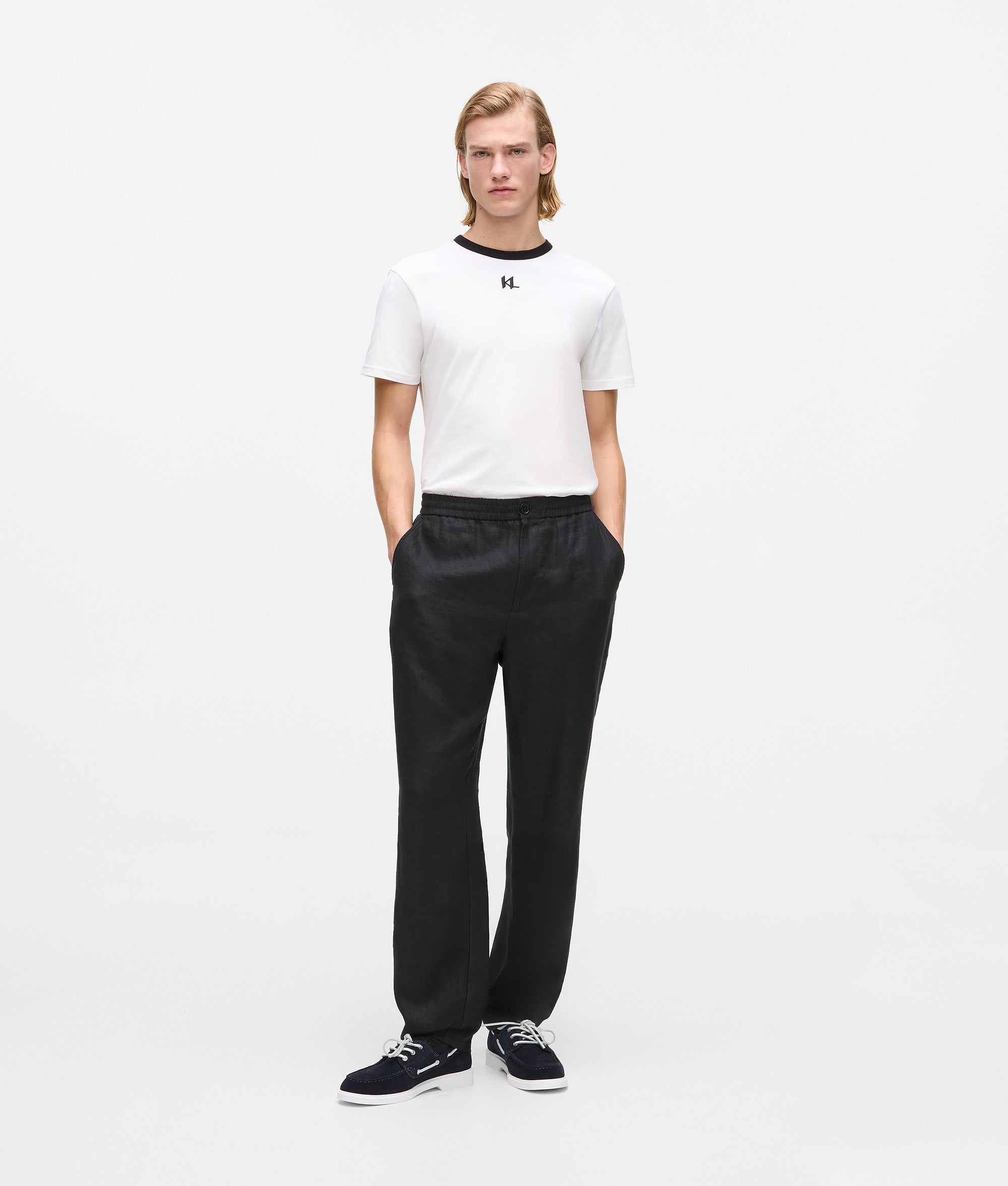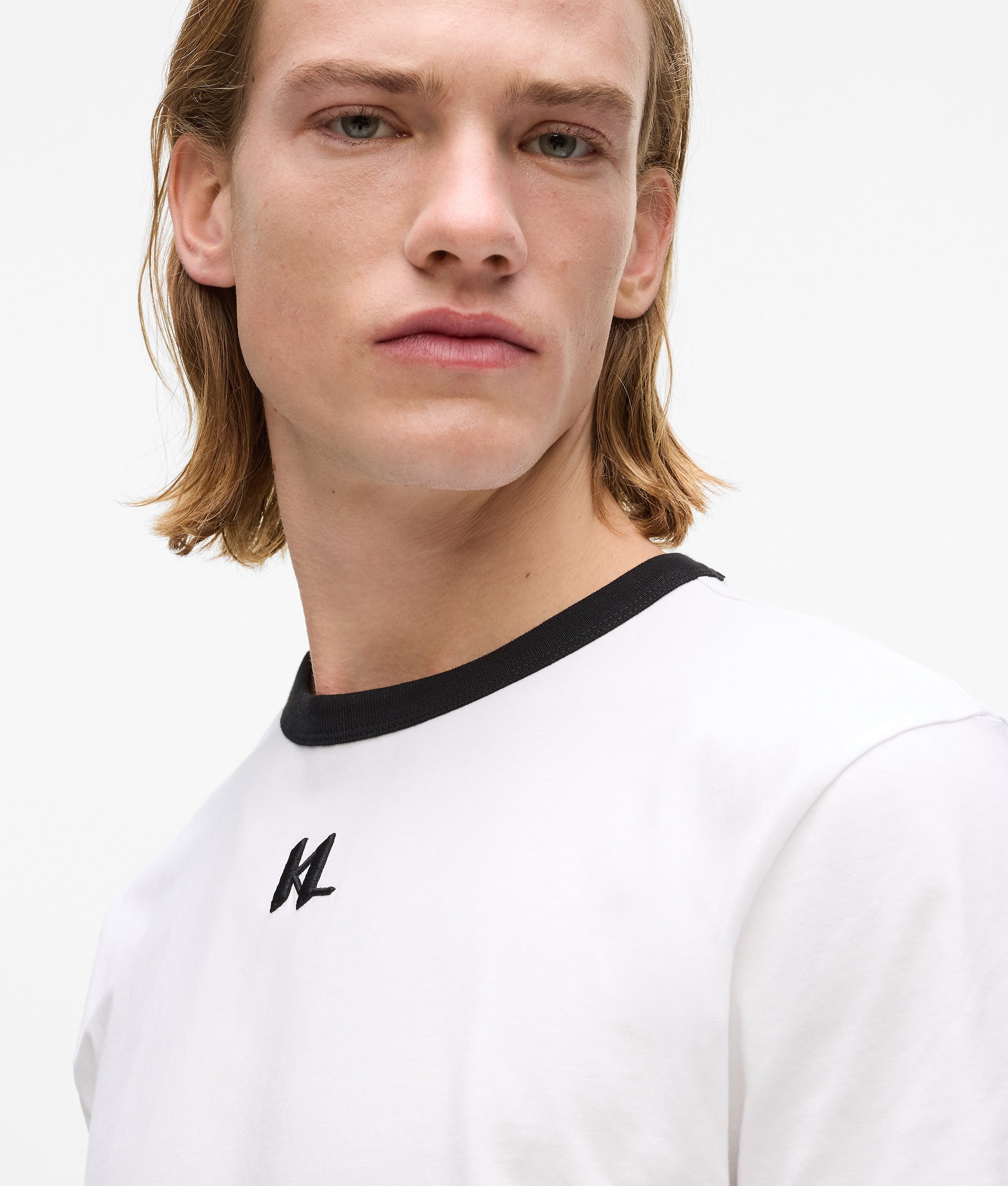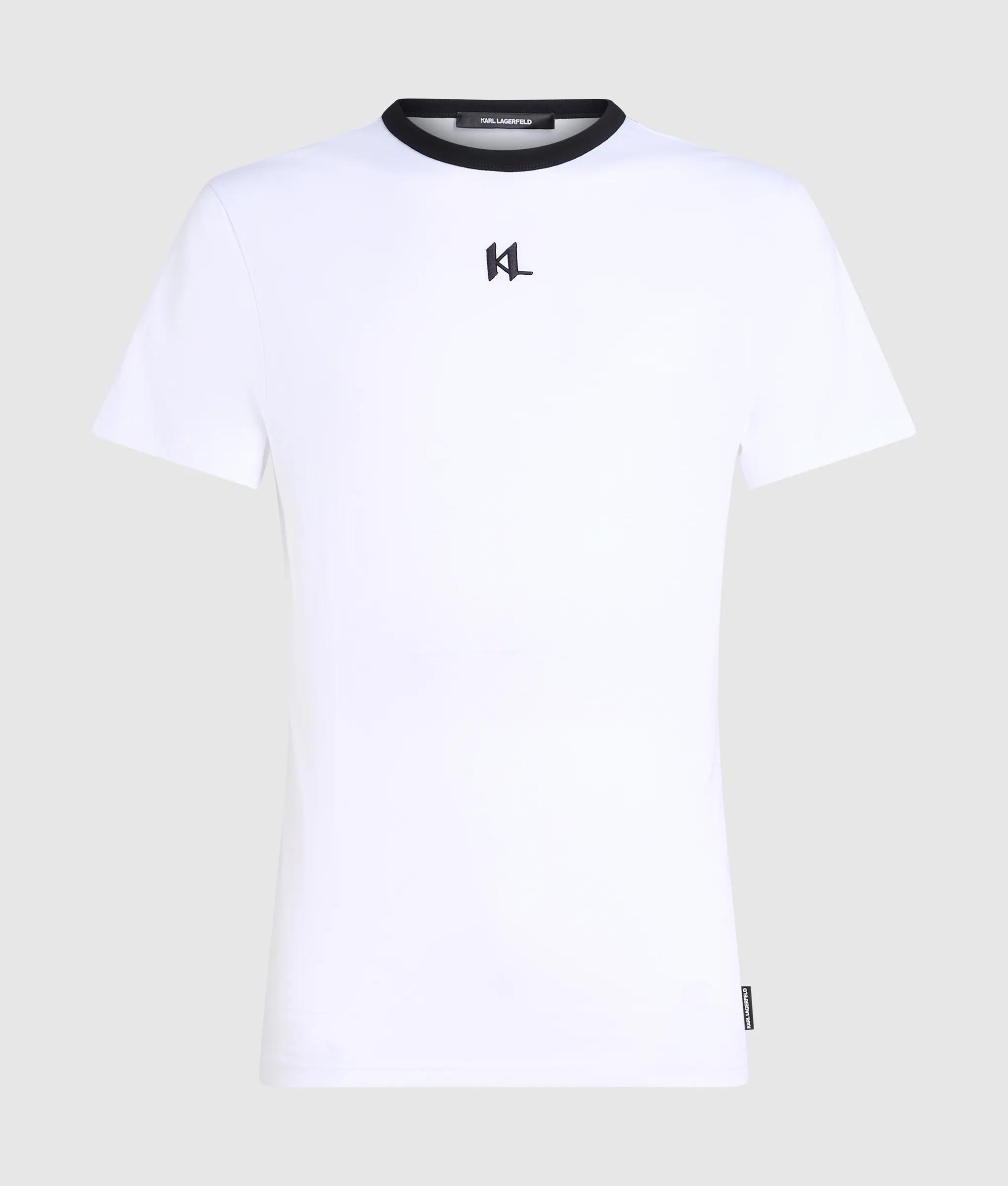A seamless blend of comfort and style defines this fitted T-shirt. Featuring a contrasting ribbed crew neck and adorned with KARL Monogram embroidery, it effortlessly merges casual flair with a polished look.