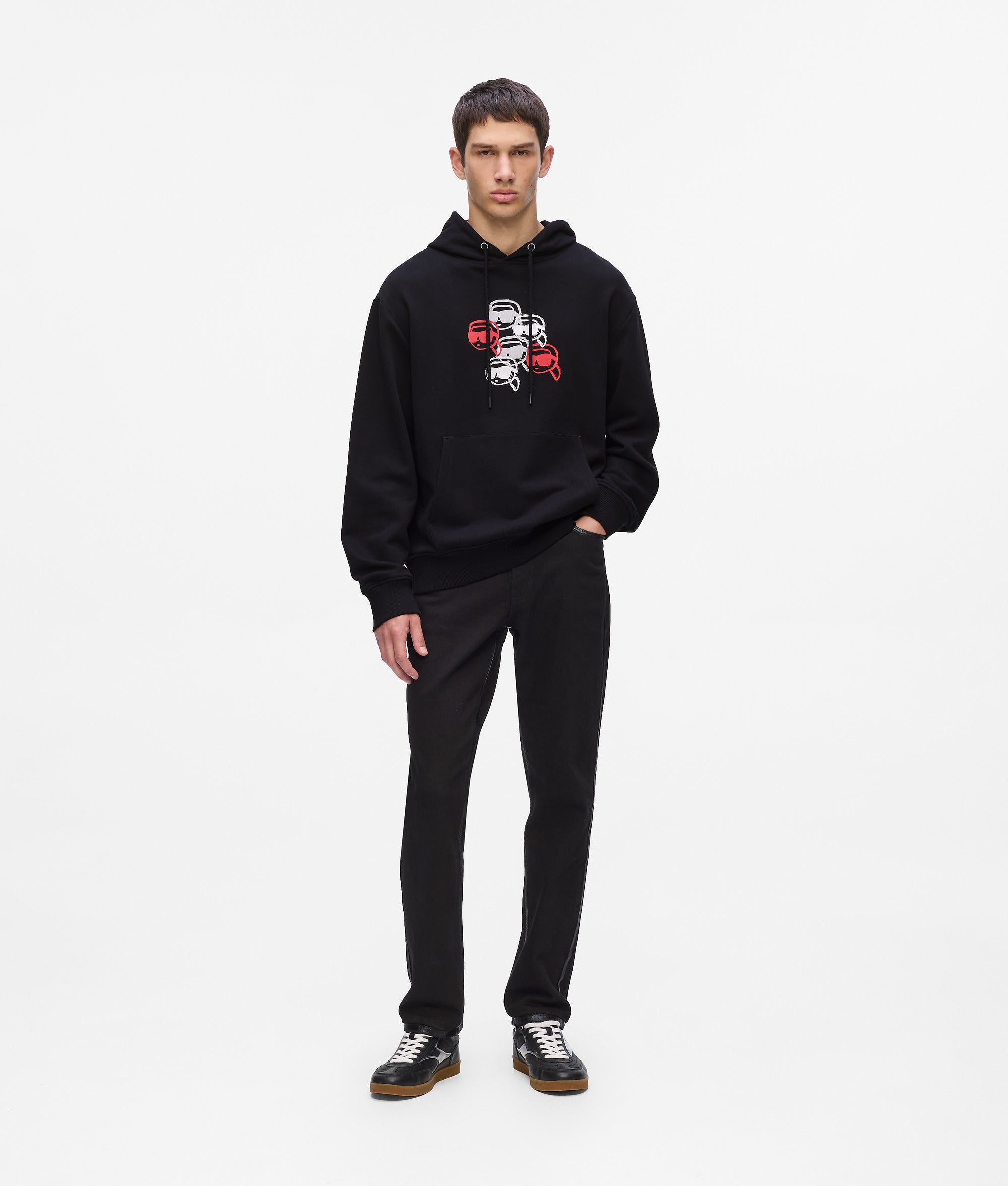 This hoodie is a bold statement piece featuring a striking Ikon Karl print with embroidery details. The hood with drawcords and ribbed cuffs ensure a comfortable fit, while the kangaroo pocket offers enhanced practicality.