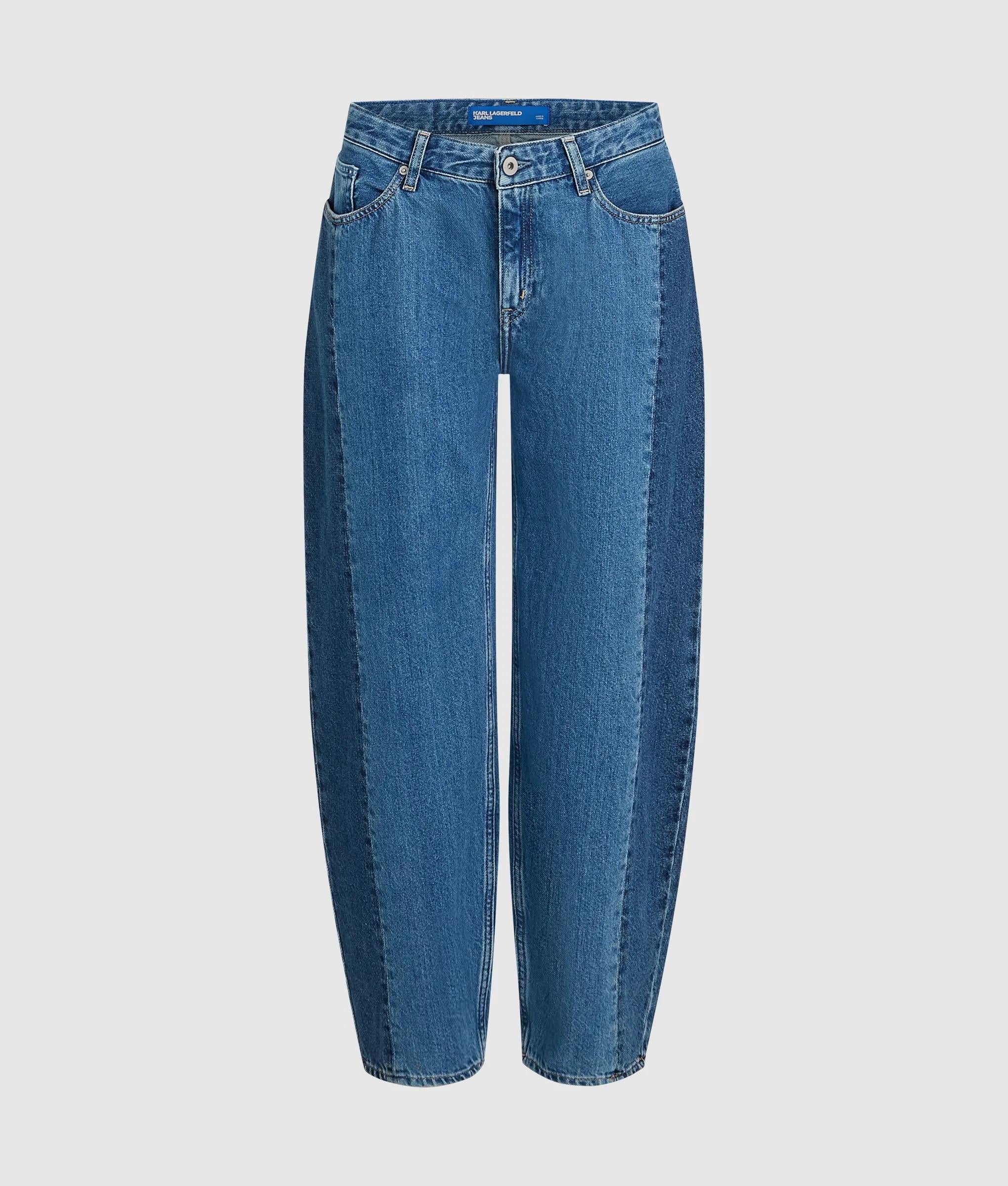 Blocked denim mid-rise barrel jeans