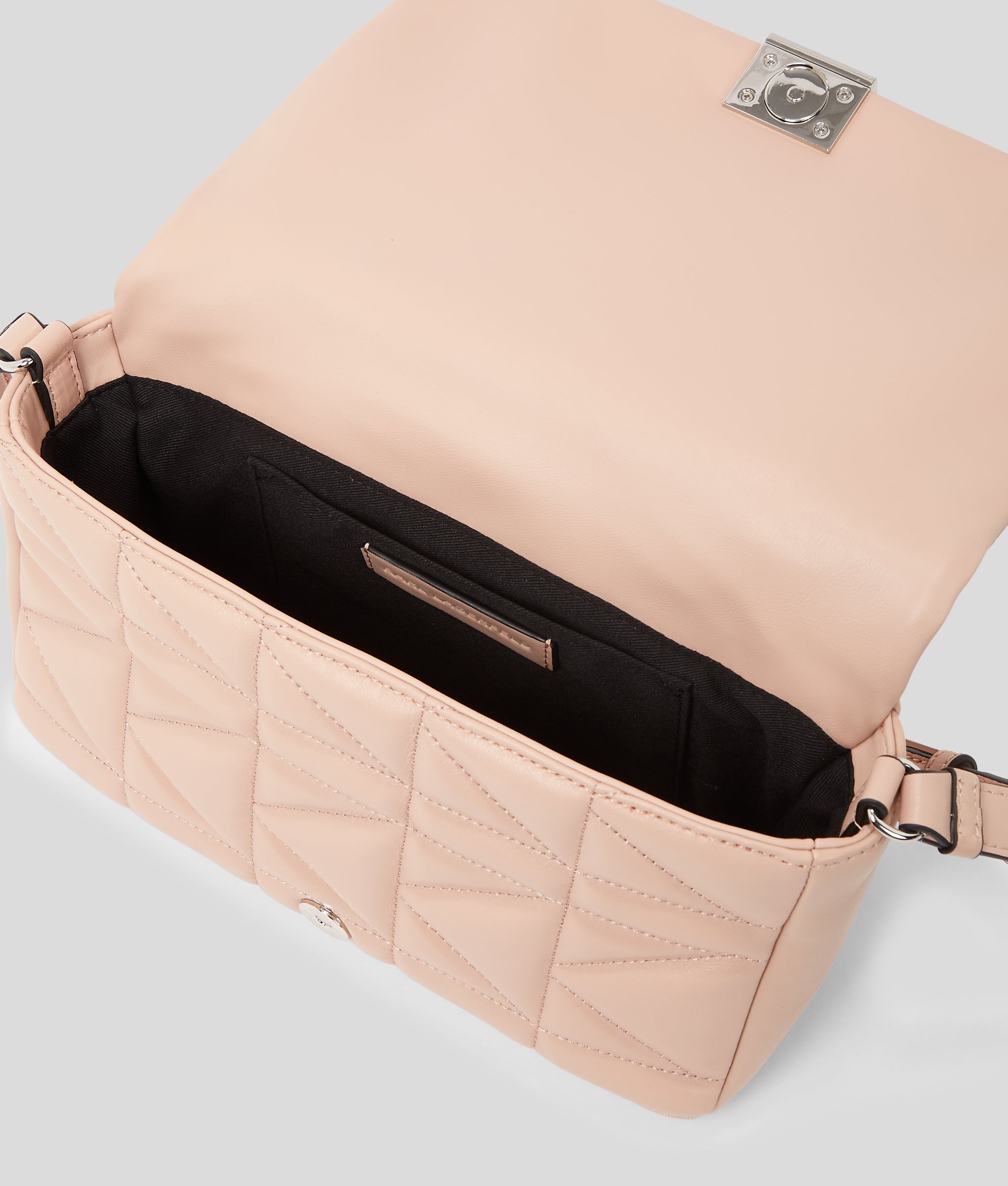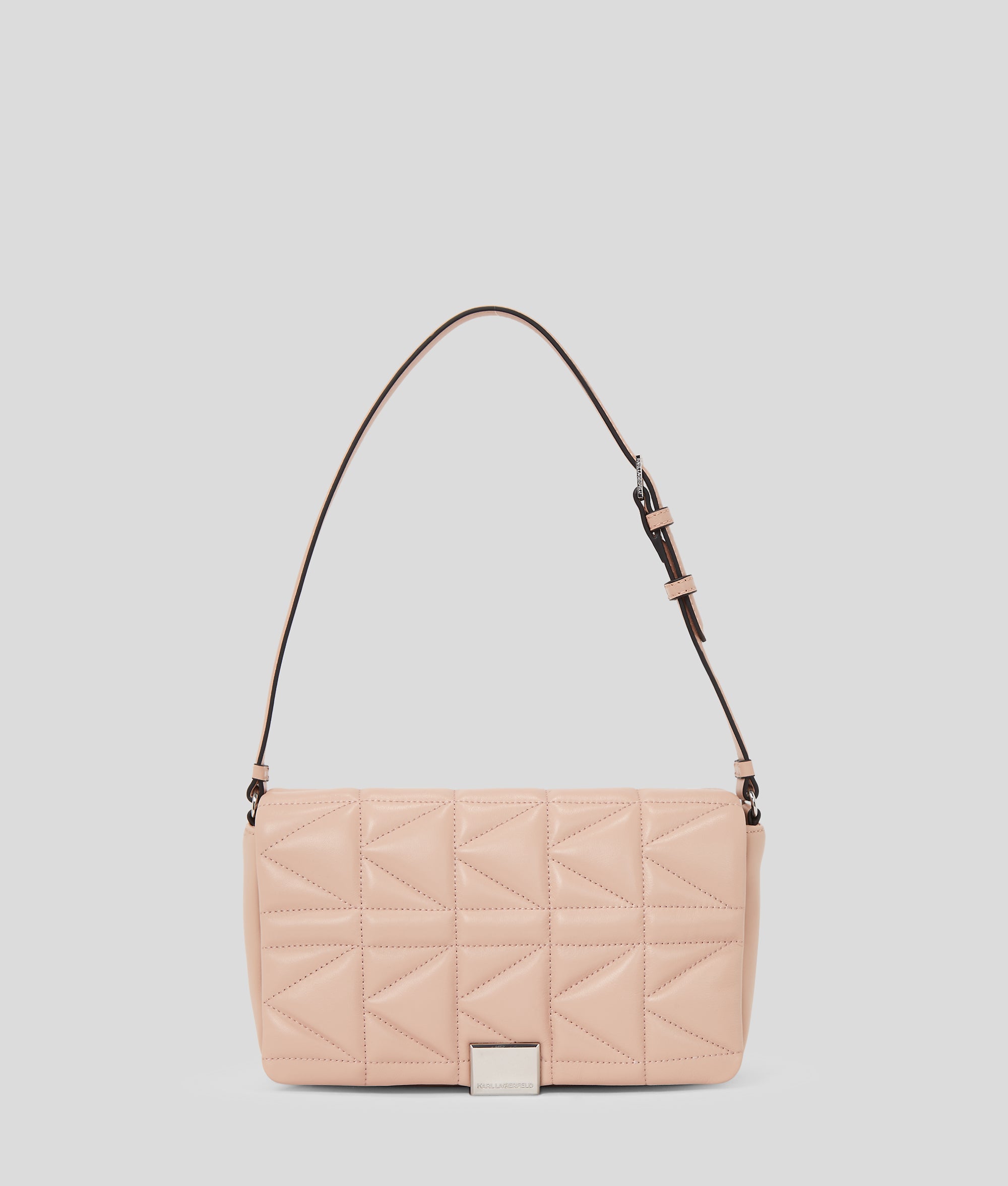Soft, pillowy quilted charm meets sleek sophistication in this K/Kuilt shoulder bag. Featuring a secure push-lock closure and adjustable shoulder strap, the medium-sized silhouette is finished with a chic KARL LAGERFELD metal plaque at the front.
