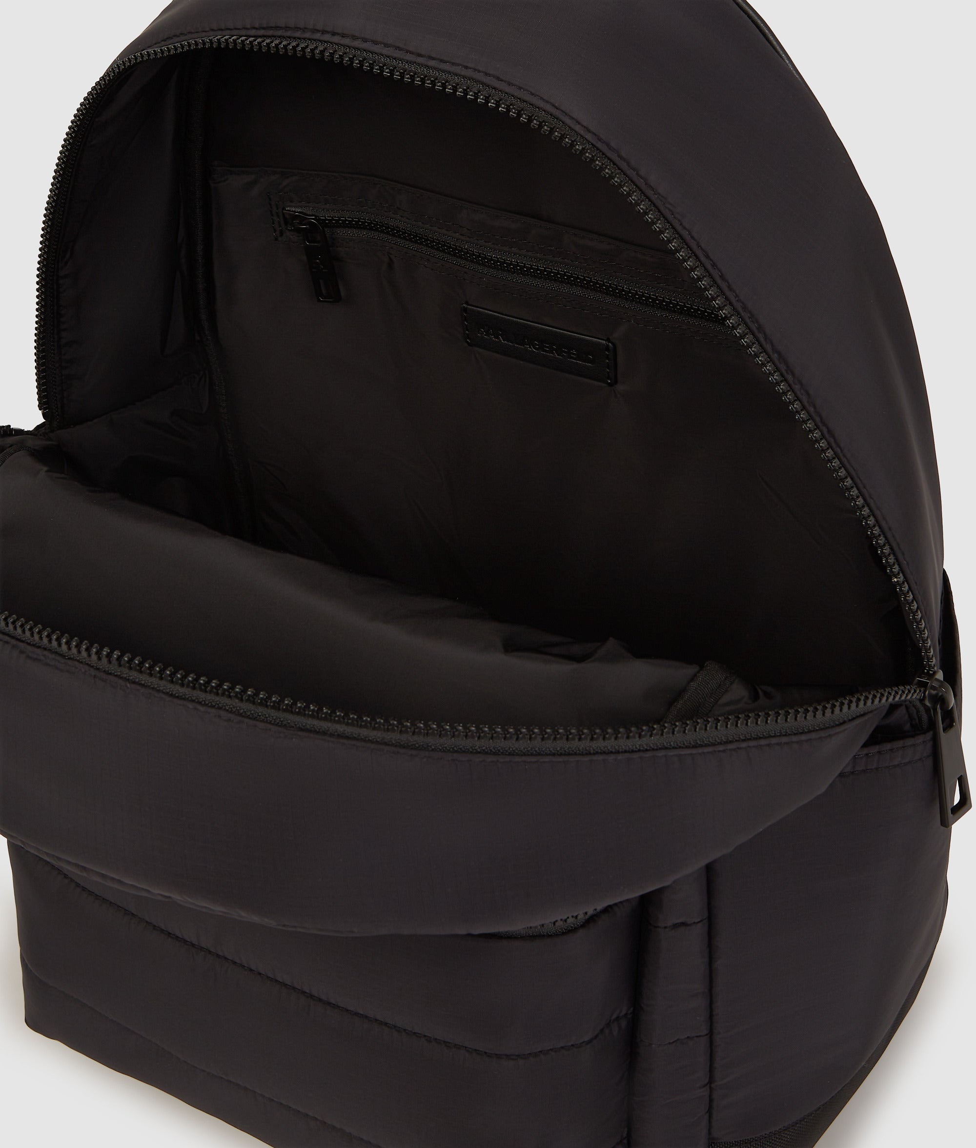 Quilted texture cushions your essentials in this padded backpack. Its structured shape offers sleek organization with a zip-top and laptop compartment.