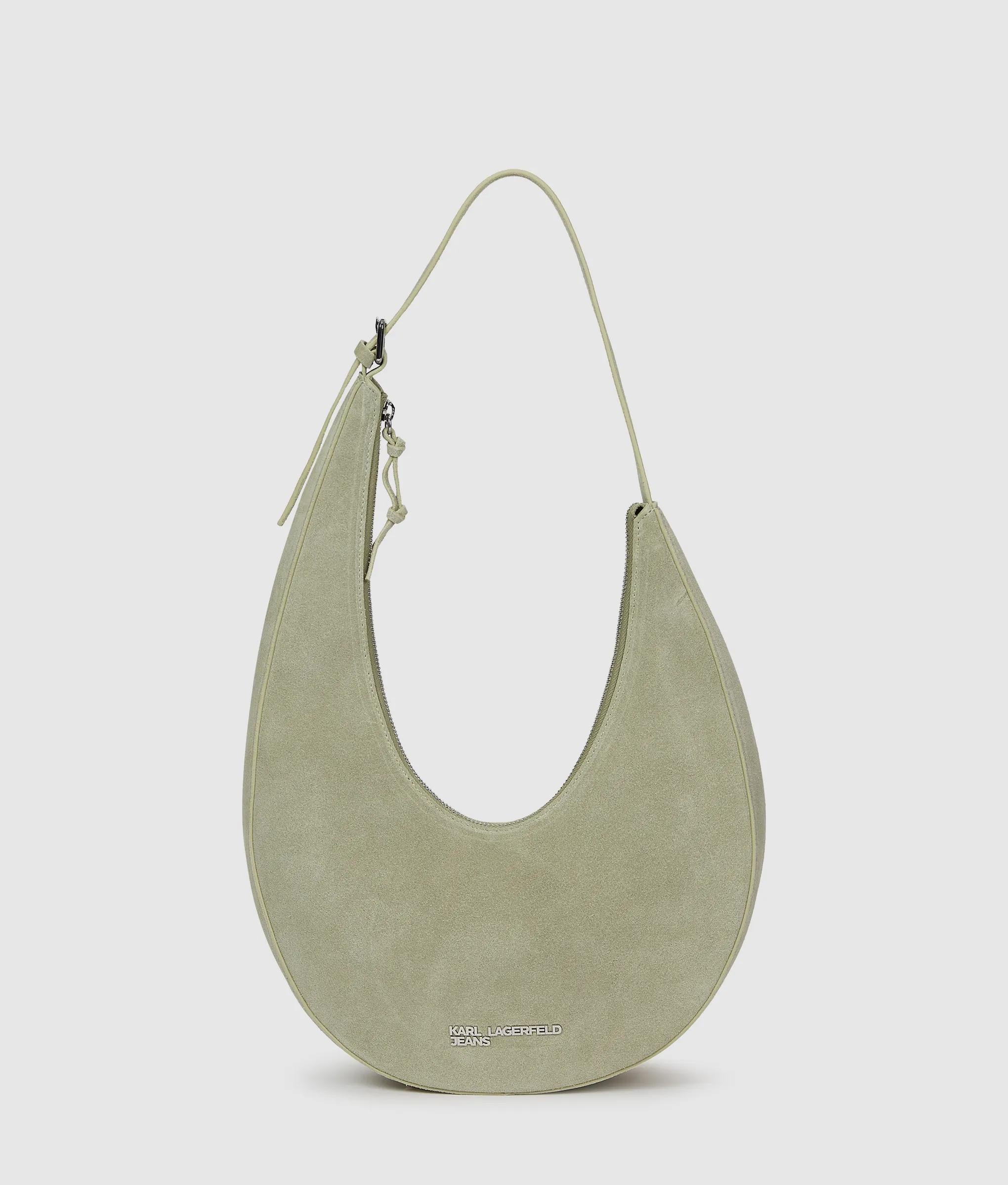 Rounded suede hobo bag