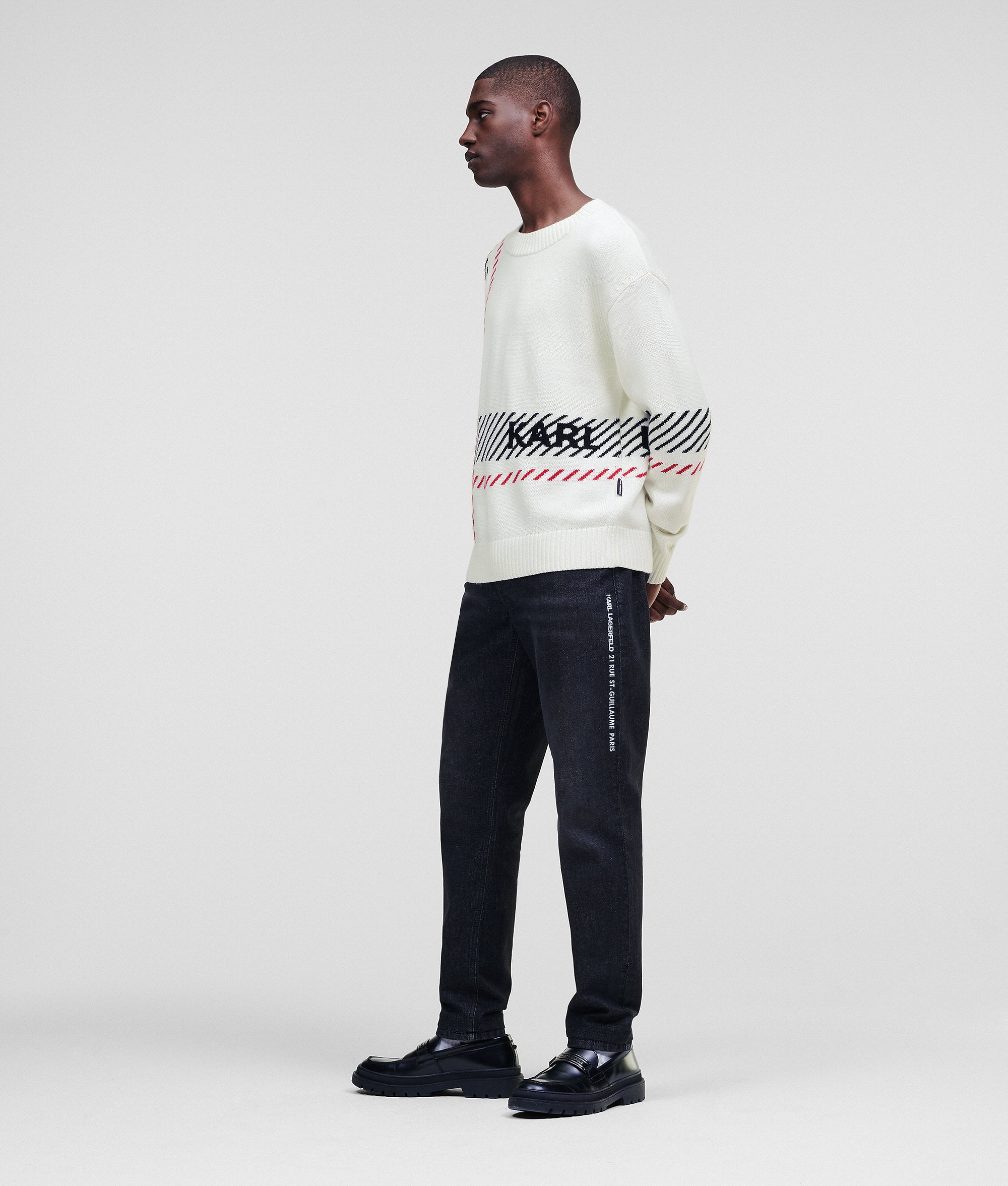 Color-block checks give this classic sweater a contemporary update. The chunky knit is made from an ultra-soft wool blend – ideal for chilly days. A standout KARL logo completes this essential sweater with statement style.
