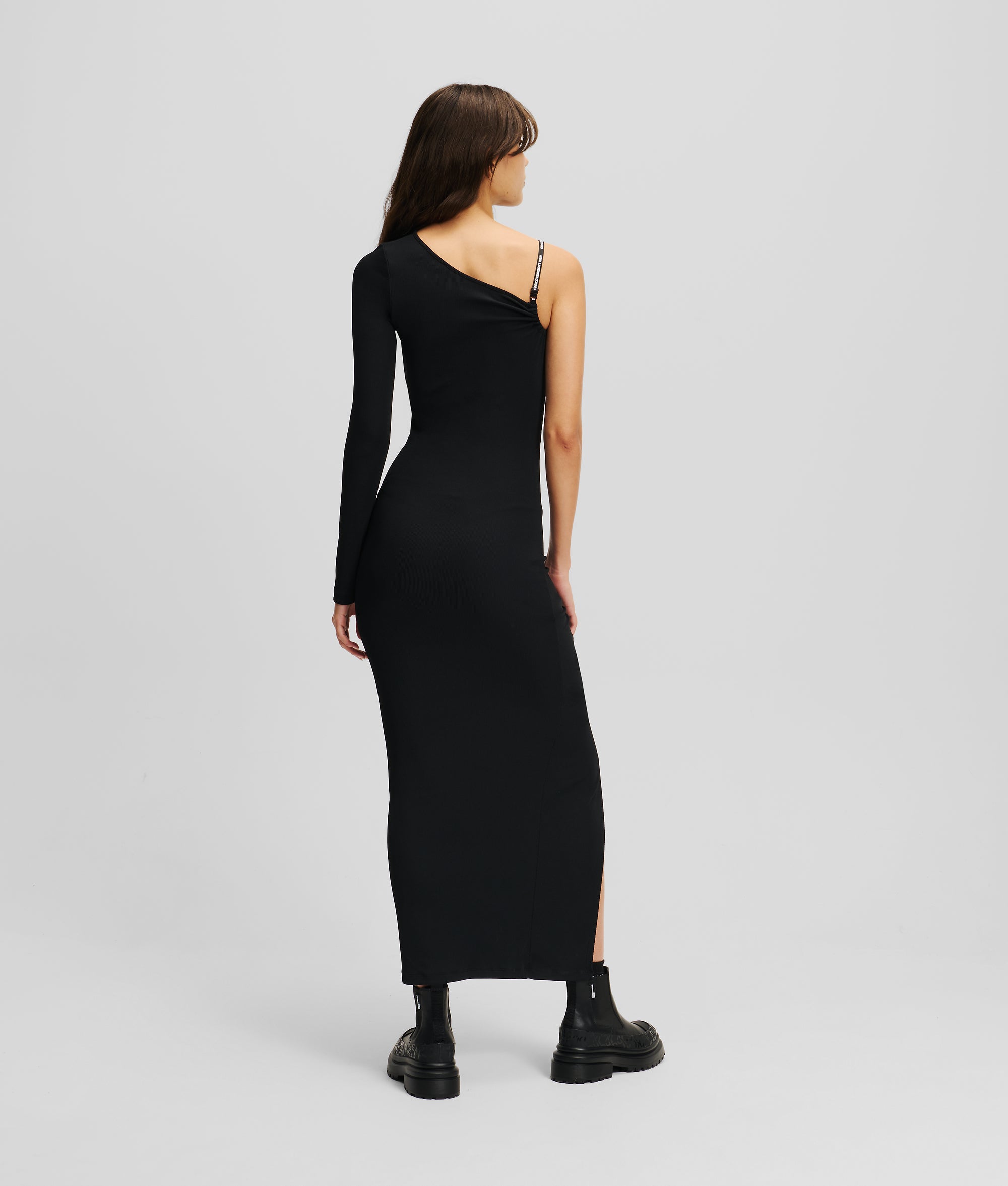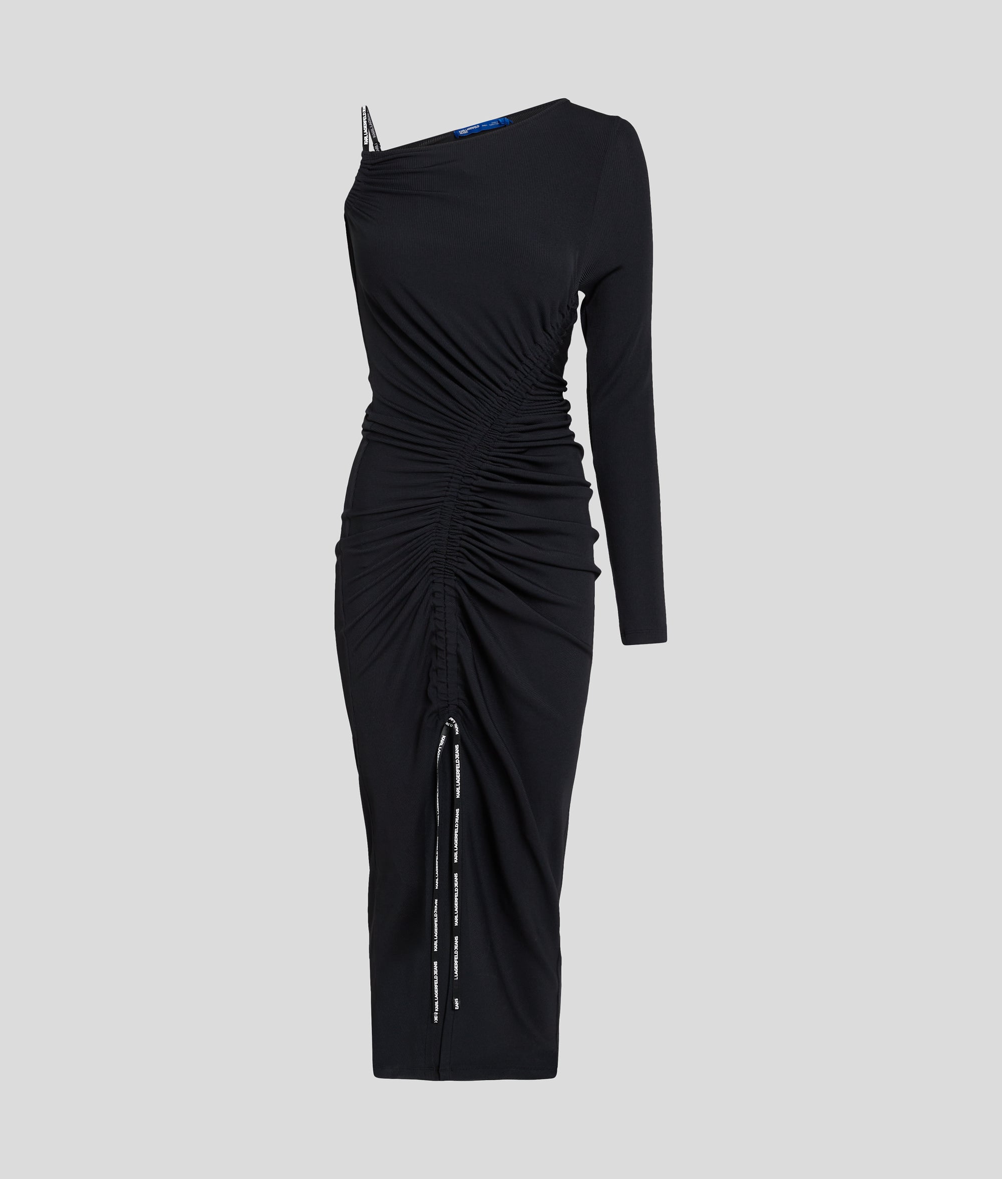 Elegance meets urban chic with this maxi dress from KARL LAGERFELD JEANS. The one-shoulder design and ruched skirt create a figure-enhancing silhouette, while the asymmetric neckline adds a modern edge. Perfect for making a statement at any occasion.